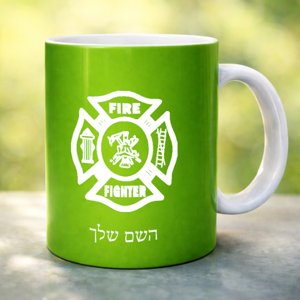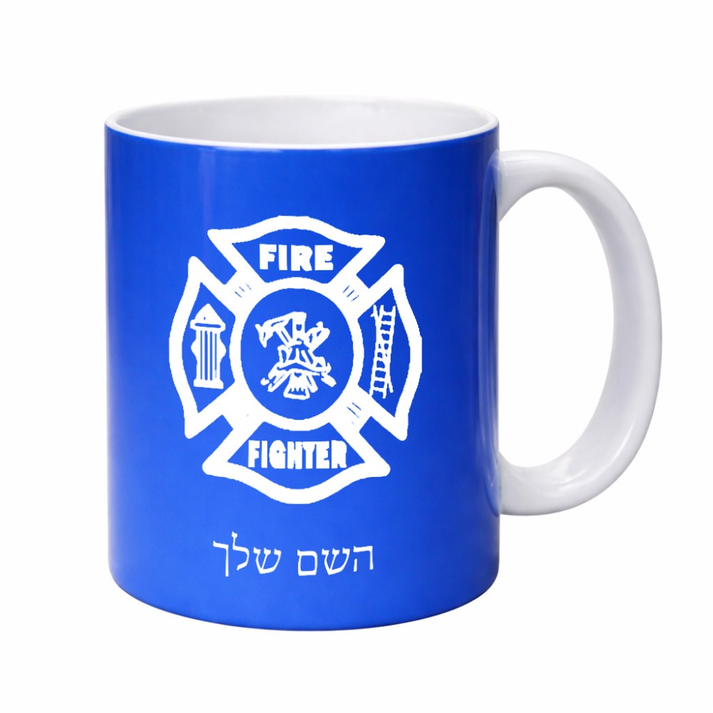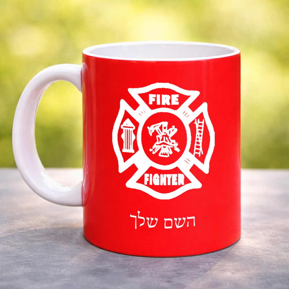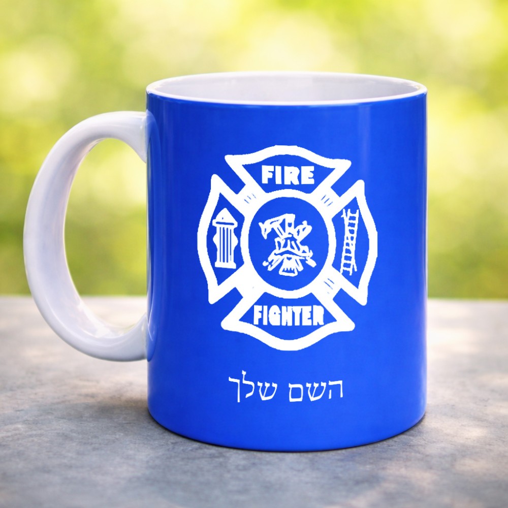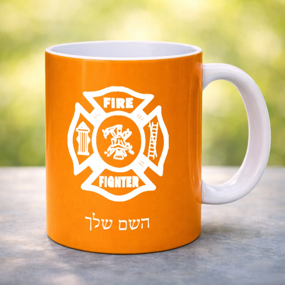 ספל תה \ קפה בעיצוב אישי עם השם שלך בעיצוב כבאי - תגית גדול הספל 325 מ"ל, הספל בעלת ידית לאחיזה יציבה. את השם המבוקש ניתן לציין בהזמנה, אם לא צויין אנחנו ניצור קשר לבירור.