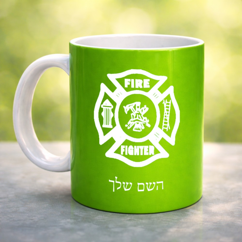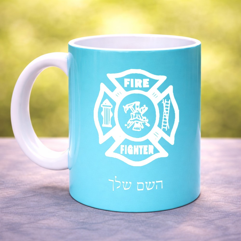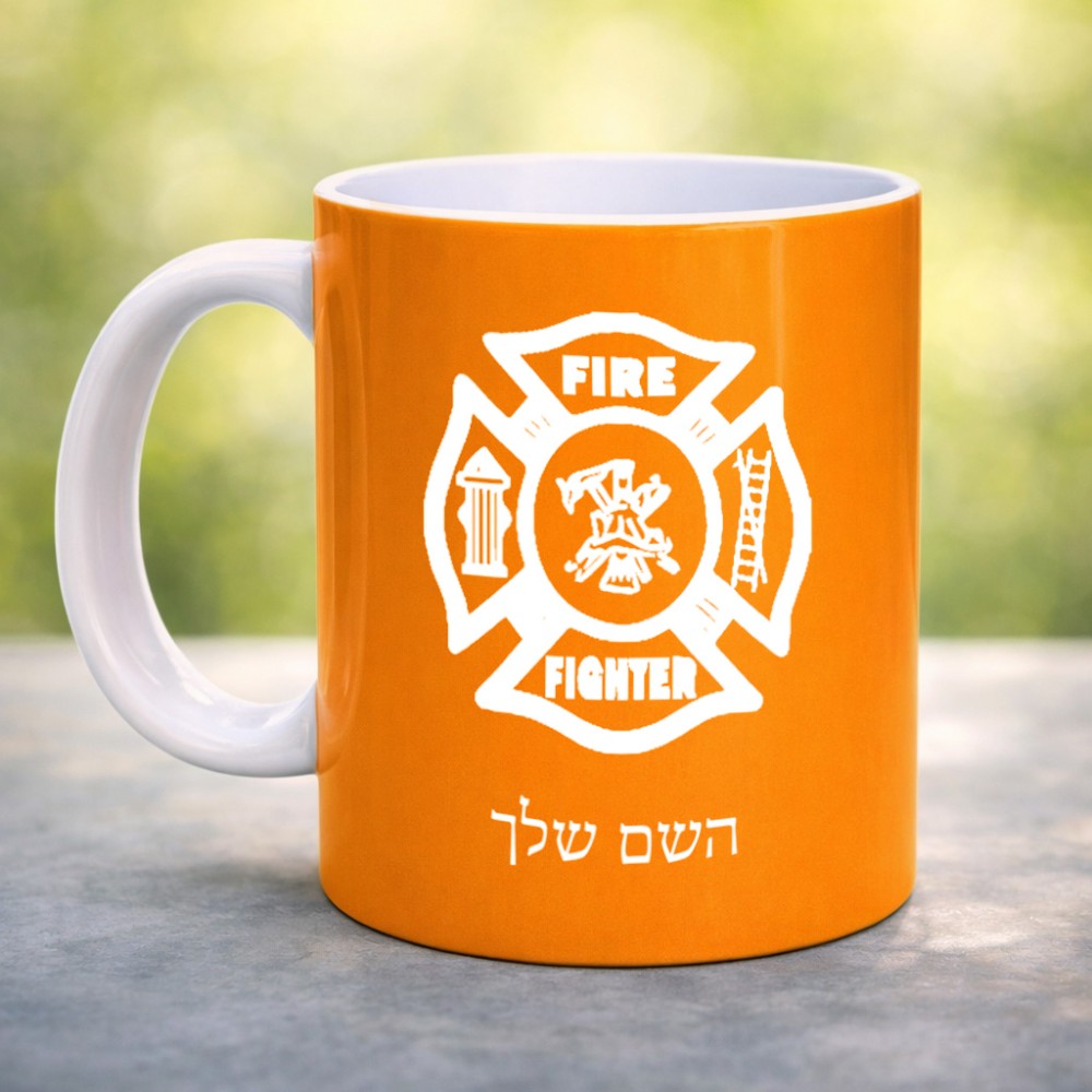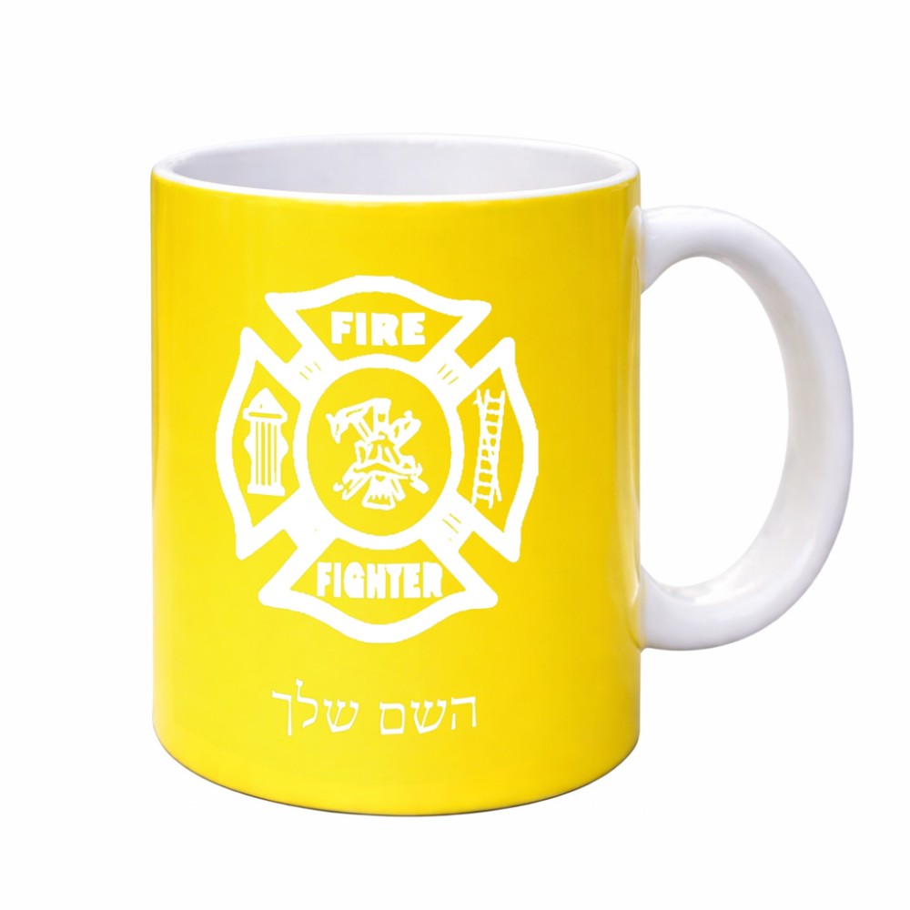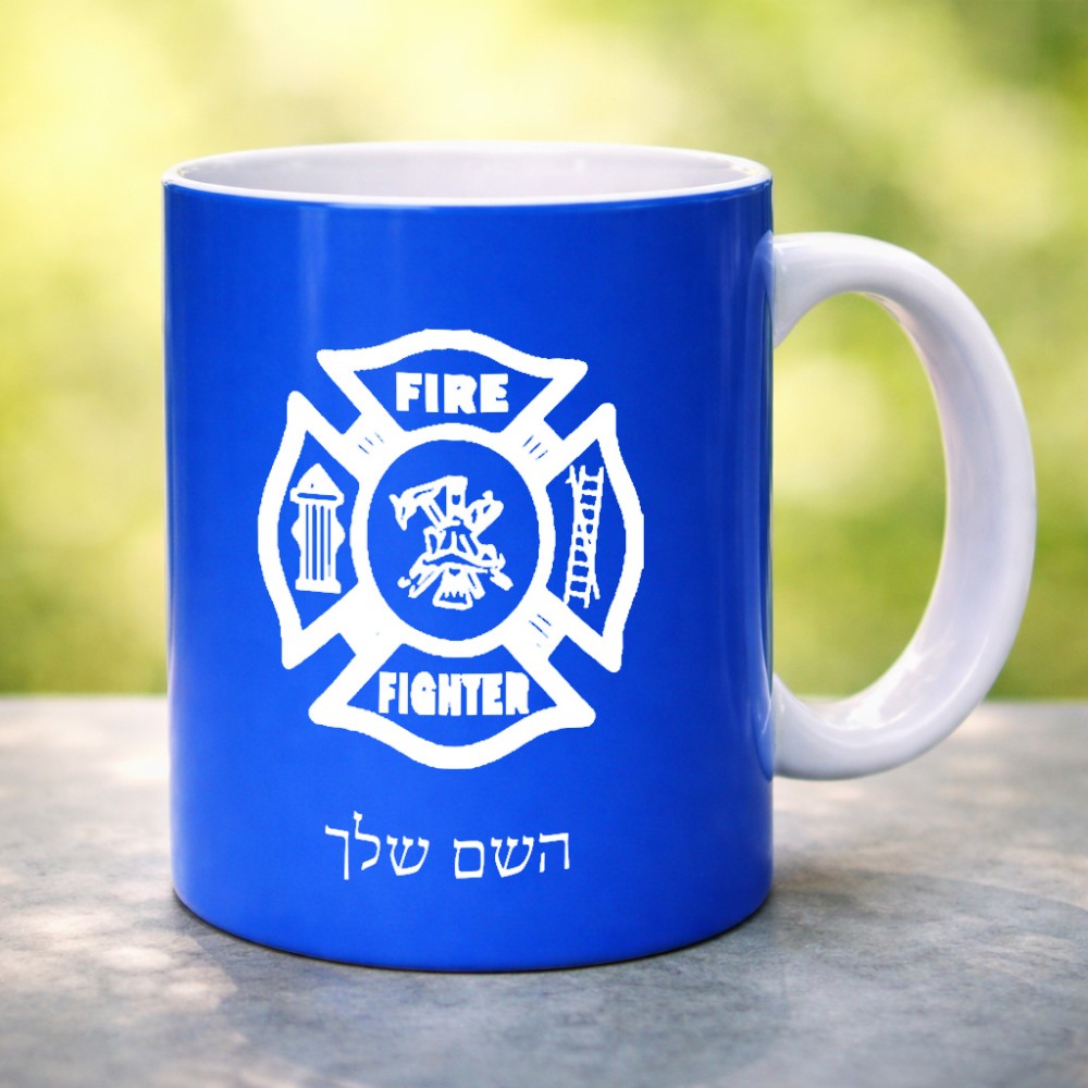 ספל תה \ קפה בעיצוב אישי עם השם שלך בעיצוב כבאי - תגית גדול הספל 325 מ"ל, הספל בעלת ידית לאחיזה יציבה. את השם המבוקש ניתן לציין בהזמנה, אם לא צויין אנחנו ניצור קשר לבירור.