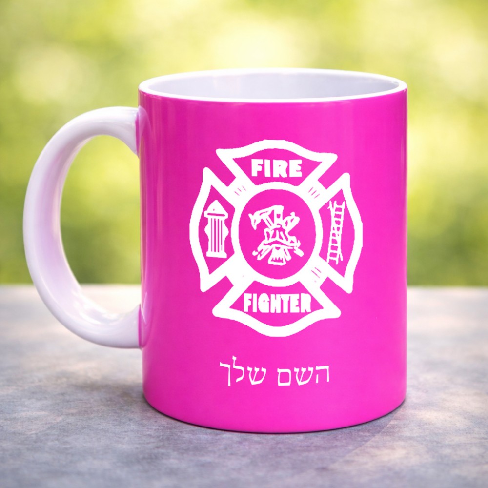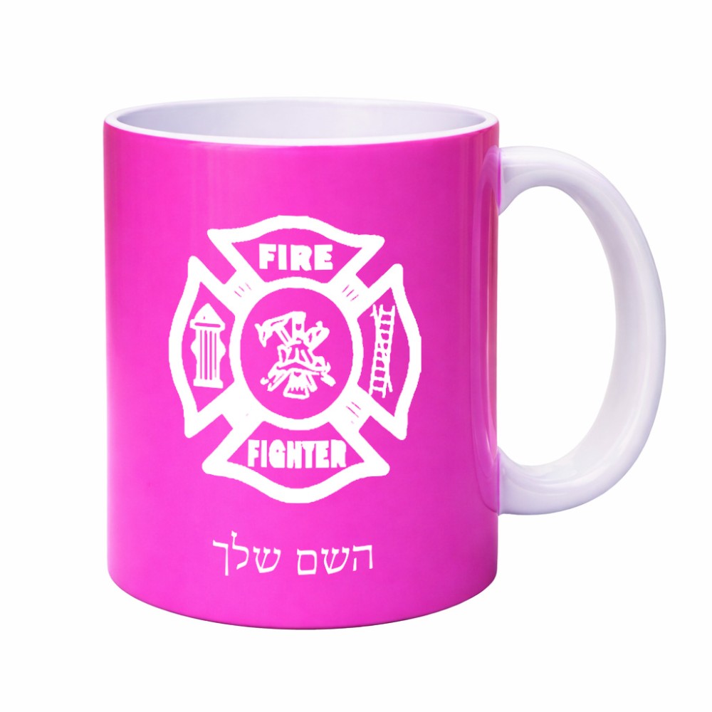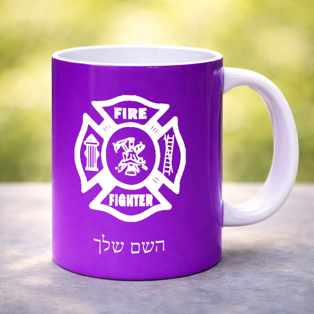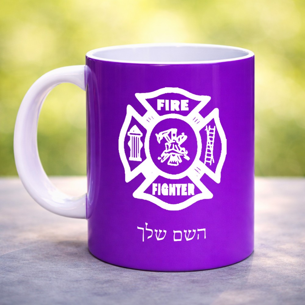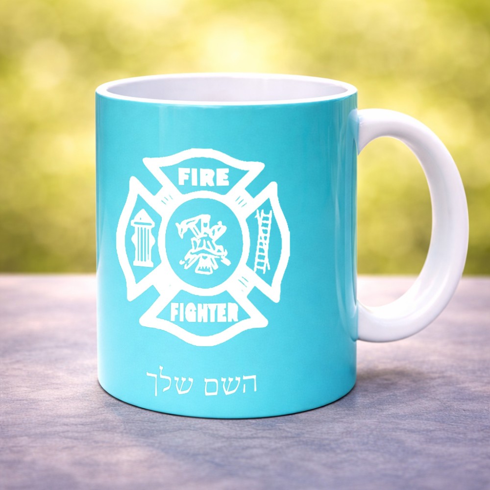 ספל תה \ קפה בעיצוב אישי עם השם שלך בעיצוב כבאי - תגית גדול הספל 325 מ"ל, הספל בעלת ידית לאחיזה יציבה. את השם המבוקש ניתן לציין בהזמנה, אם לא צויין אנחנו ניצור קשר לבירור.