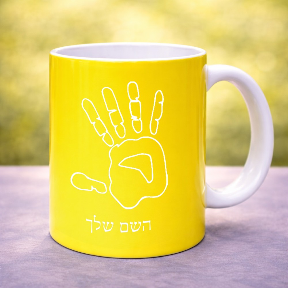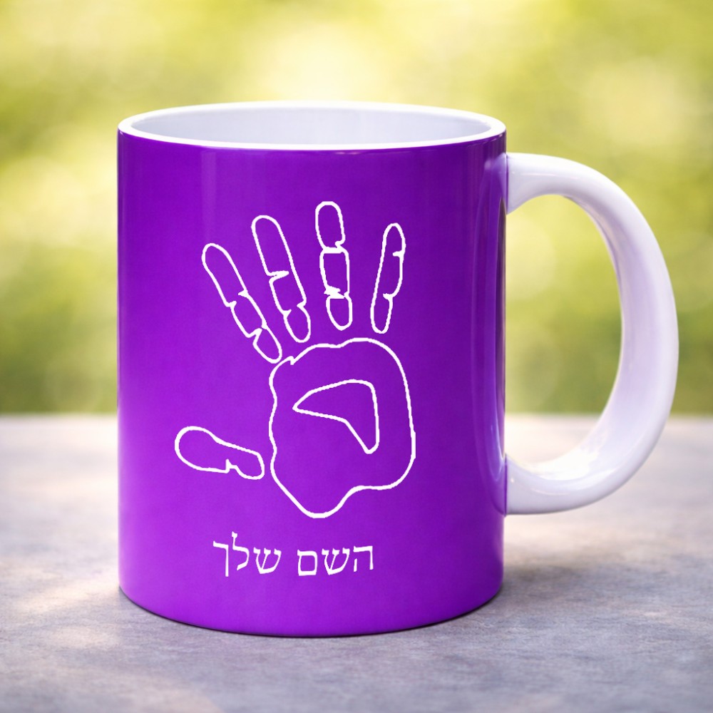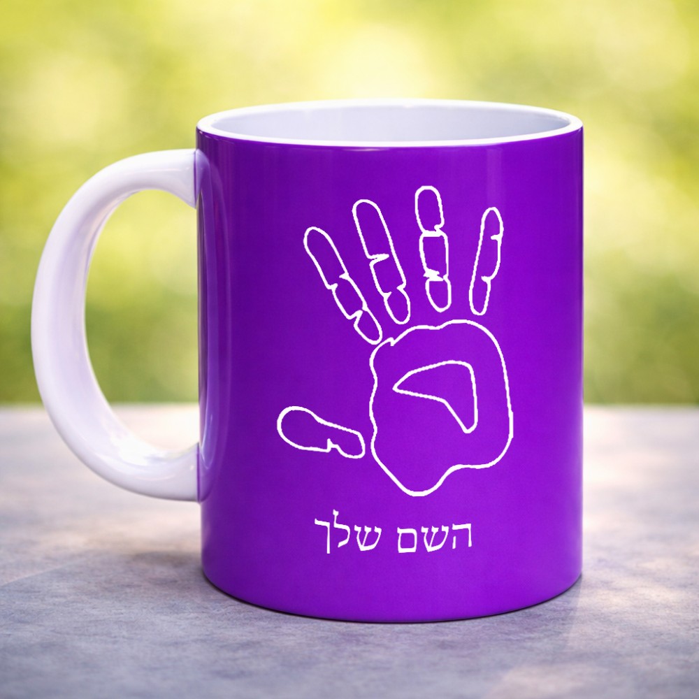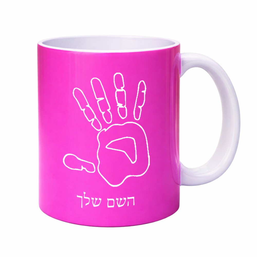 ספל תה \ קפה בעיצוב אישי עם השם שלך בעיצוב יד גדול הספל 325 מ"ל, הספל בעלת ידית לאחיזה יציבה. את השם המבוקש ניתן לציין בהזמנה, אם לא צויין אנחנו ניצור קשר לבירור.