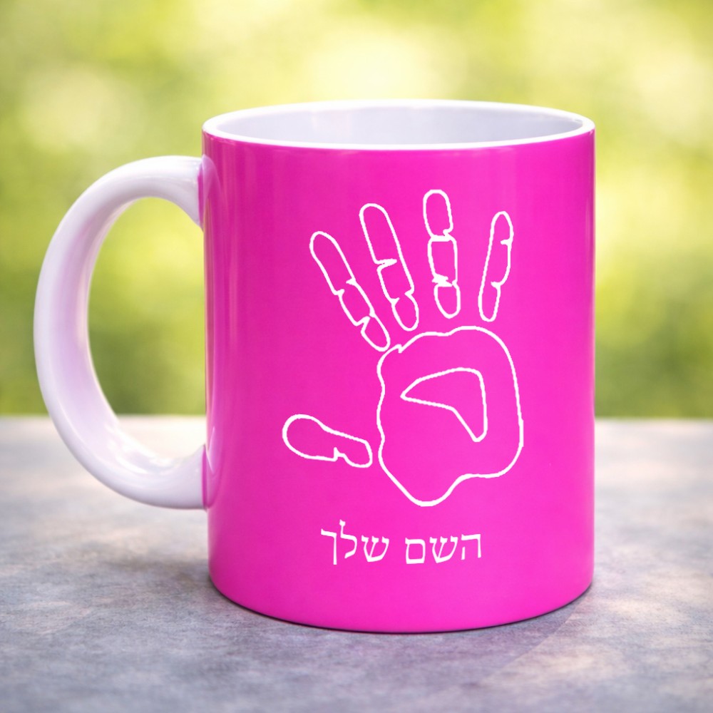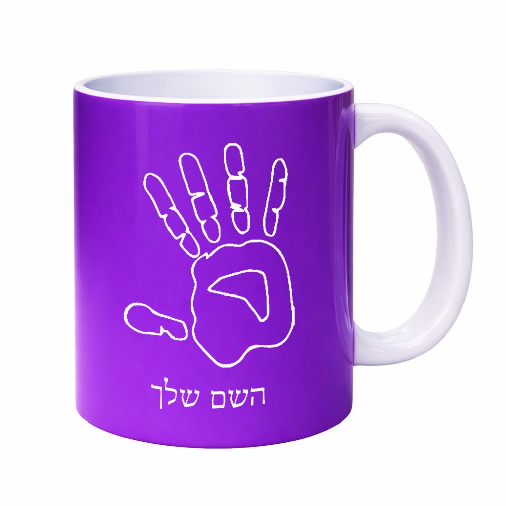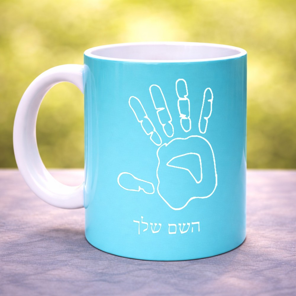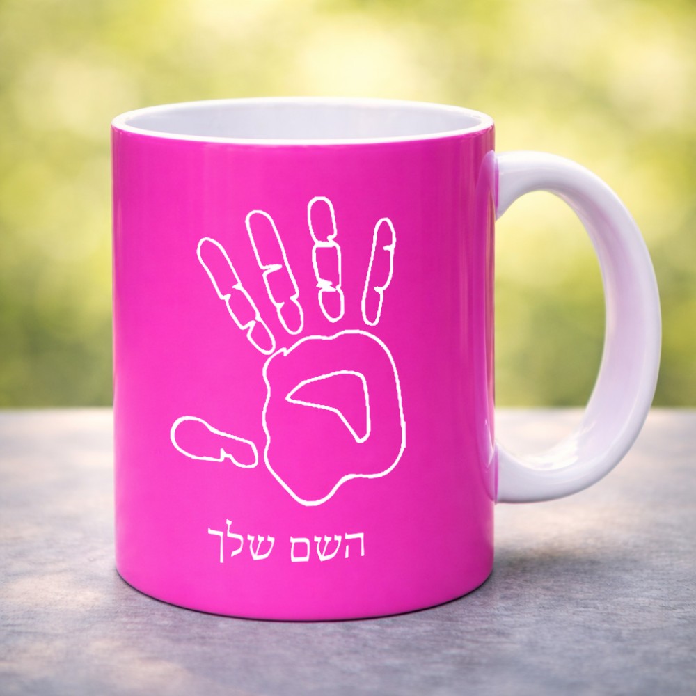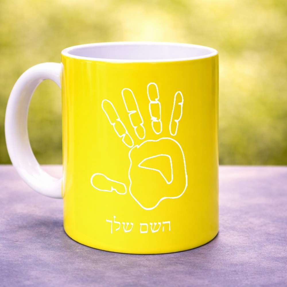 ספל תה \ קפה בעיצוב אישי עם השם שלך בעיצוב יד גדול הספל 325 מ"ל, הספל בעלת ידית לאחיזה יציבה. את השם המבוקש ניתן לציין בהזמנה, אם לא צויין אנחנו ניצור קשר לבירור.