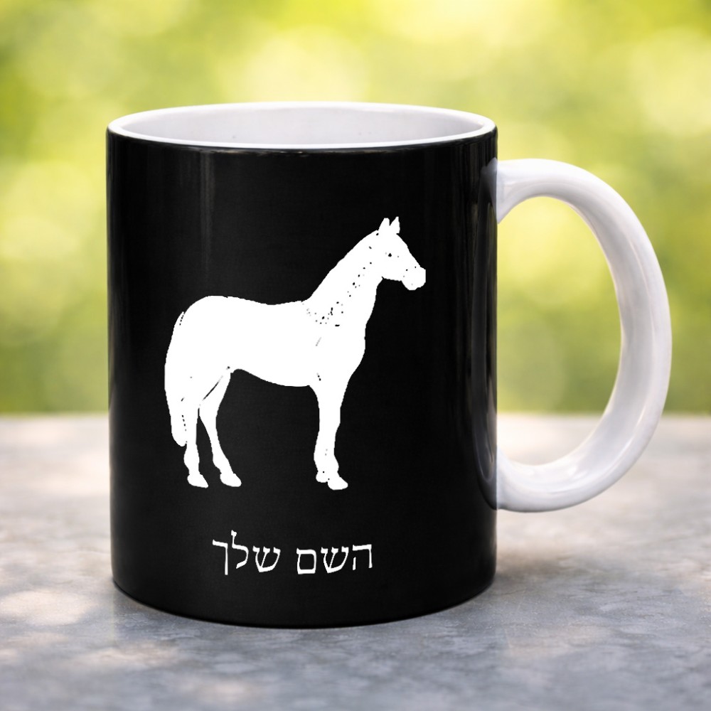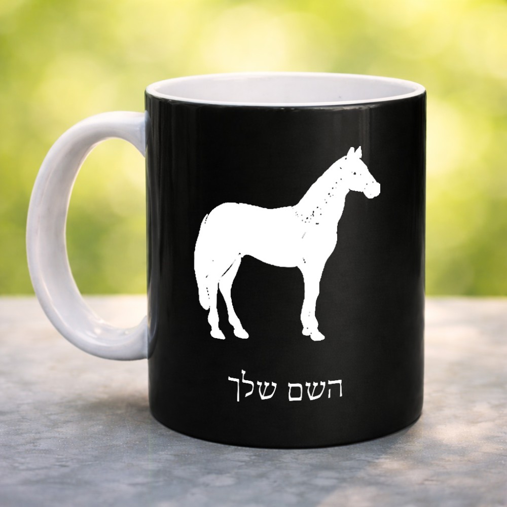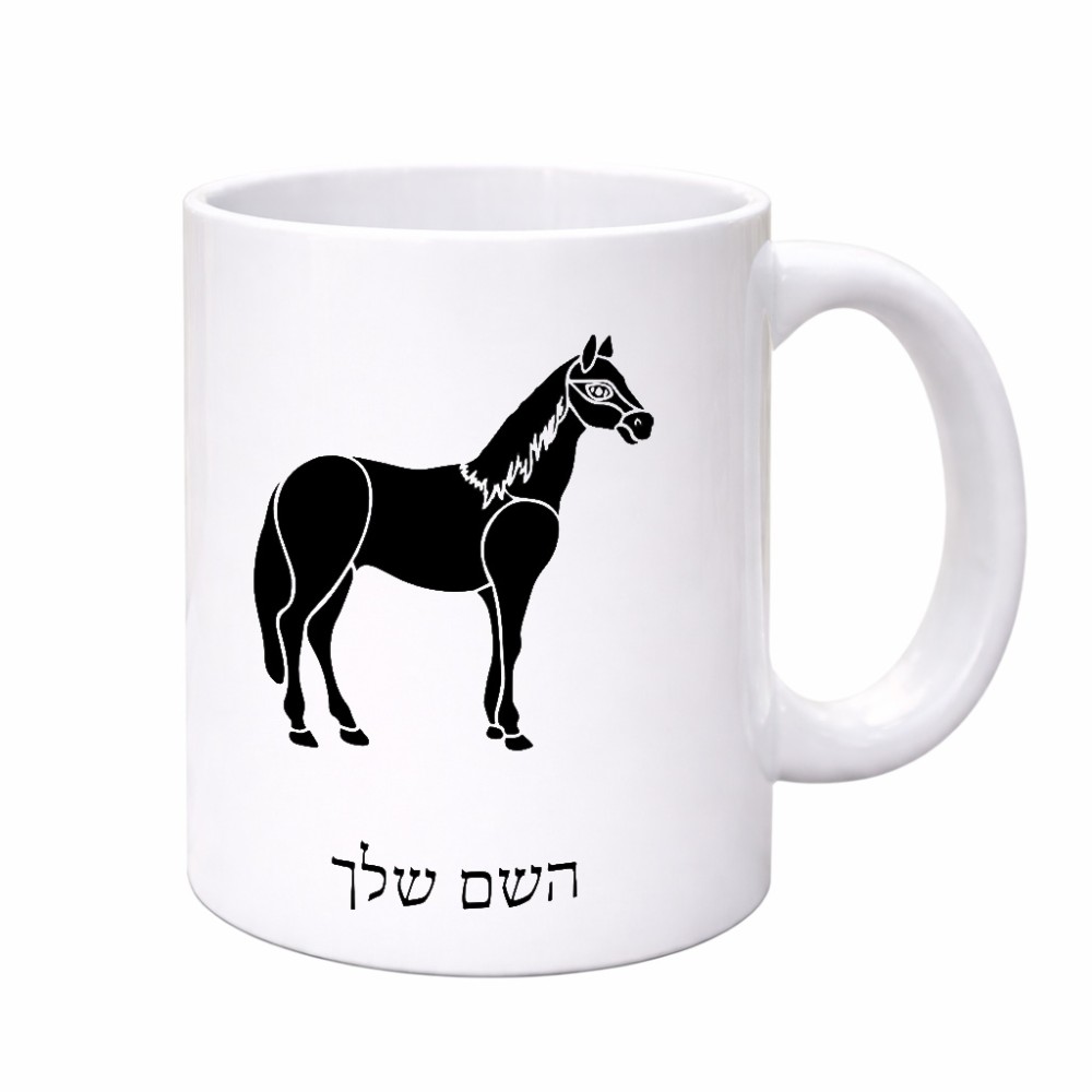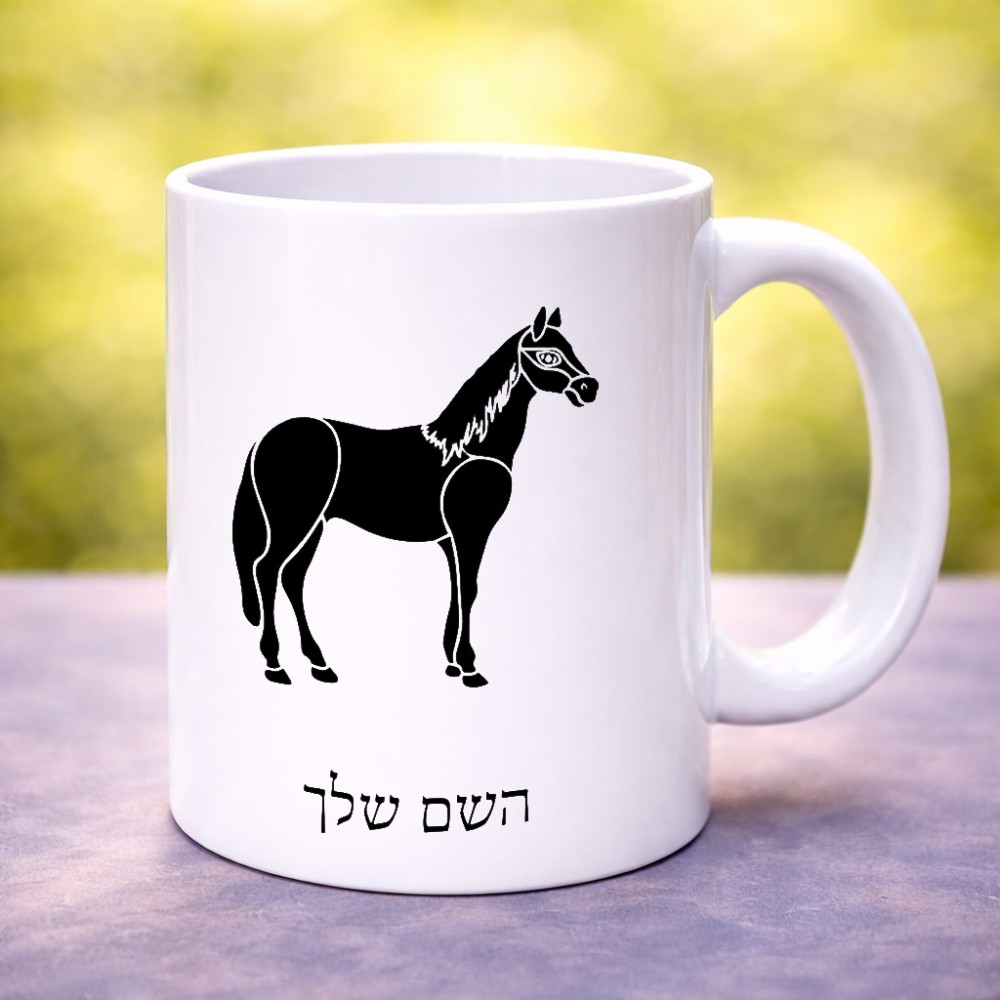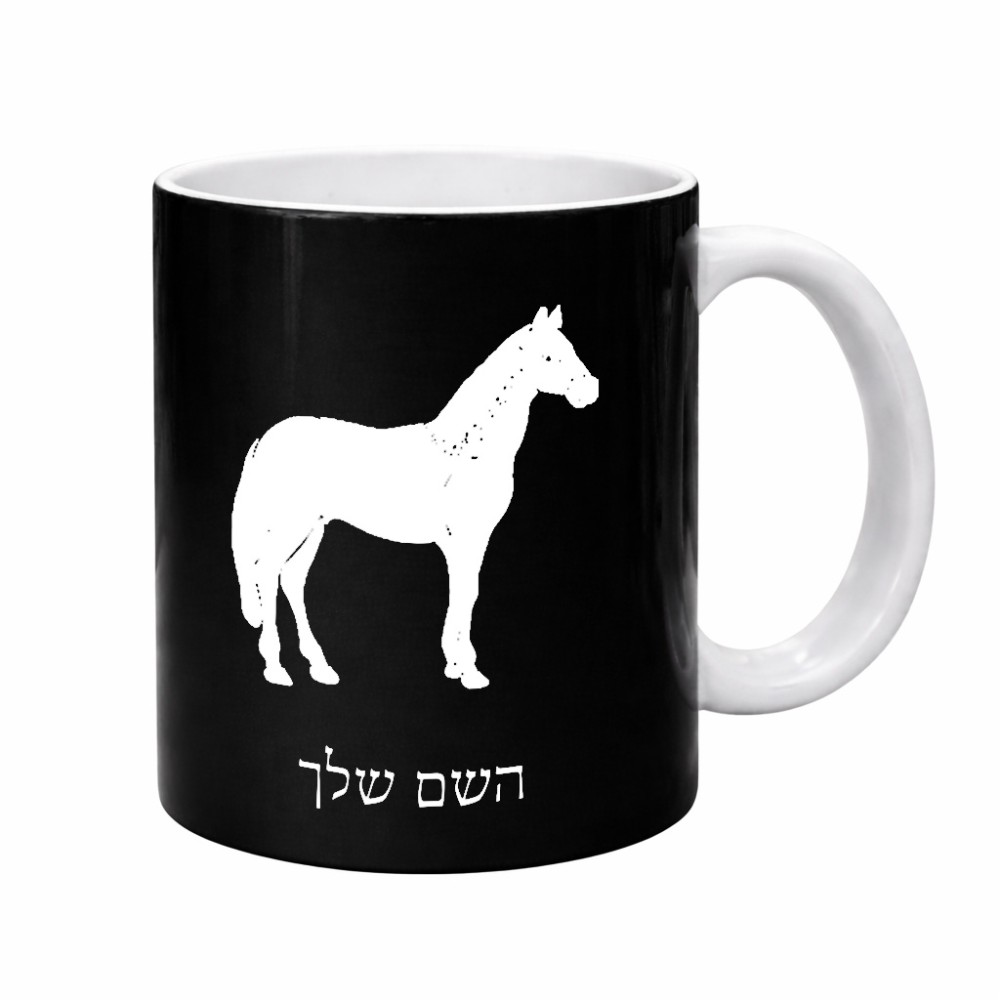 ספל תה \ קפה בעיצוב אישי עם השם שלך בעיצוב סוס גודל הספל 325 מ"ל