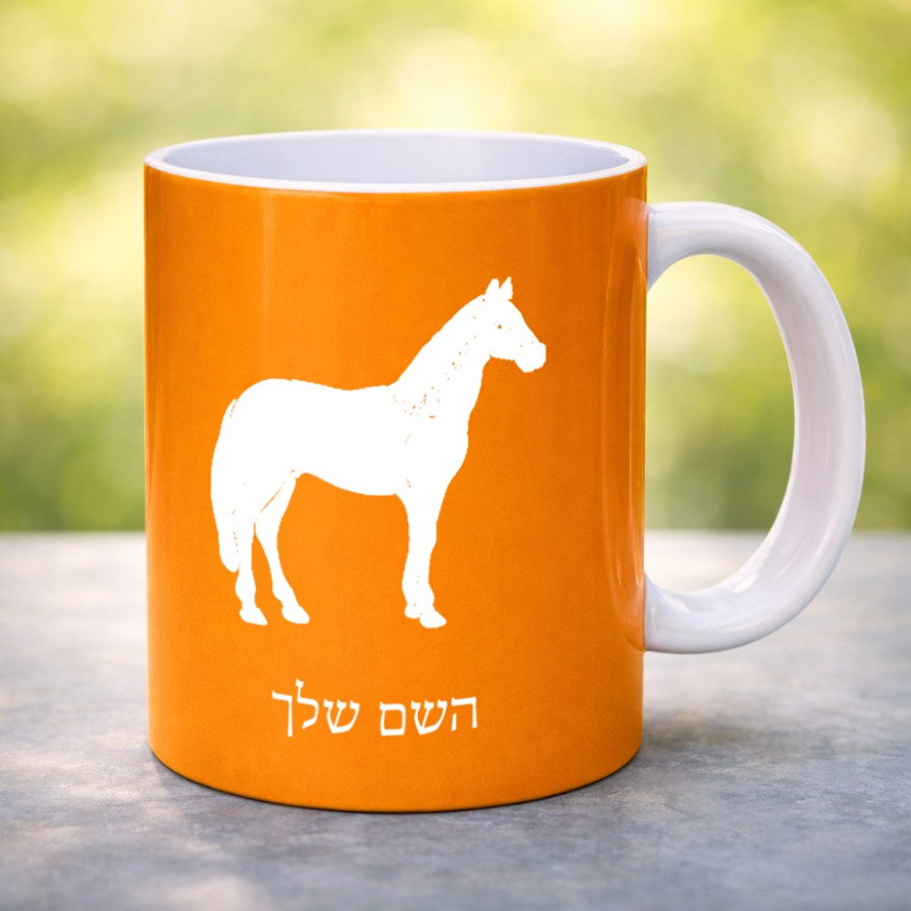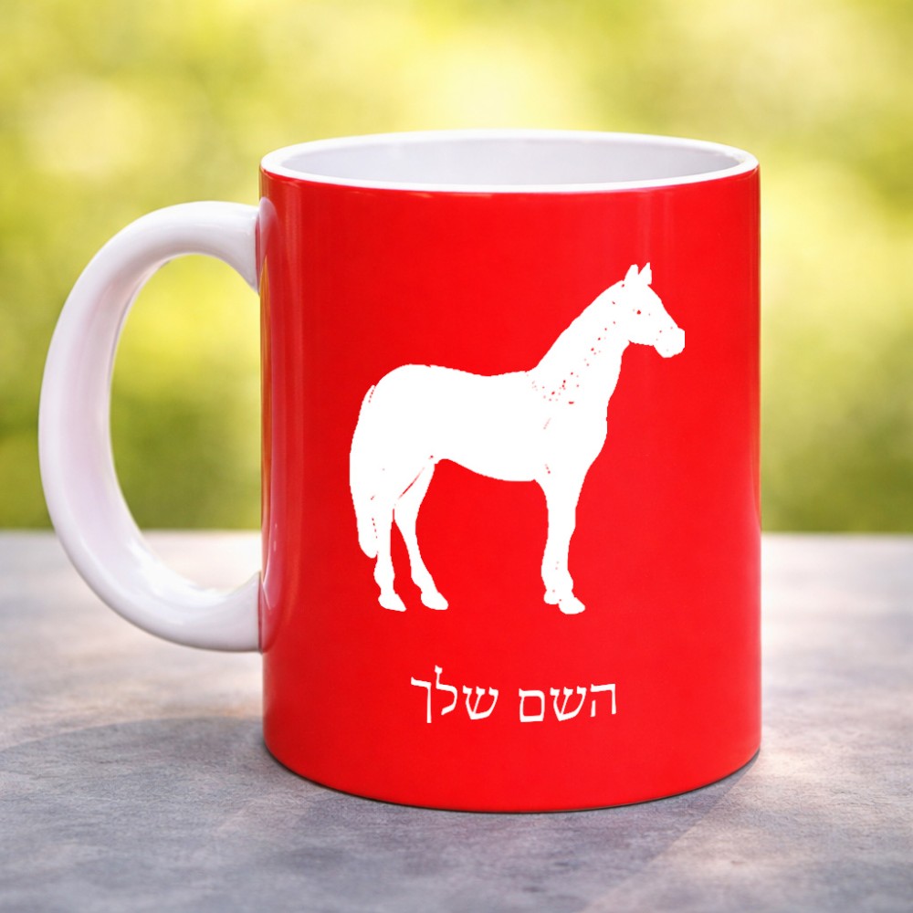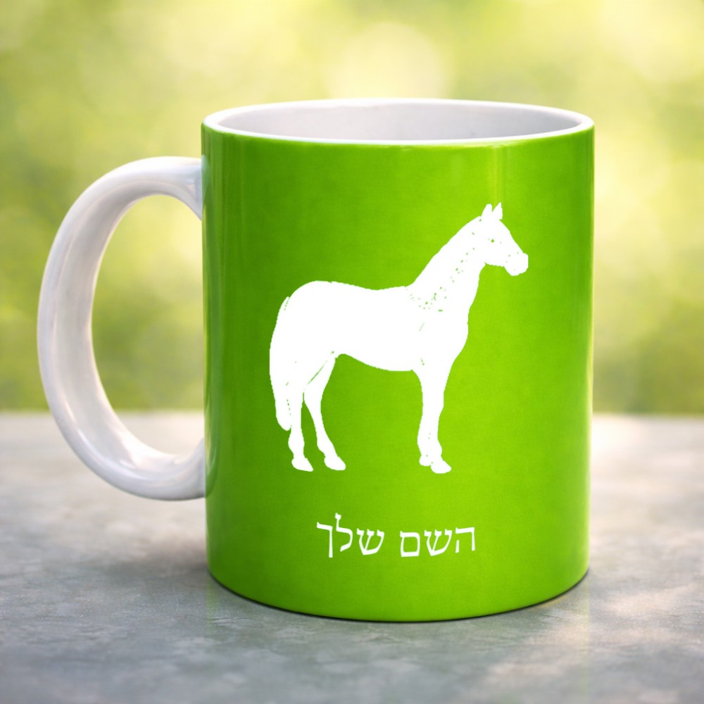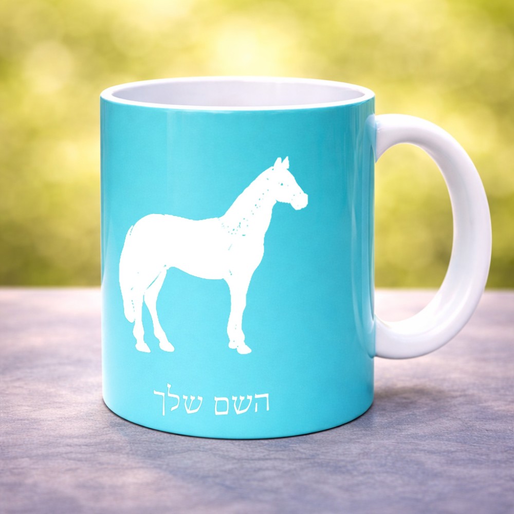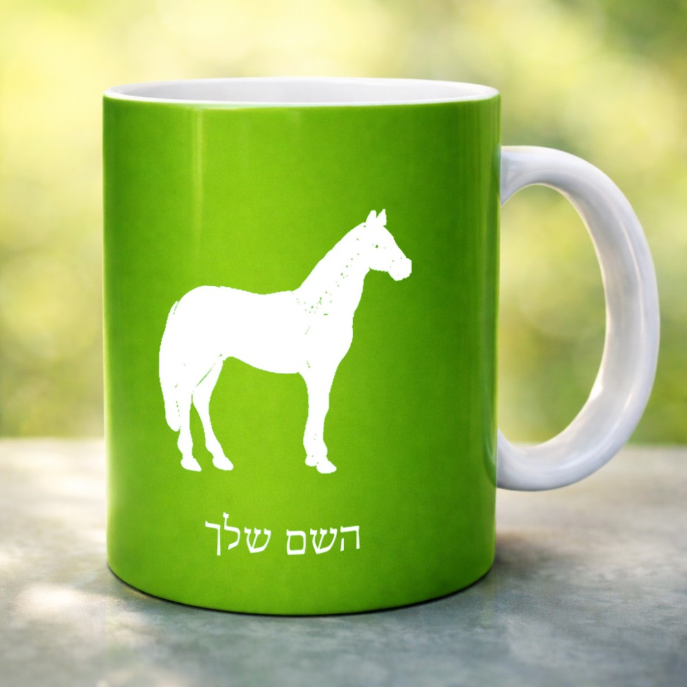 ספל תה \ קפה בעיצוב אישי עם השם שלך בעיצוב סוס גודל הספל 325 מ"ל