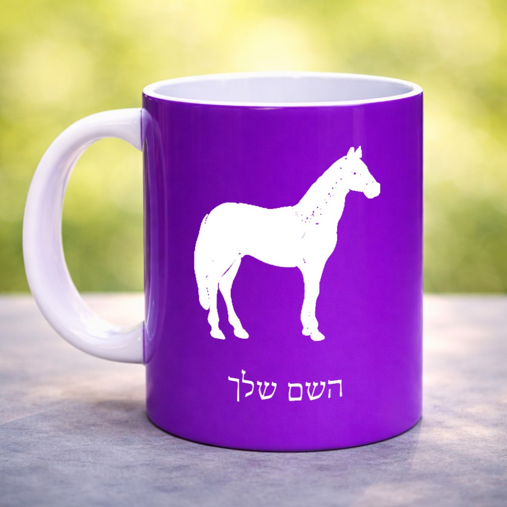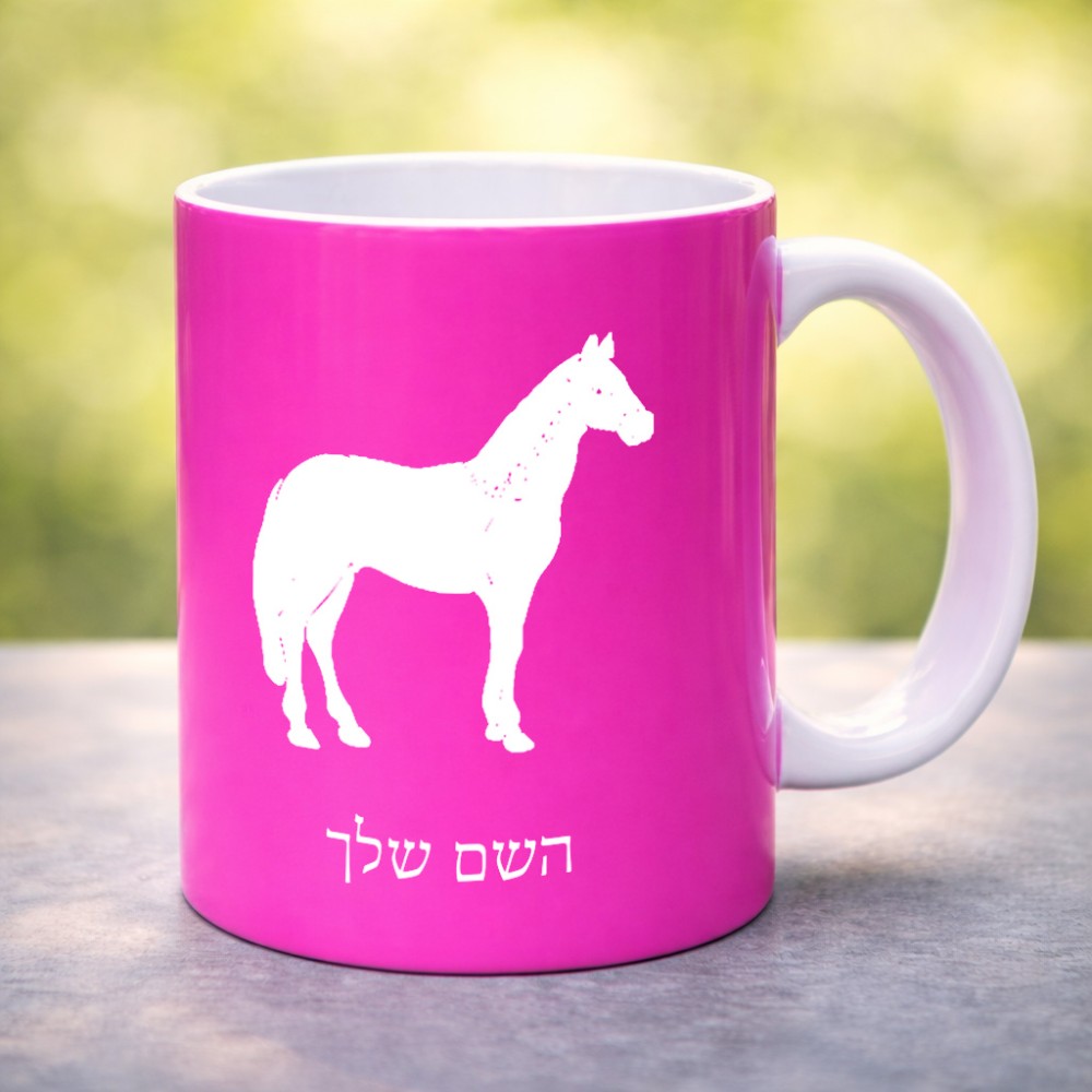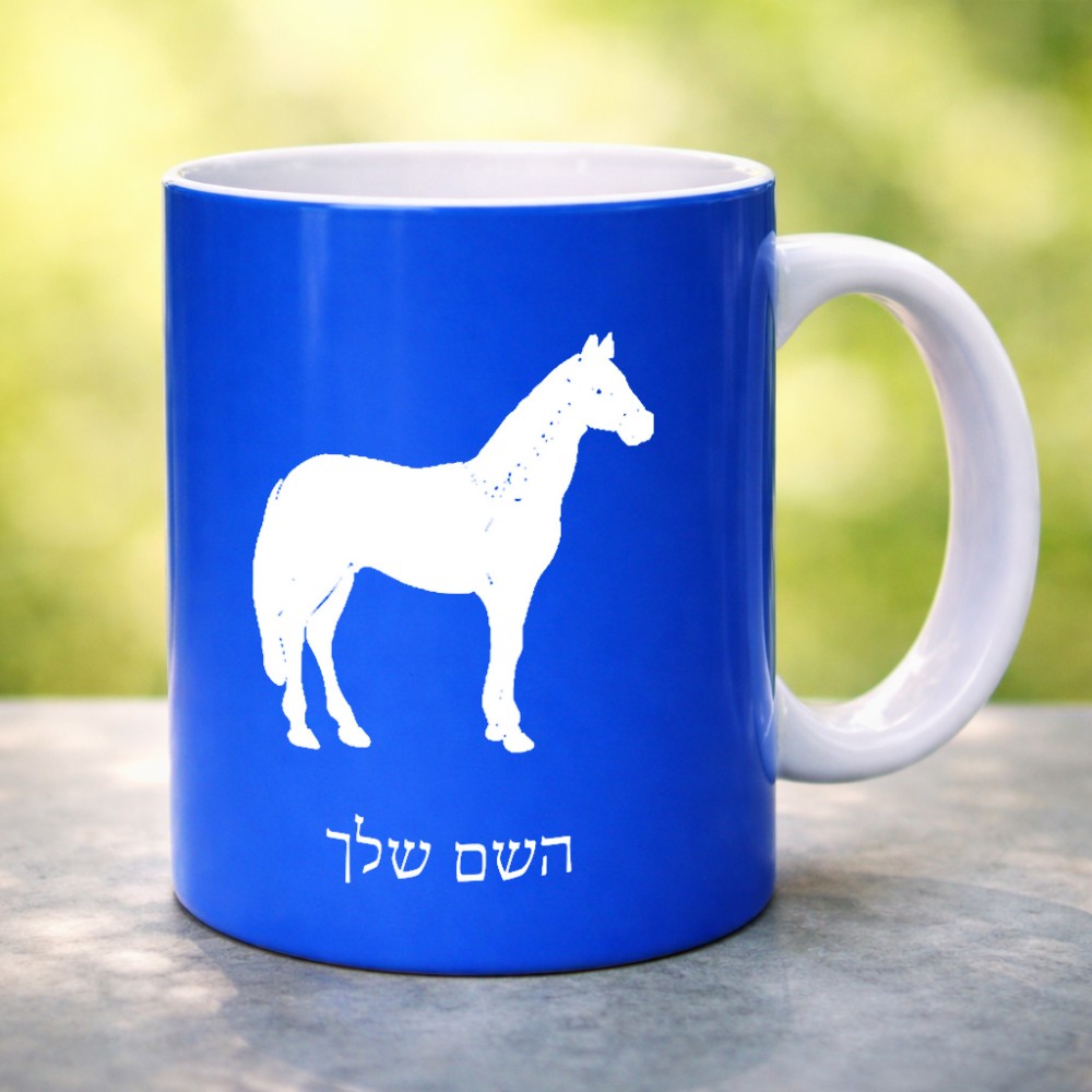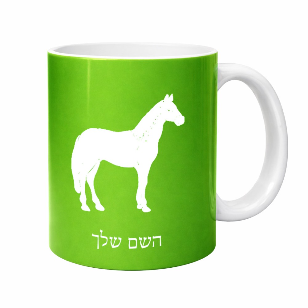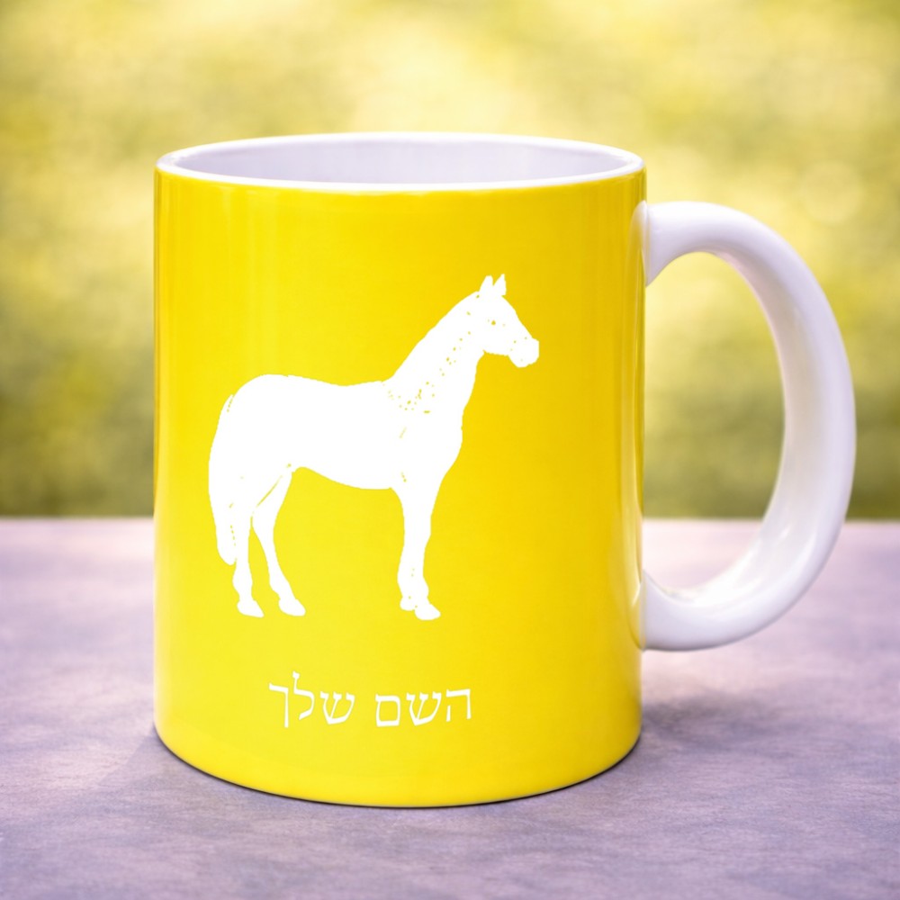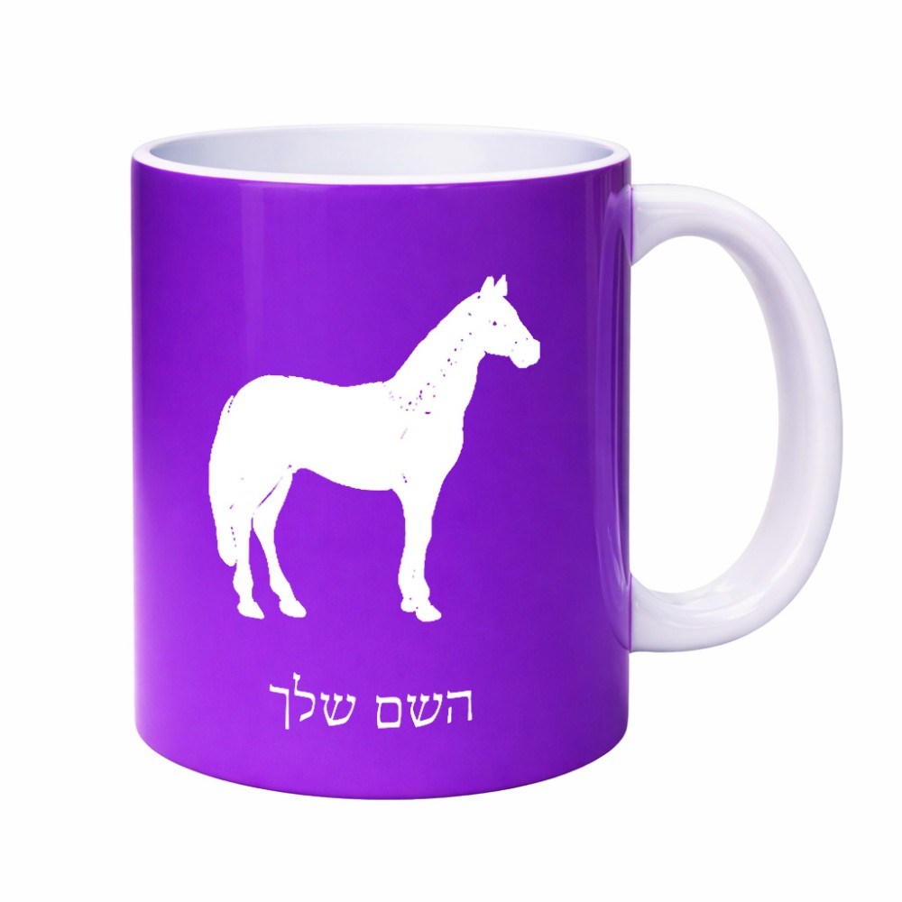 ספל תה \ קפה בעיצוב אישי עם השם שלך בעיצוב סוס גודל הספל 325 מ"ל