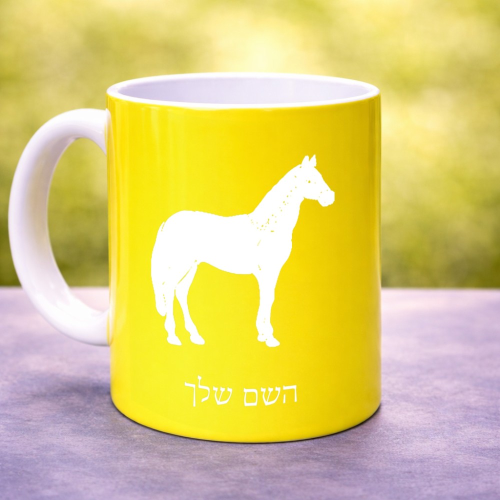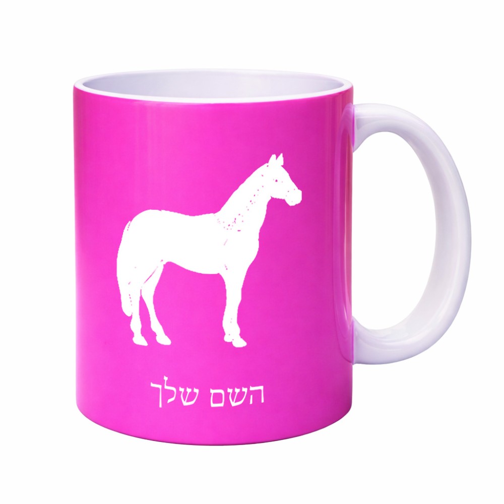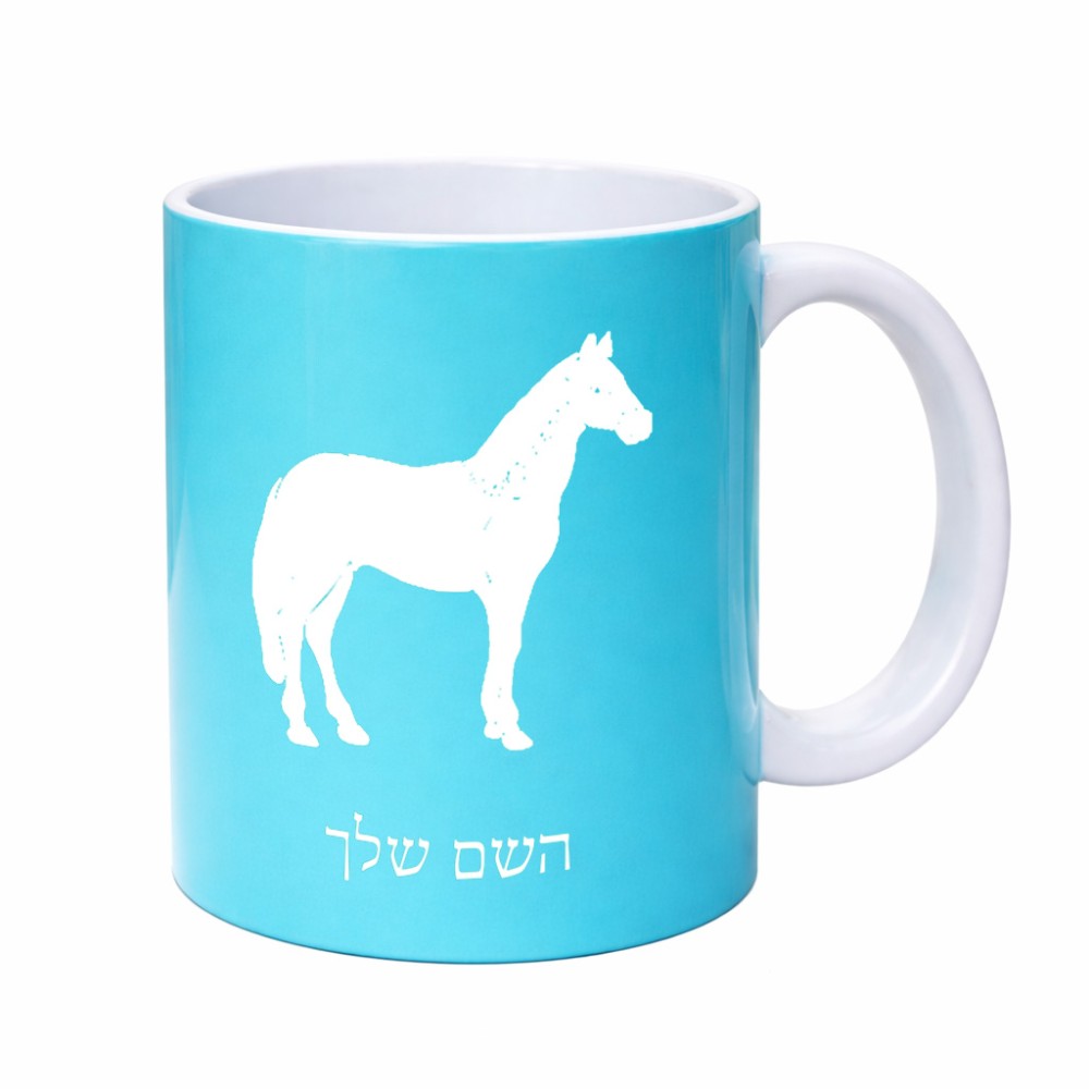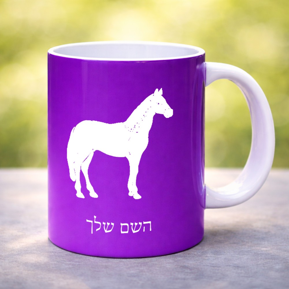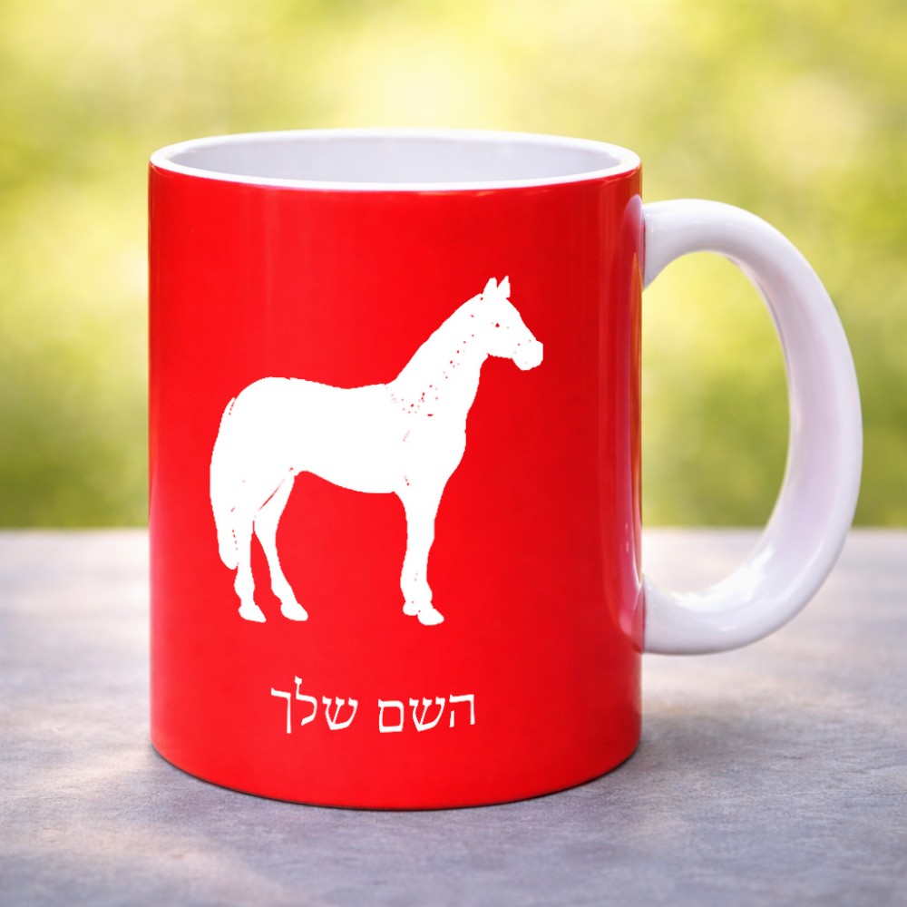ספל תה \ קפה בעיצוב אישי עם השם שלך בעיצוב סוס גודל הספל 325 מ"ל
