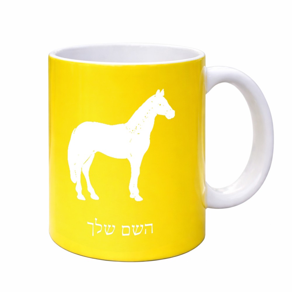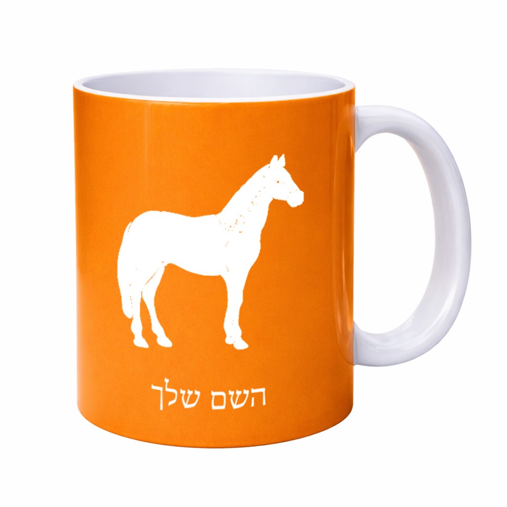 ספל תה \ קפה בעיצוב אישי עם השם שלך בעיצוב סוס גדול הספל 325 מ"ל, הספל בעלת ידית לאחיזה יציבה. את השם המבוקש ניתן לציין בהזמנה, אם לא צויין אנחנו ניצור קשר לבירור.