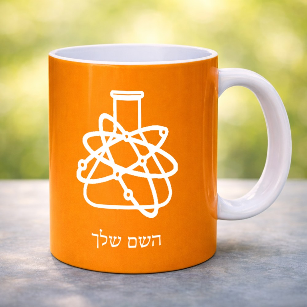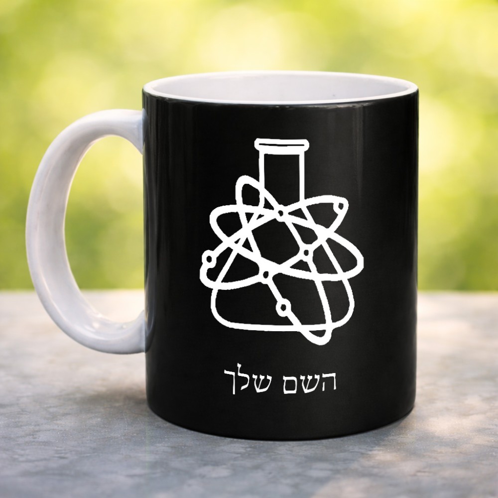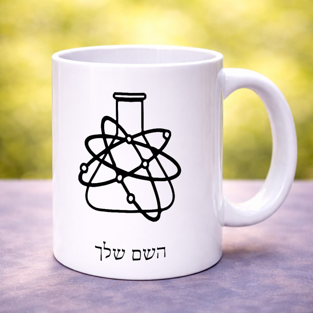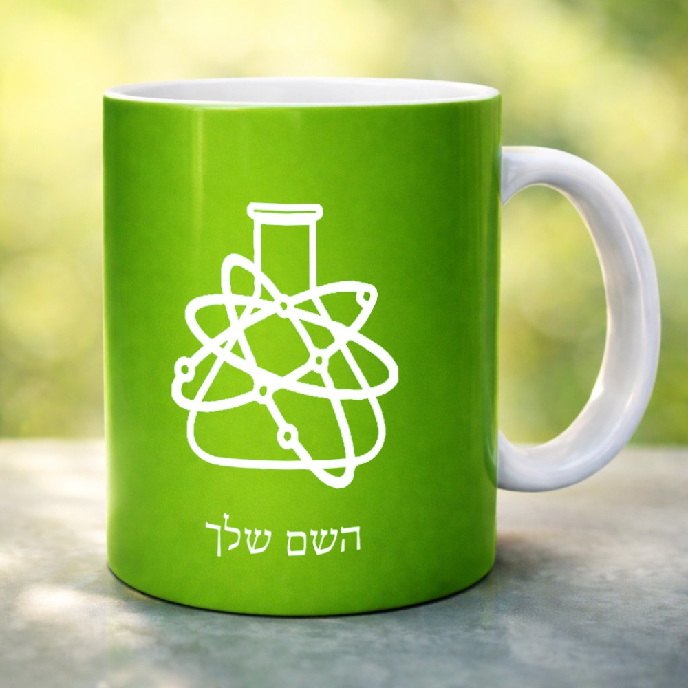 ספל תה \ קפה בעיצוב אישי עם השם שלך בעיצוב מעבדה גדול הספל 325 מ"ל, הספל בעלת ידית לאחיזה יציבה. את השם המבוקש ניתן לציין בהזמנה, אם לא צויין אנחנו ניצור קשר לבירור.