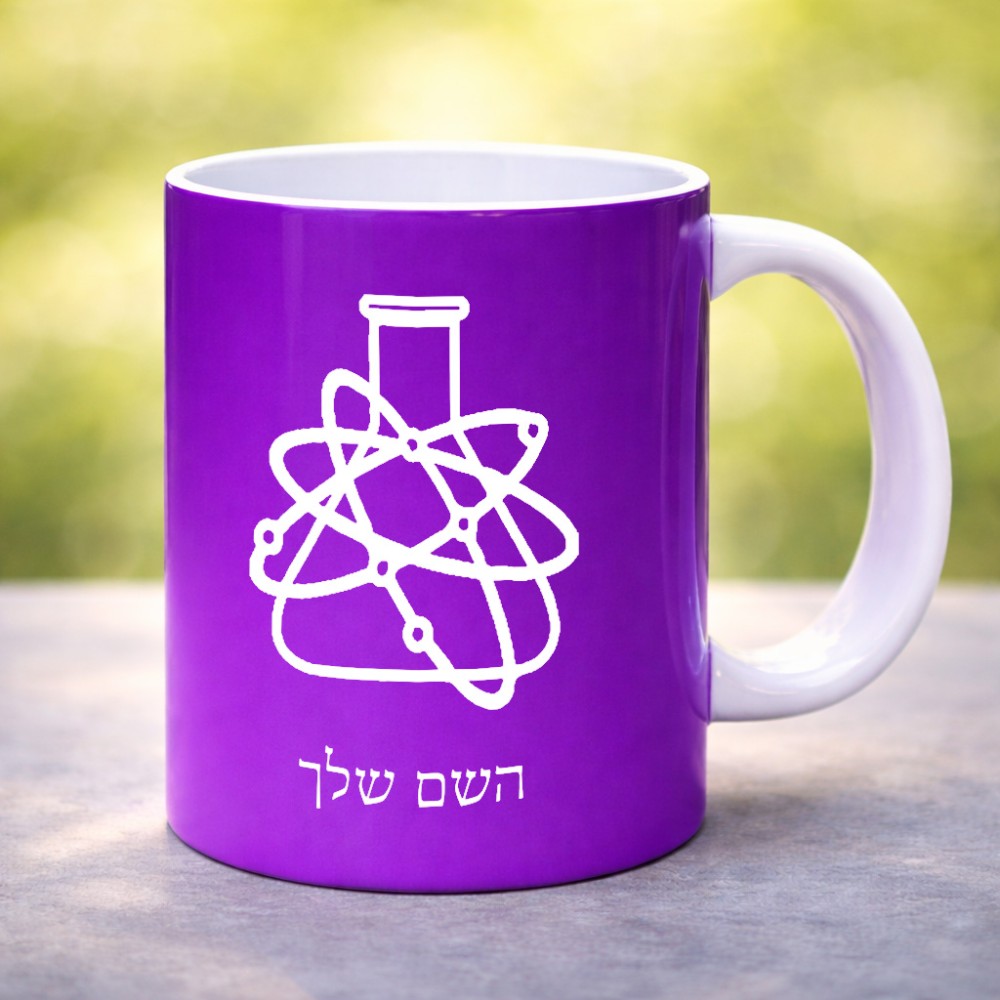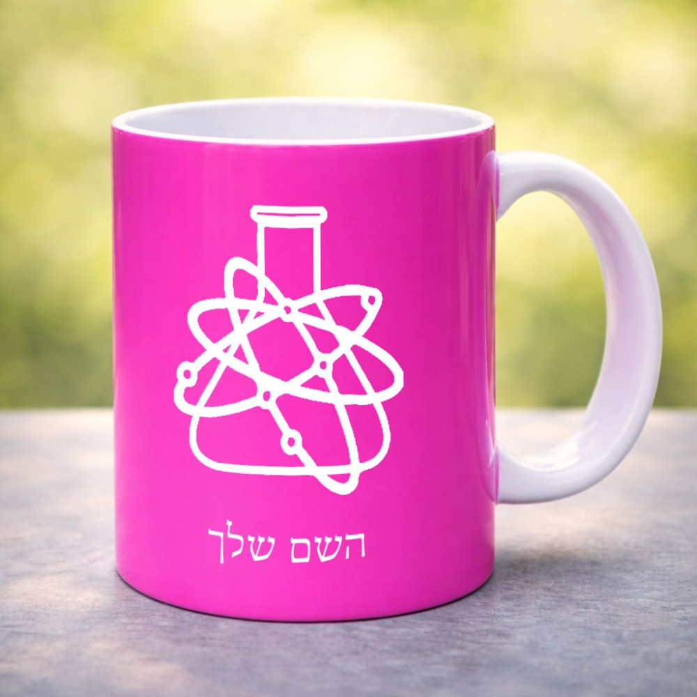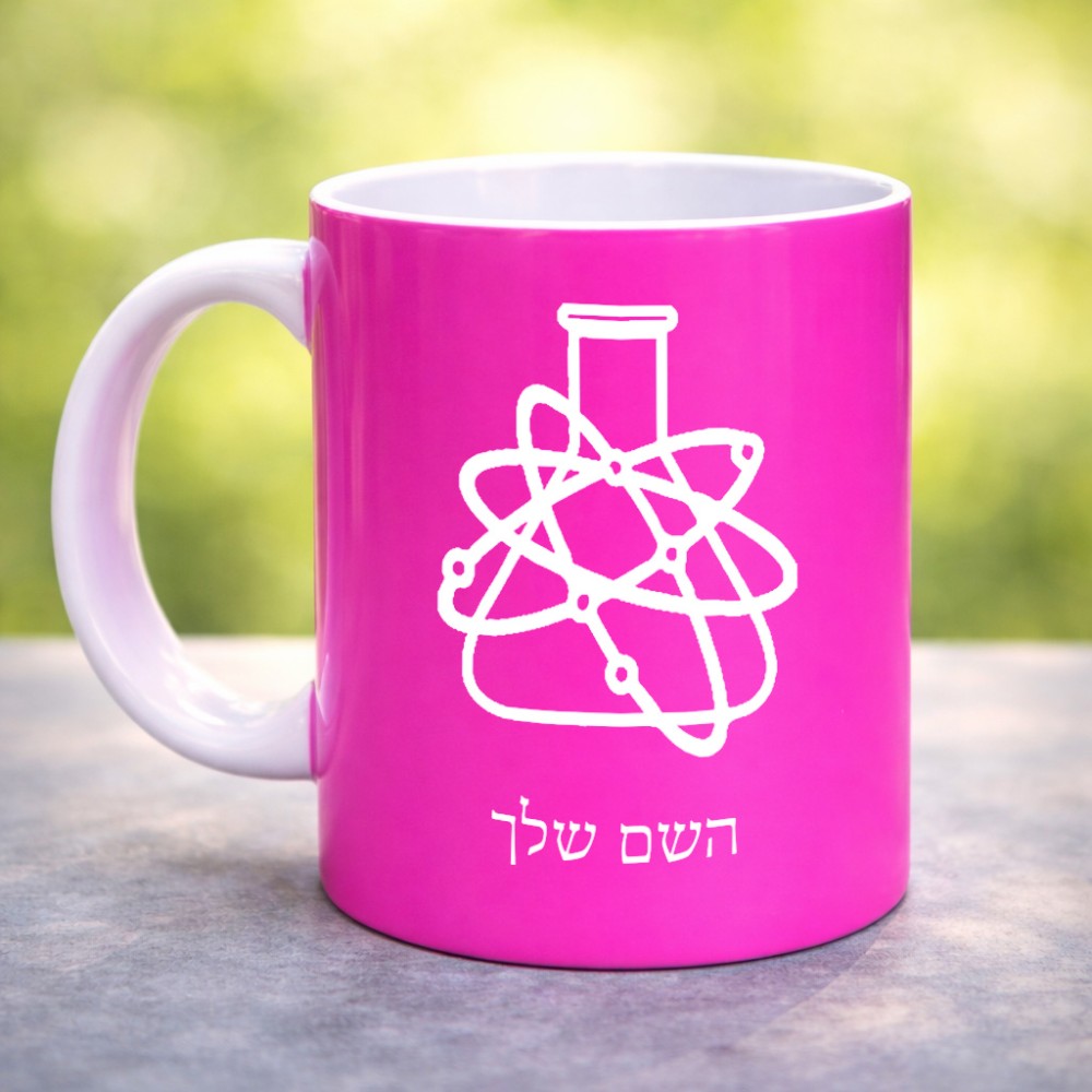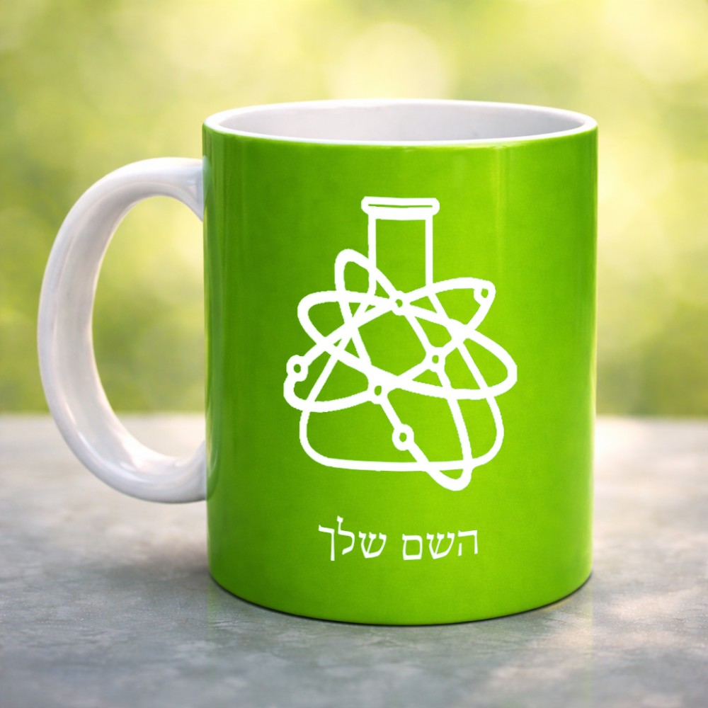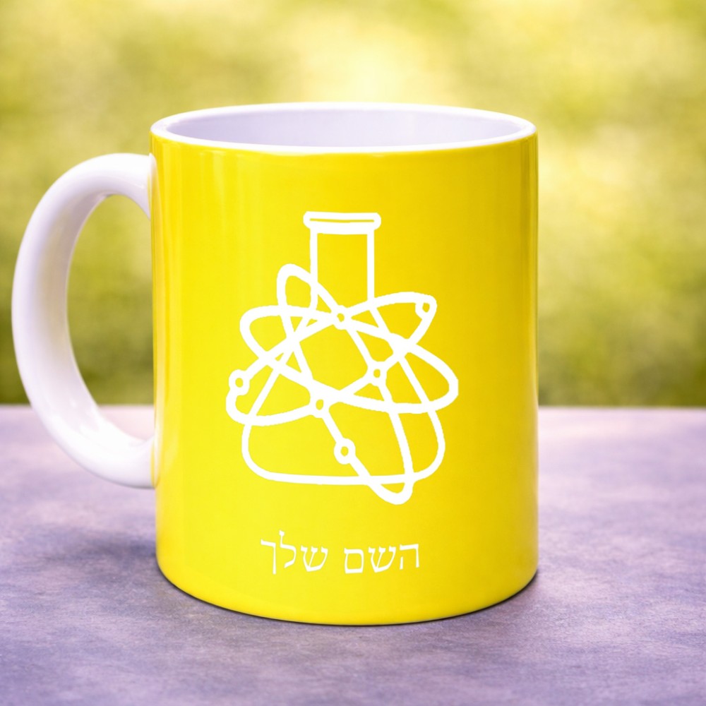 ספל תה \ קפה בעיצוב אישי עם השם שלך בעיצוב מעבדה גדול הספל 325 מ"ל, הספל בעלת ידית לאחיזה יציבה. את השם המבוקש ניתן לציין בהזמנה, אם לא צויין אנחנו ניצור קשר לבירור.