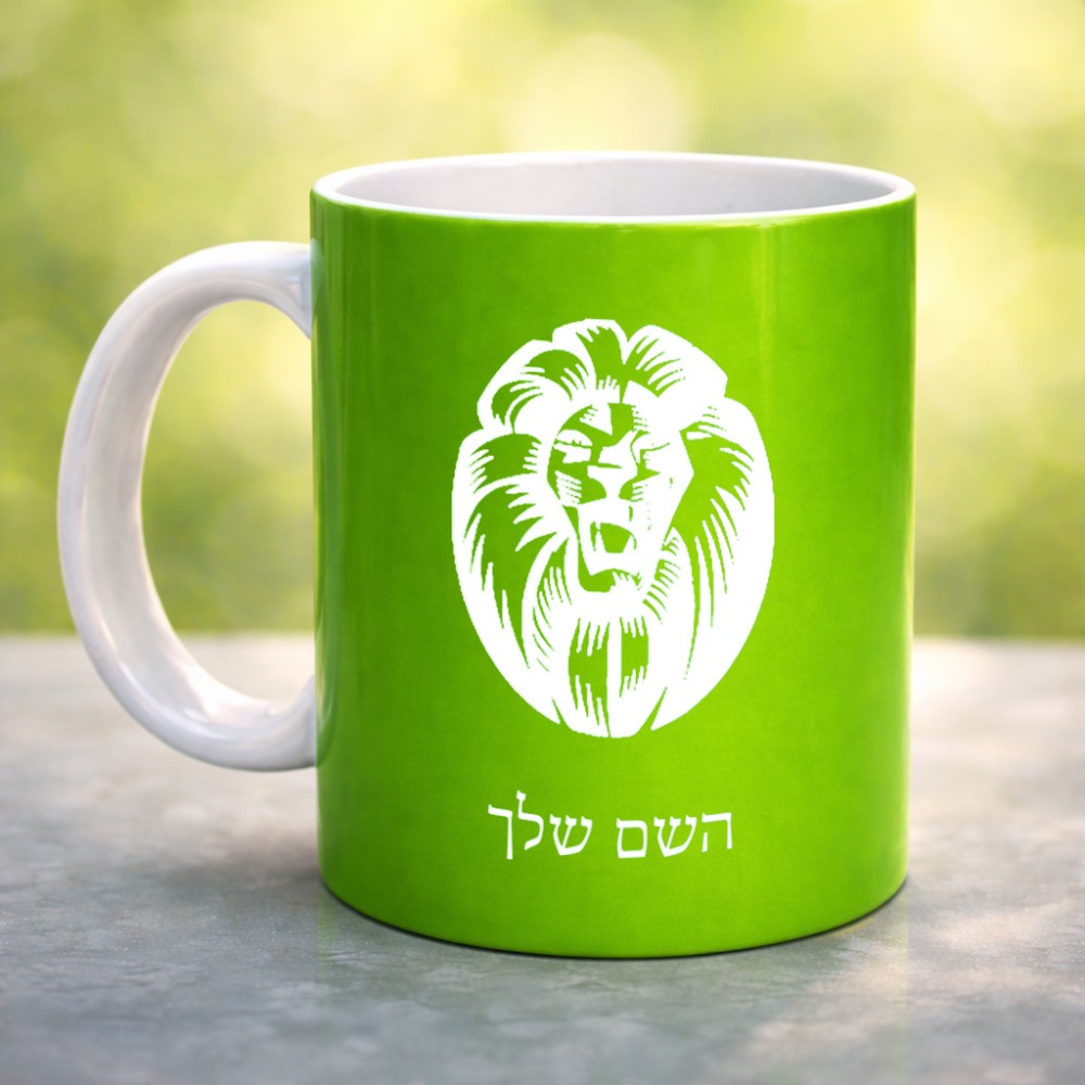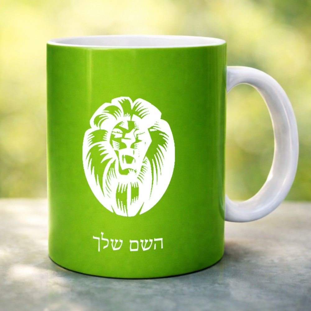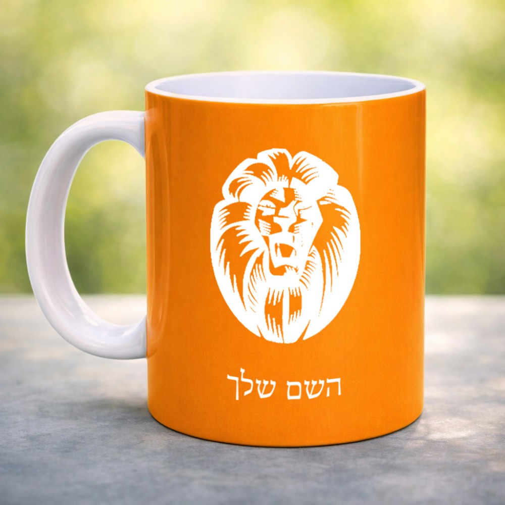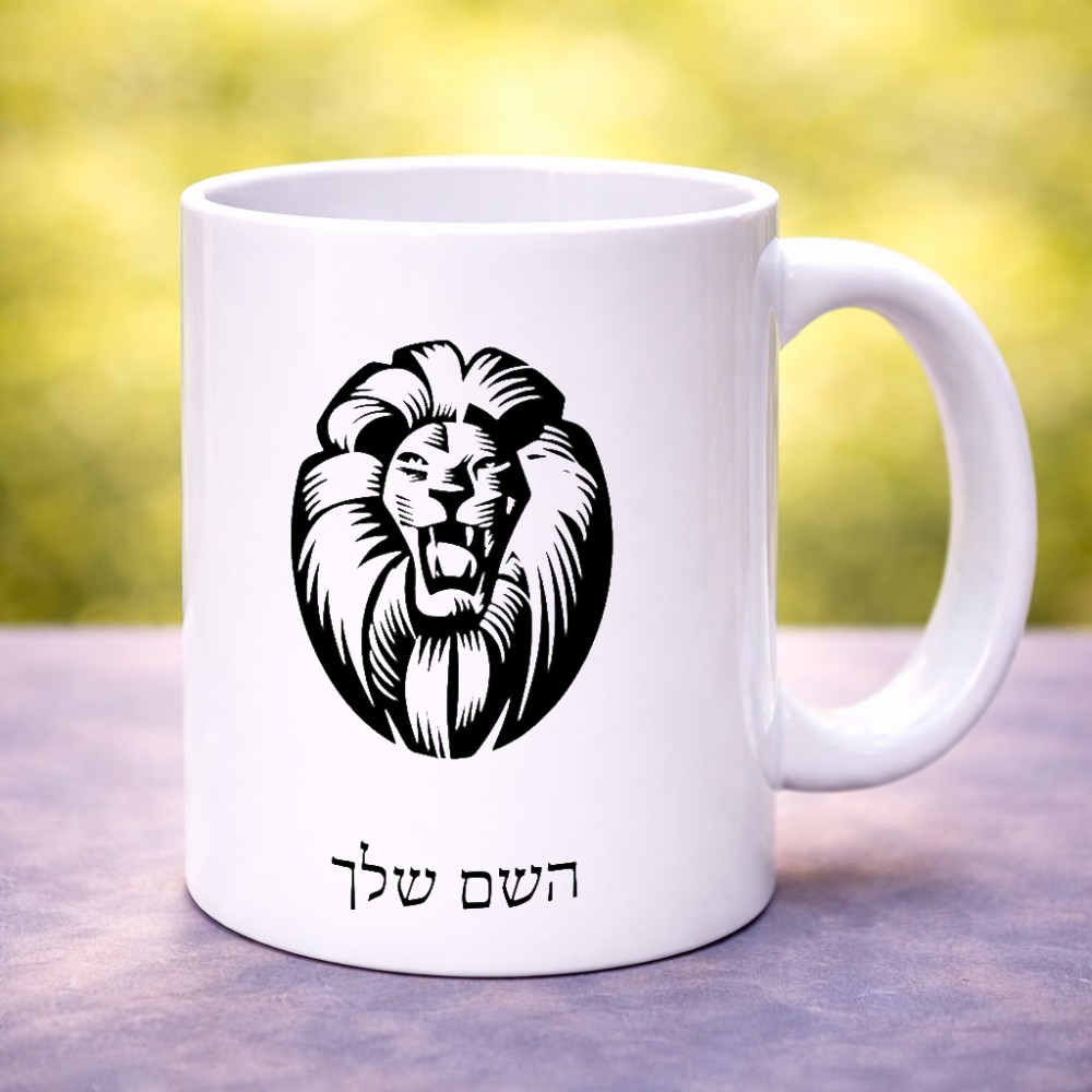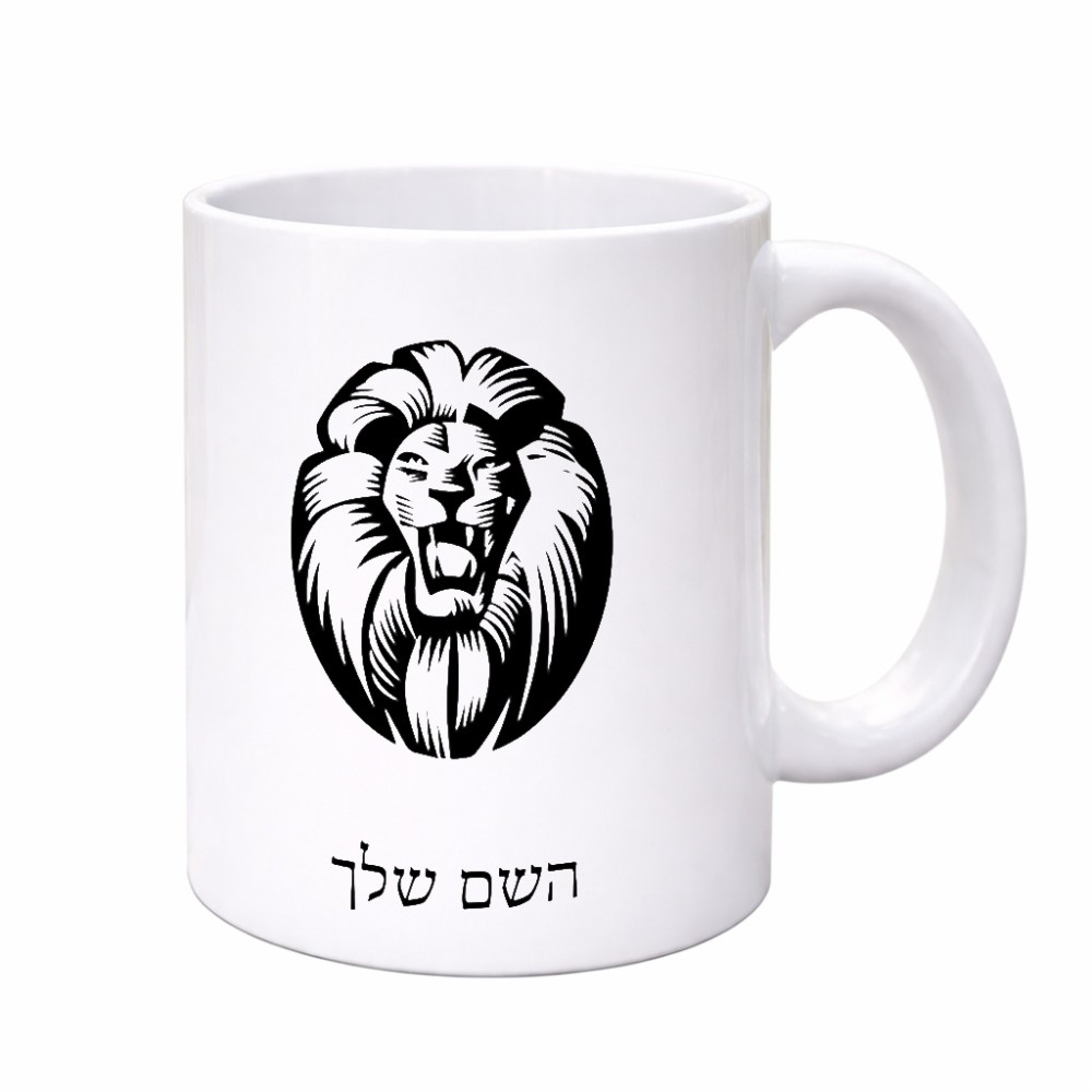 ספל תה \ קפה בעיצוב אישי עם השם שלך בעיצוב פני אריה גדול הספל 325 מ"ל, הספל בעלת ידית לאחיזה יציבה. את השם המבוקש ניתן לציין בהזמנה, אם לא צויין אנחנו ניצור קשר לבירור.