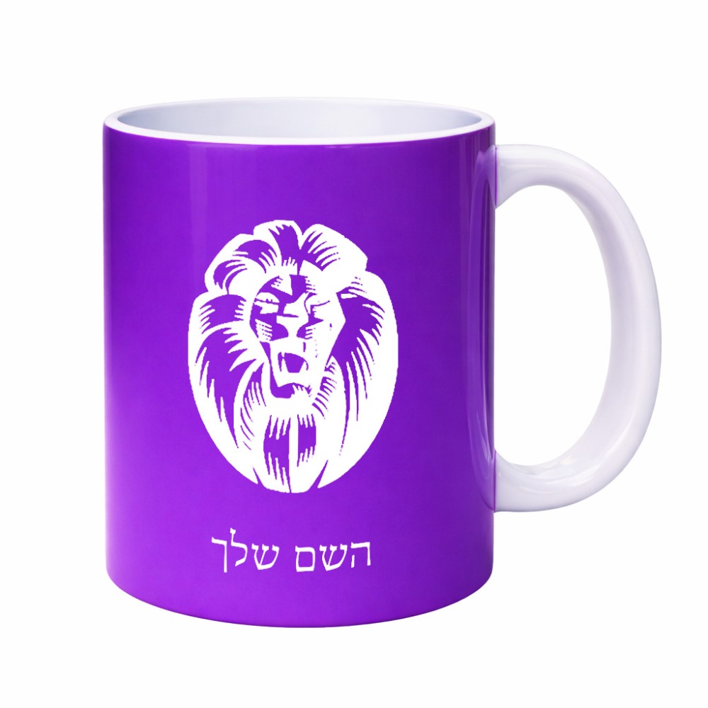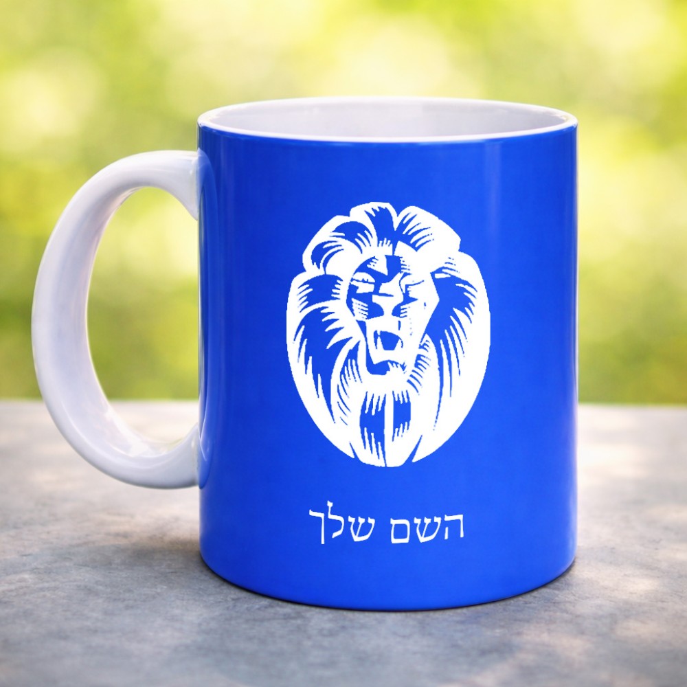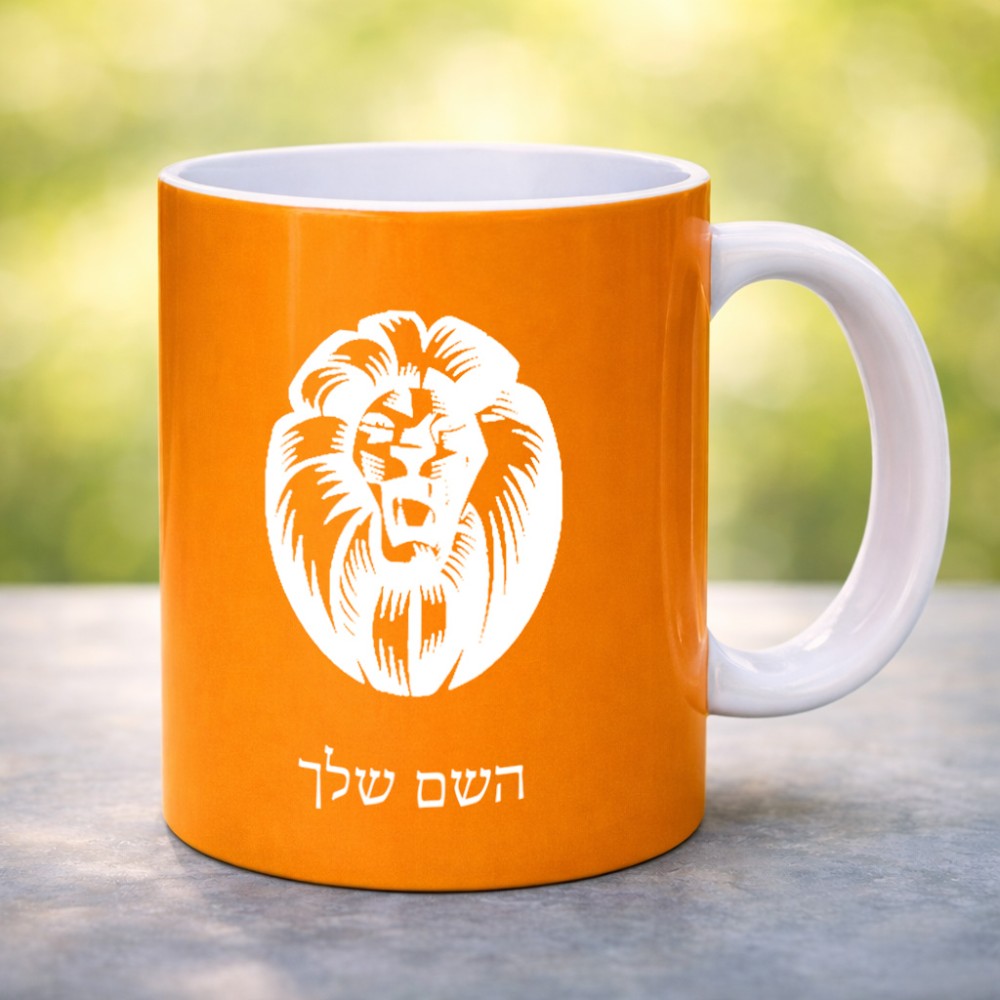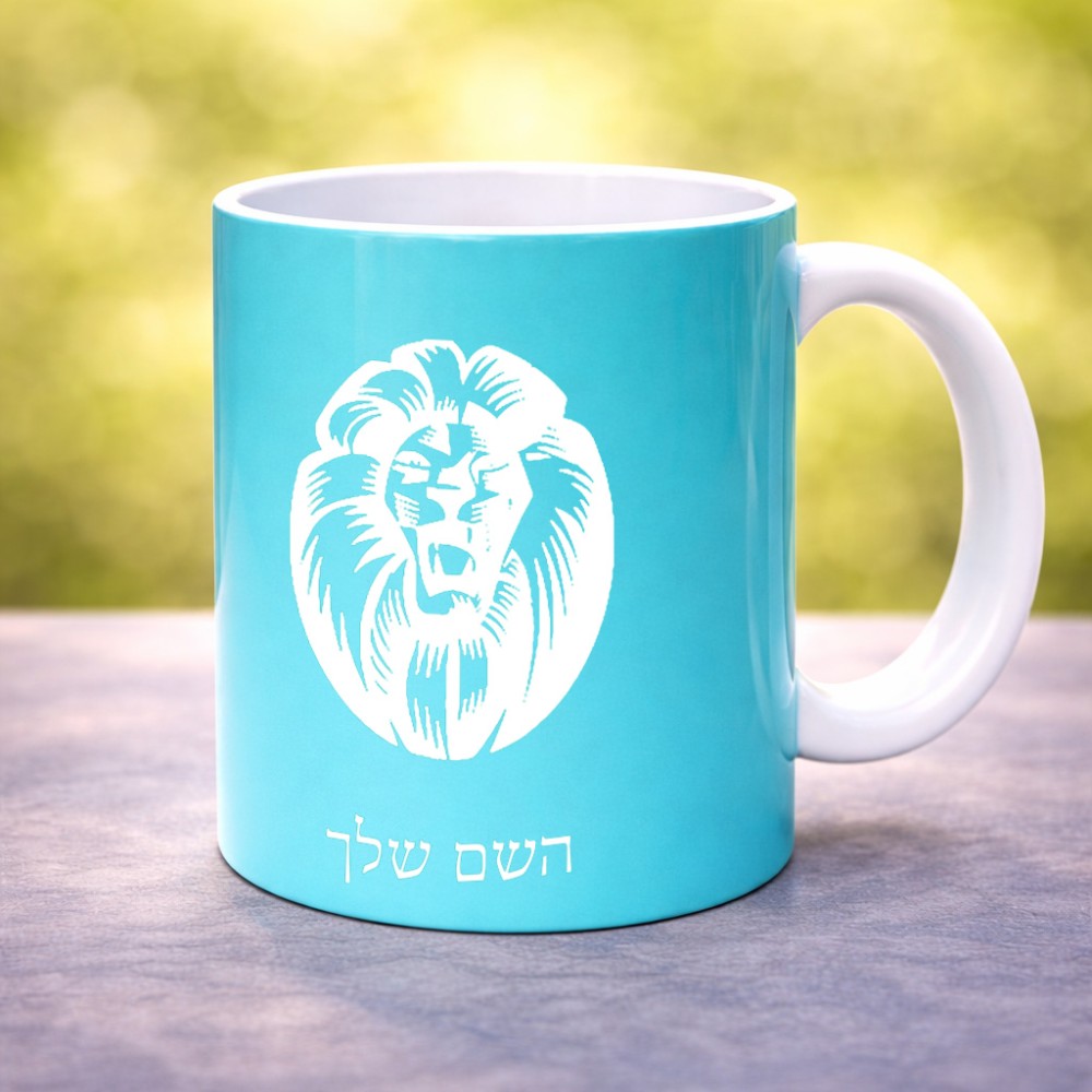 ספל תה \ קפה בעיצוב אישי עם השם שלך בעיצוב פני אריה גדול הספל 325 מ"ל, הספל בעלת ידית לאחיזה יציבה. את השם המבוקש ניתן לציין בהזמנה, אם לא צויין אנחנו ניצור קשר לבירור.