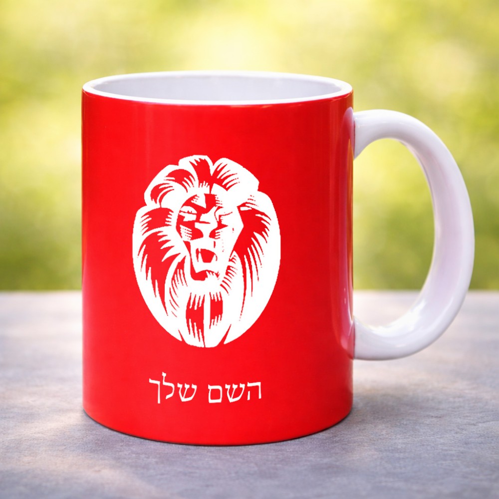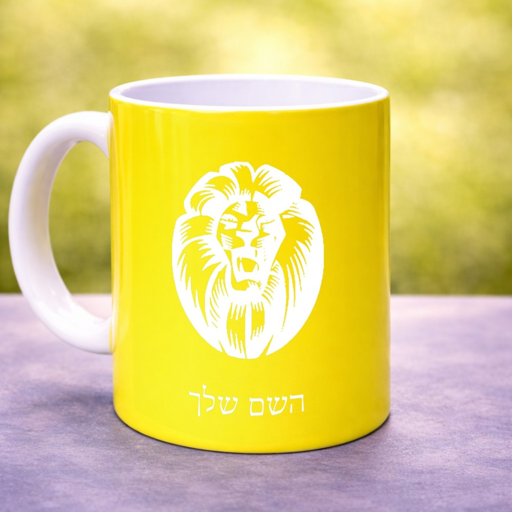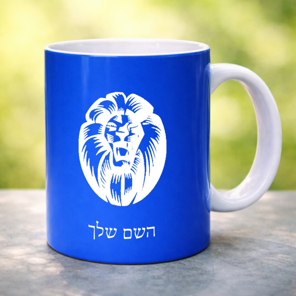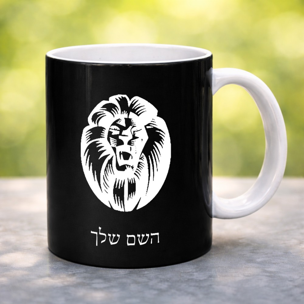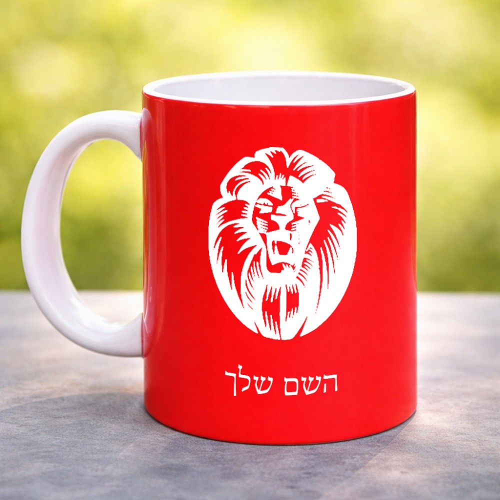 ספל תה \ קפה בעיצוב אישי עם השם שלך בעיצוב פני אריה גדול הספל 325 מ"ל, הספל בעלת ידית לאחיזה יציבה. את השם המבוקש ניתן לציין בהזמנה, אם לא צויין אנחנו ניצור קשר לבירור.