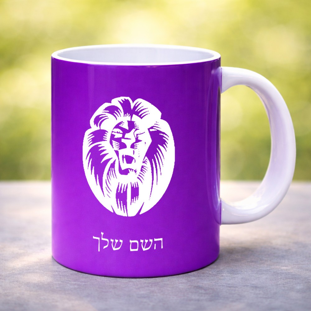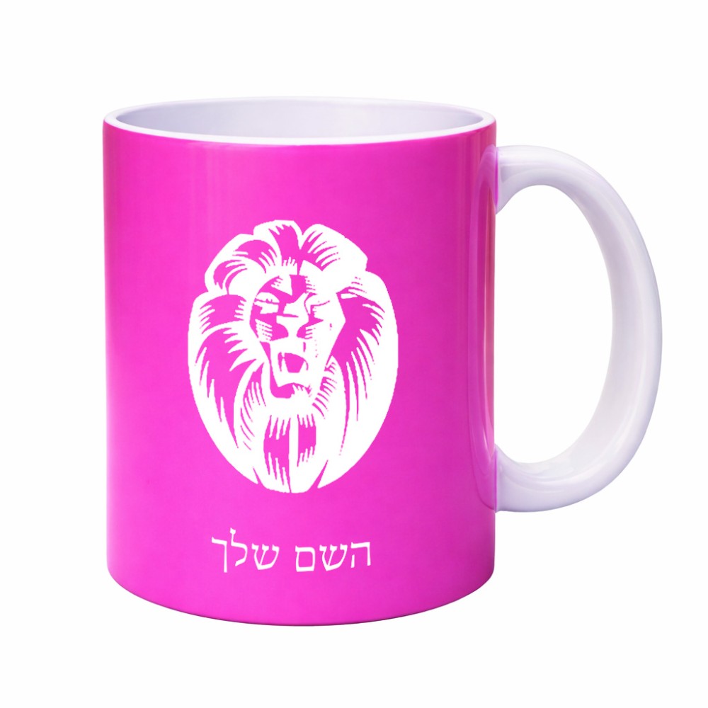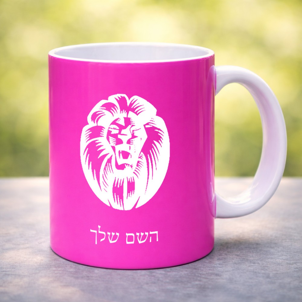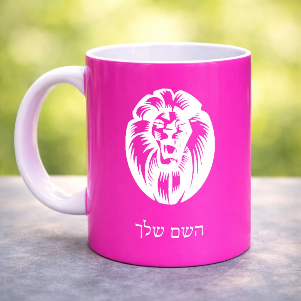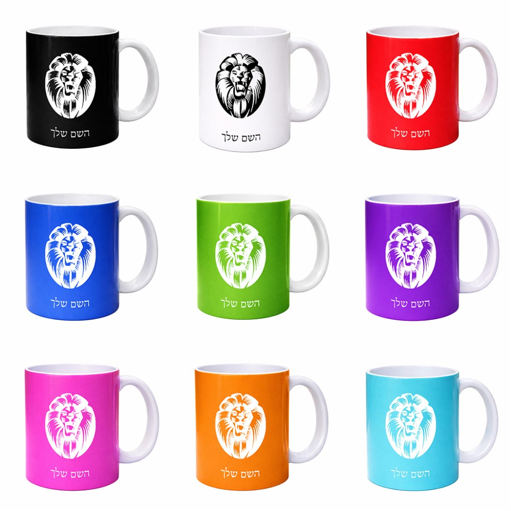 ספל תה \ קפה בעיצוב אישי עם השם שלך בעיצוב פני אריה גדול הספל 325 מ"ל, הספל בעלת ידית לאחיזה יציבה. את השם המבוקש ניתן לציין בהזמנה, אם לא צויין אנחנו ניצור קשר לבירור.