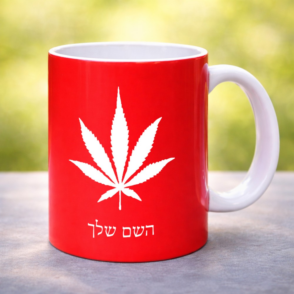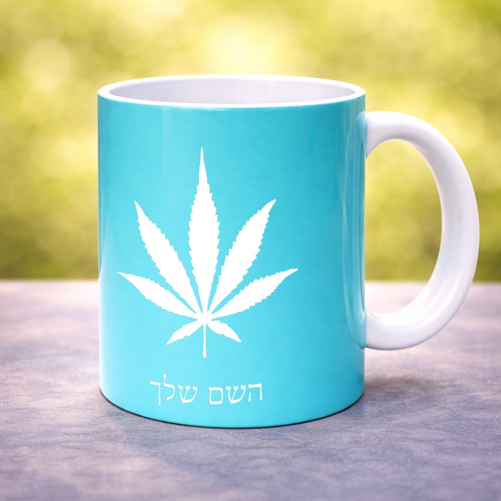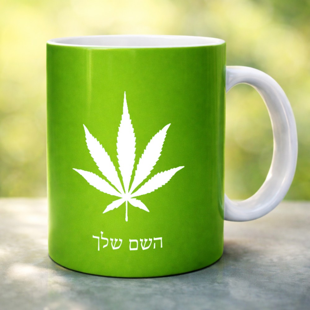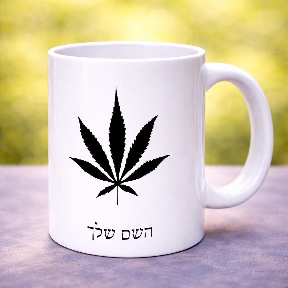 ספל תה \ קפה בעיצוב אישי עם השם שלך בעיצוב עלה מריחואנה - גראס גדול הספל 325 מ"ל, הספל בעלת ידית לאחיזה יציבה. את השם המבוקש ניתן לציין בהזמנה, אם לא צויין אנחנו ניצור קשר לבירור.