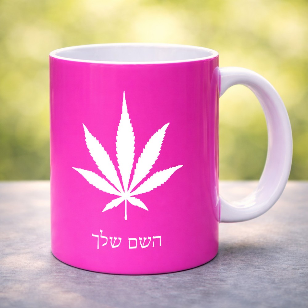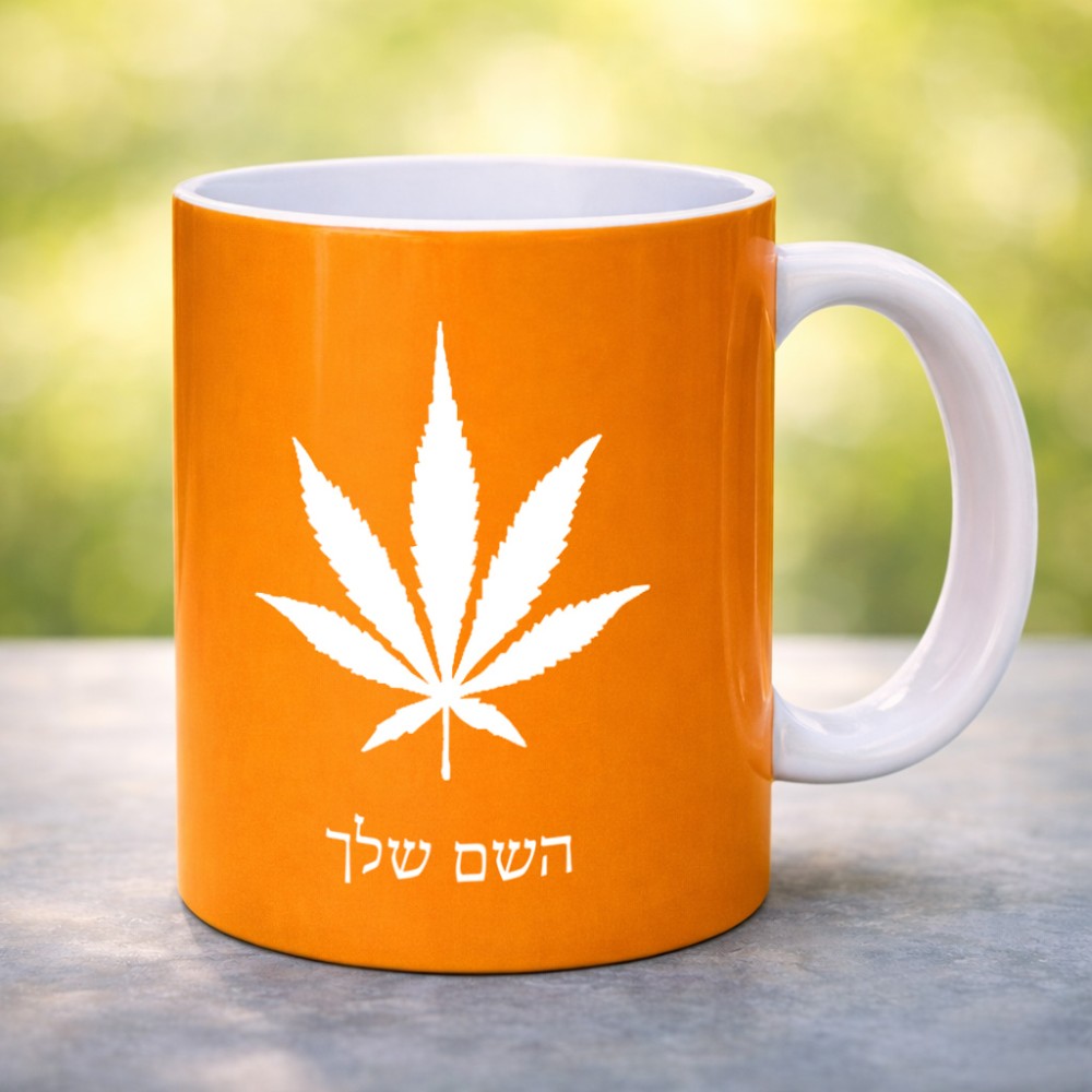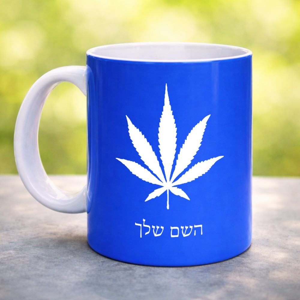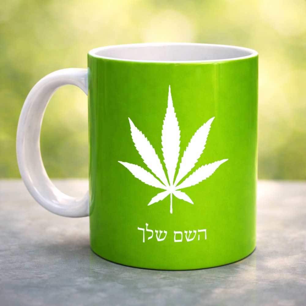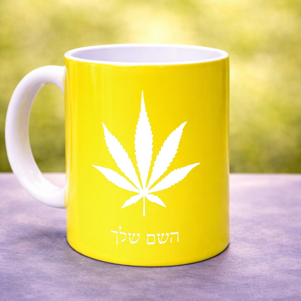 ספל תה \ קפה בעיצוב אישי עם השם שלך בעיצוב עלה מריחואנה - גראס גדול הספל 325 מ"ל, הספל בעלת ידית לאחיזה יציבה. את השם המבוקש ניתן לציין בהזמנה, אם לא צויין אנחנו ניצור קשר לבירור.