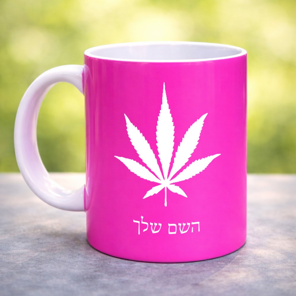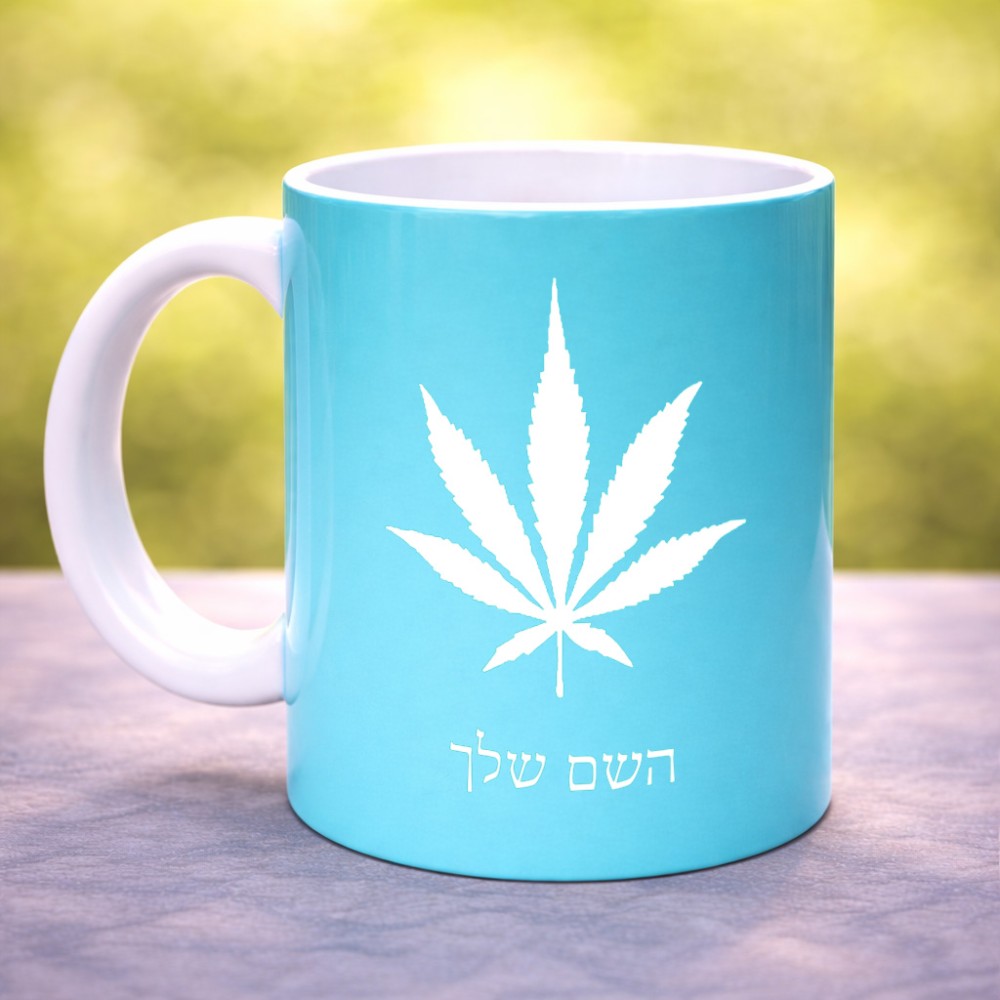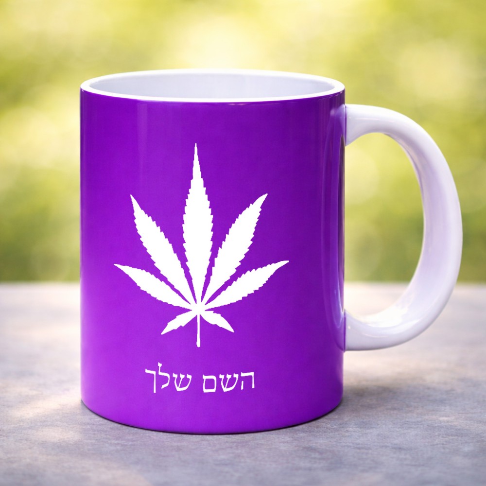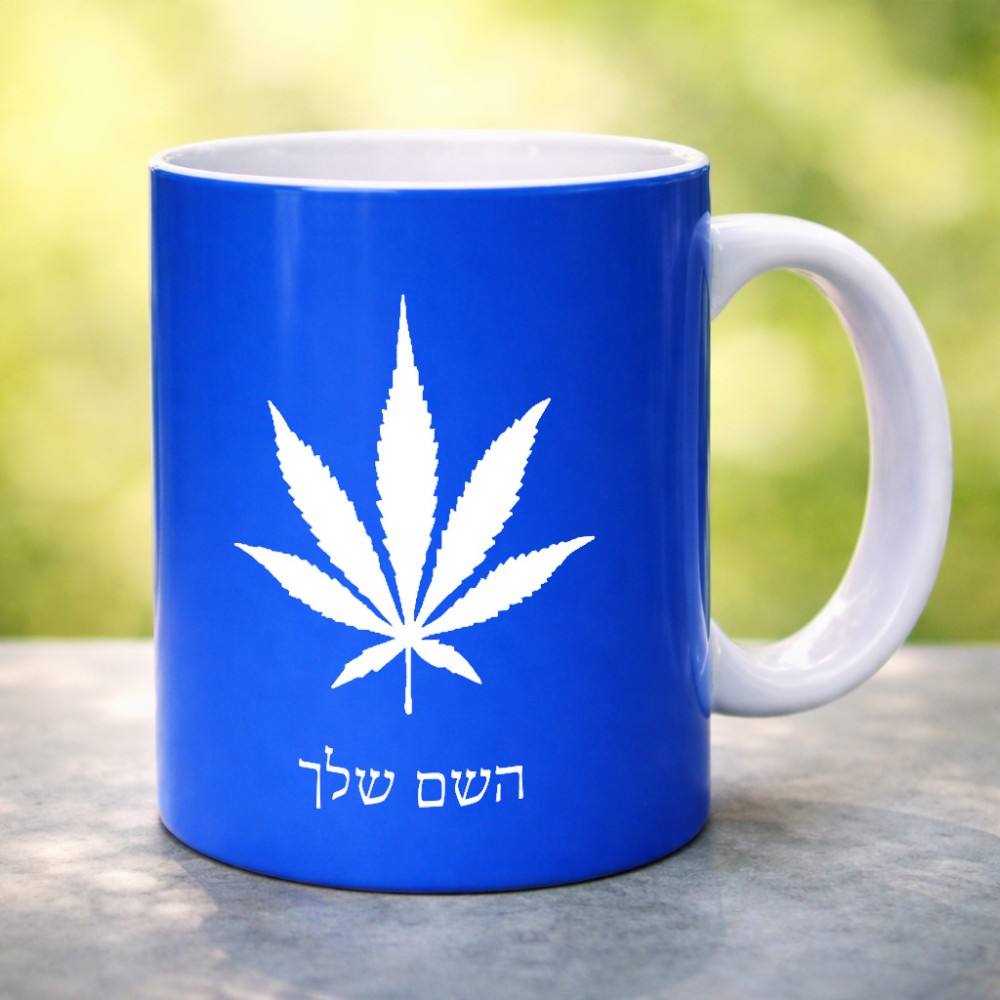 ספל תה \ קפה בעיצוב אישי עם השם שלך בעיצוב עלה מריחואנה - גראס גדול הספל 325 מ"ל, הספל בעלת ידית לאחיזה יציבה. את השם המבוקש ניתן לציין בהזמנה, אם לא צויין אנחנו ניצור קשר לבירור.