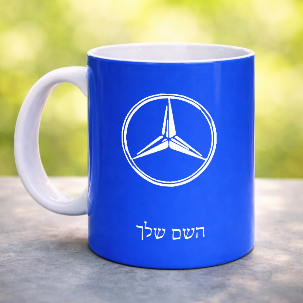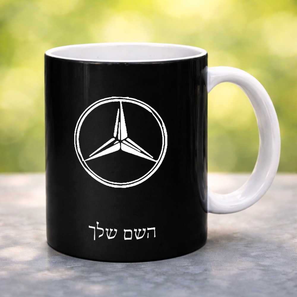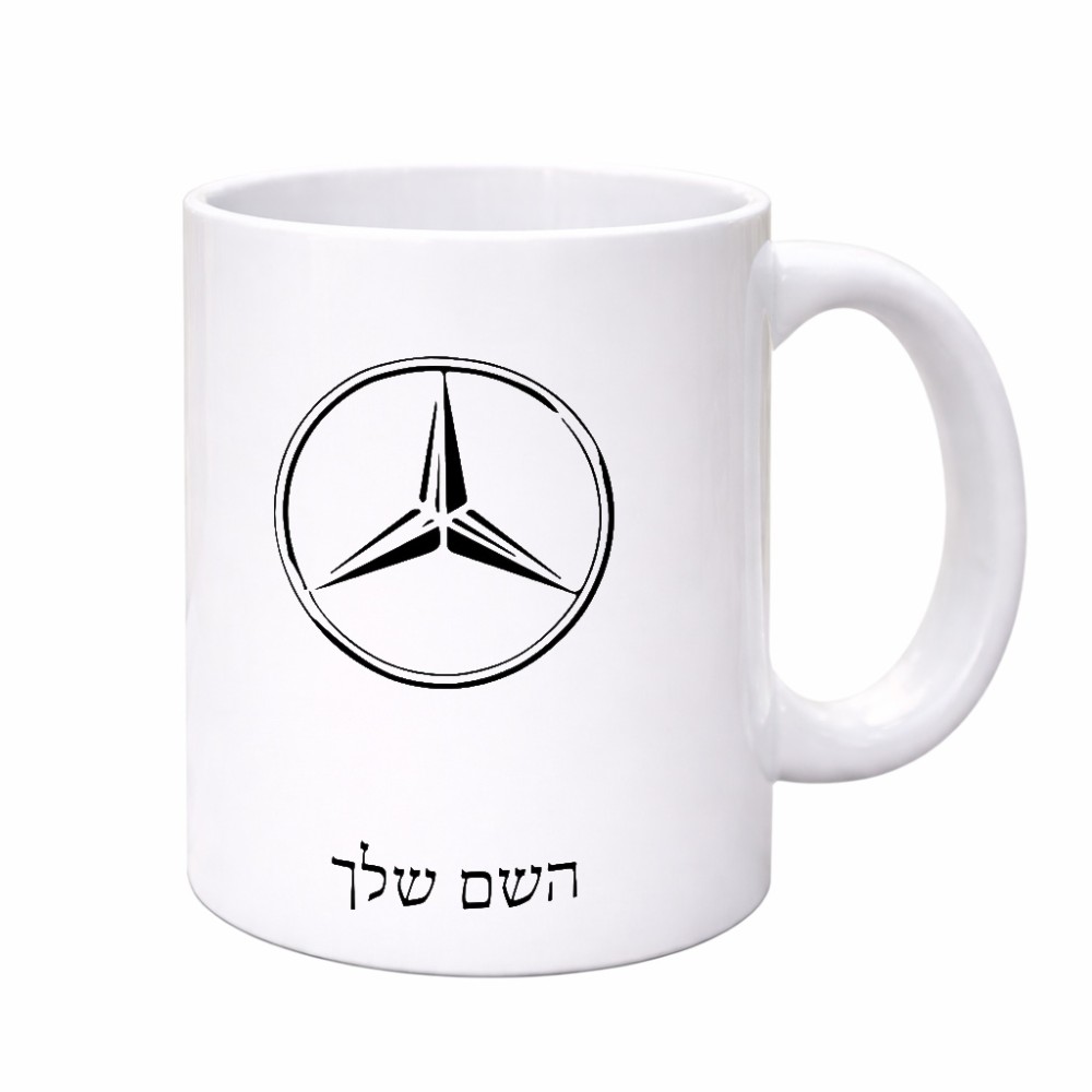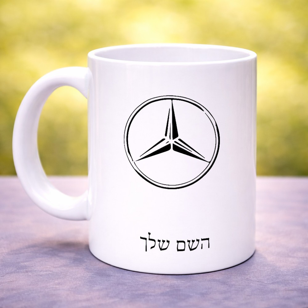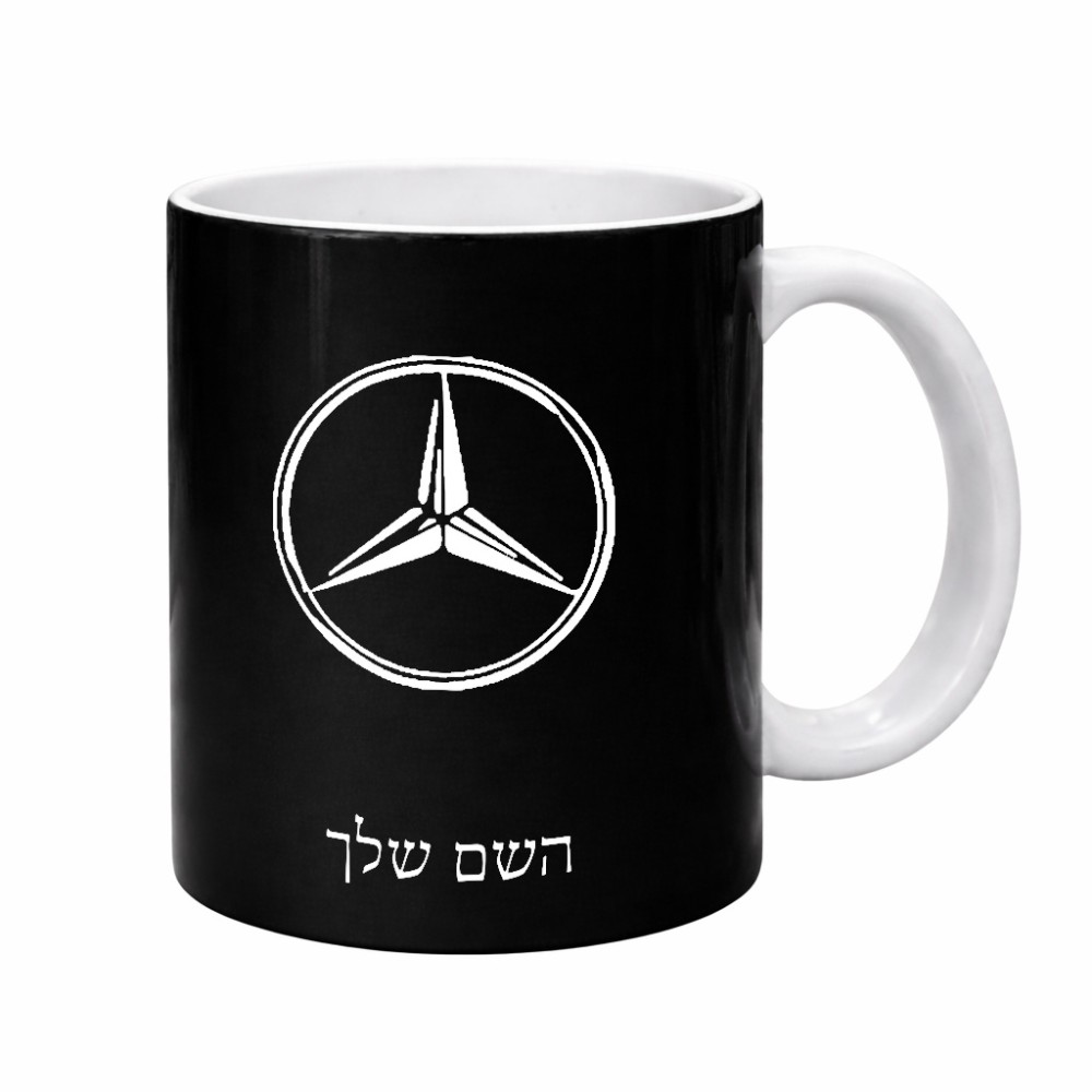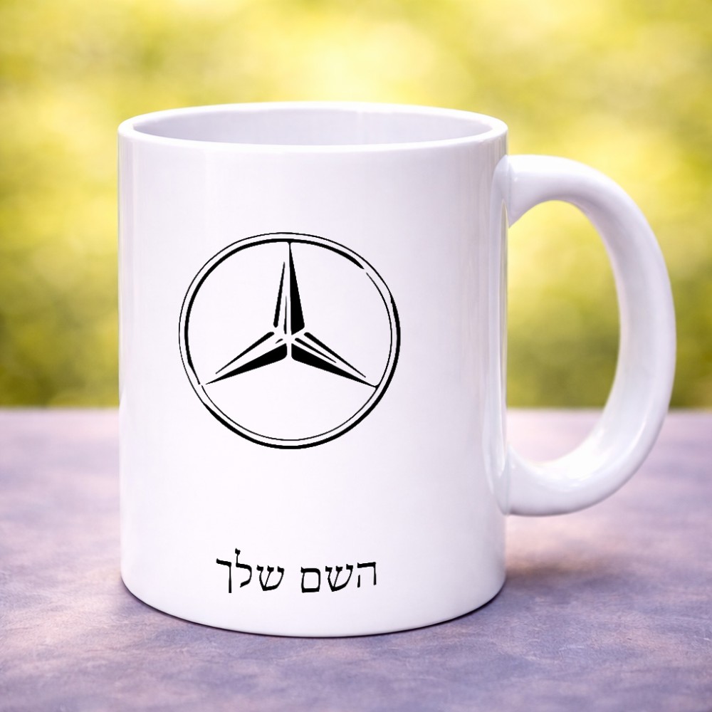 ספל תה \ קפה בעיצוב אישי עם השם שלך בעיצוב מרצדס-בנץ גודל הספל 325 מ"ל
