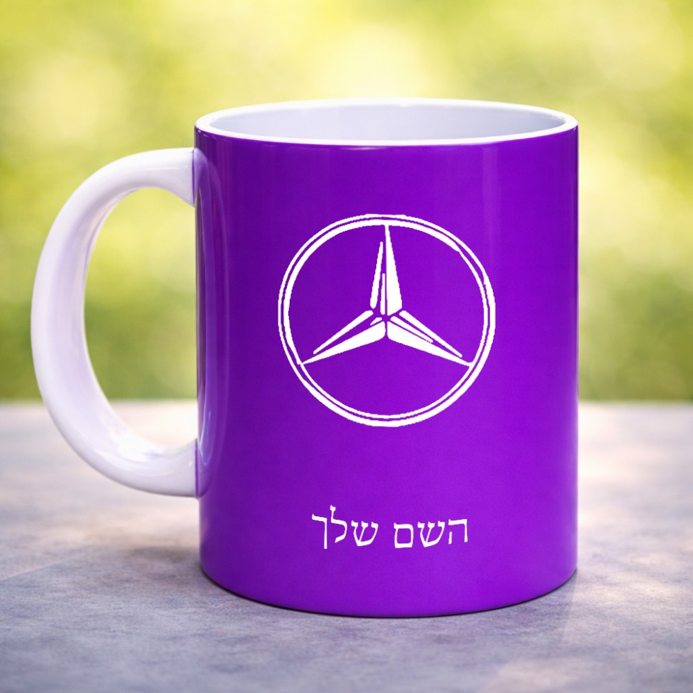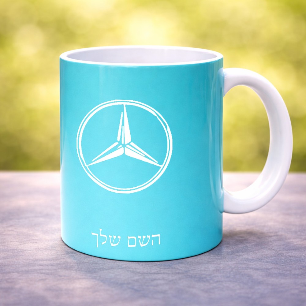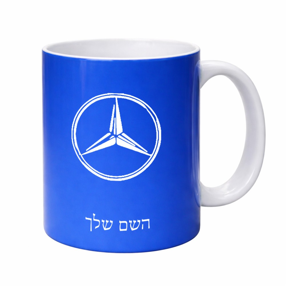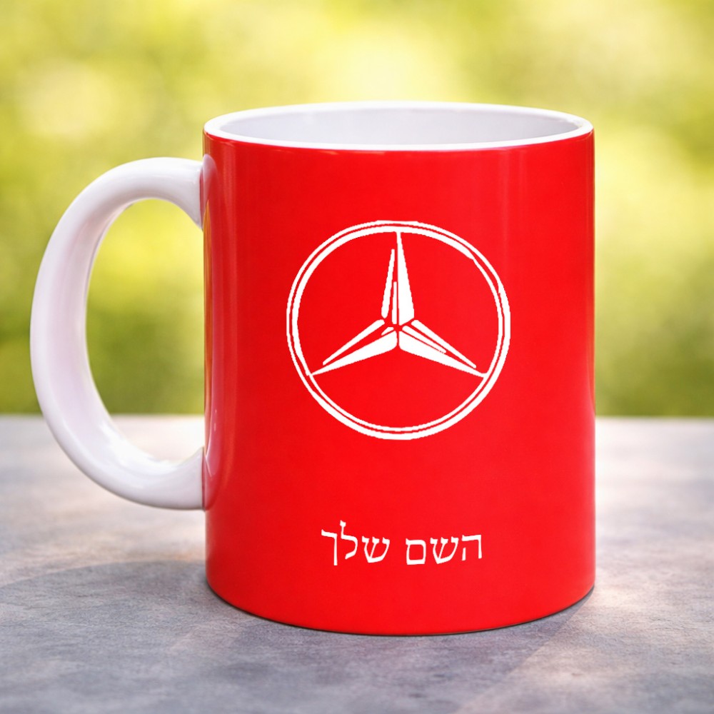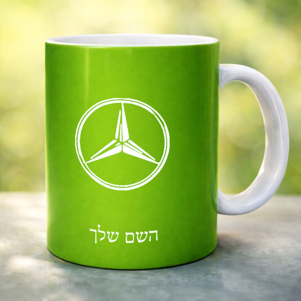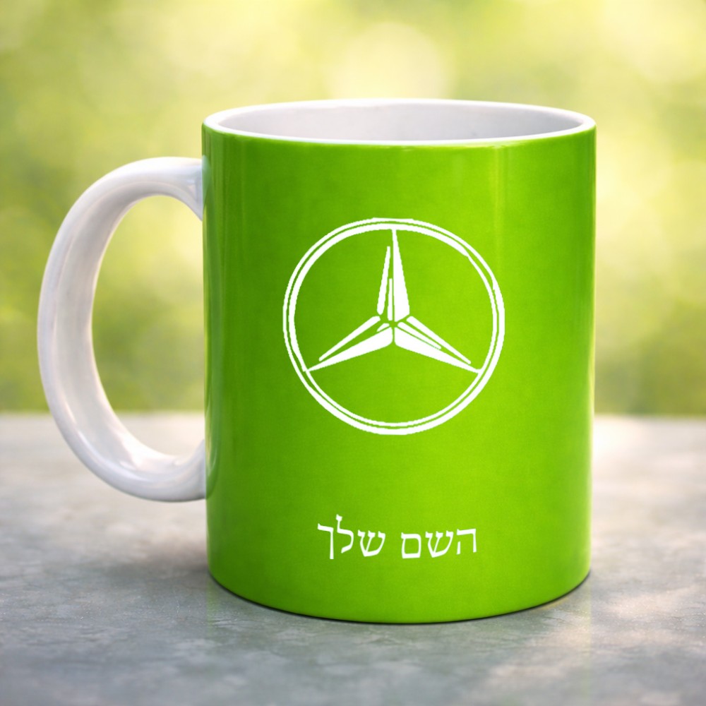 ספל תה \ קפה בעיצוב אישי עם השם שלך בעיצוב מרצדס-בנץ גודל הספל 325 מ"ל