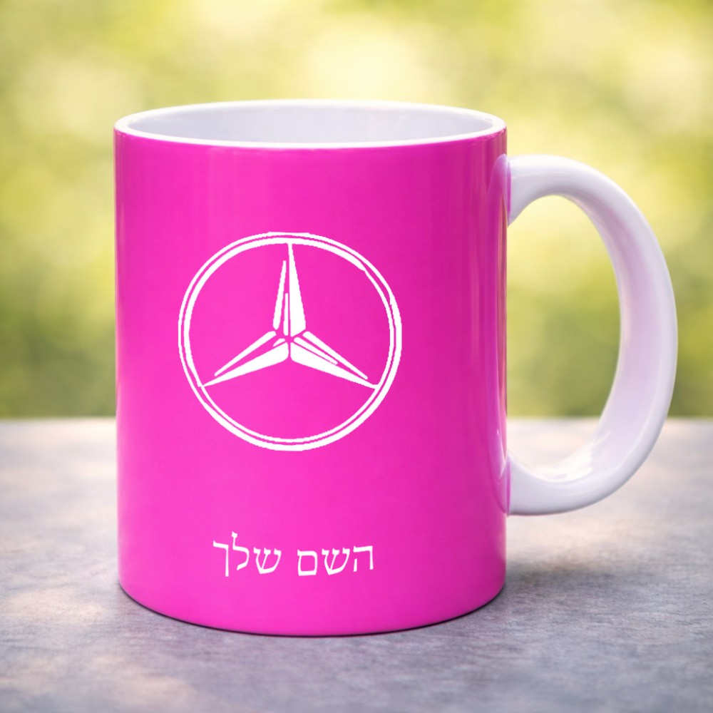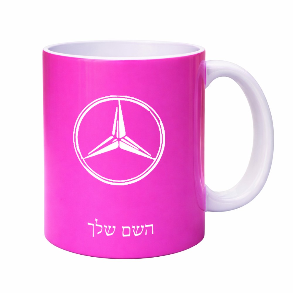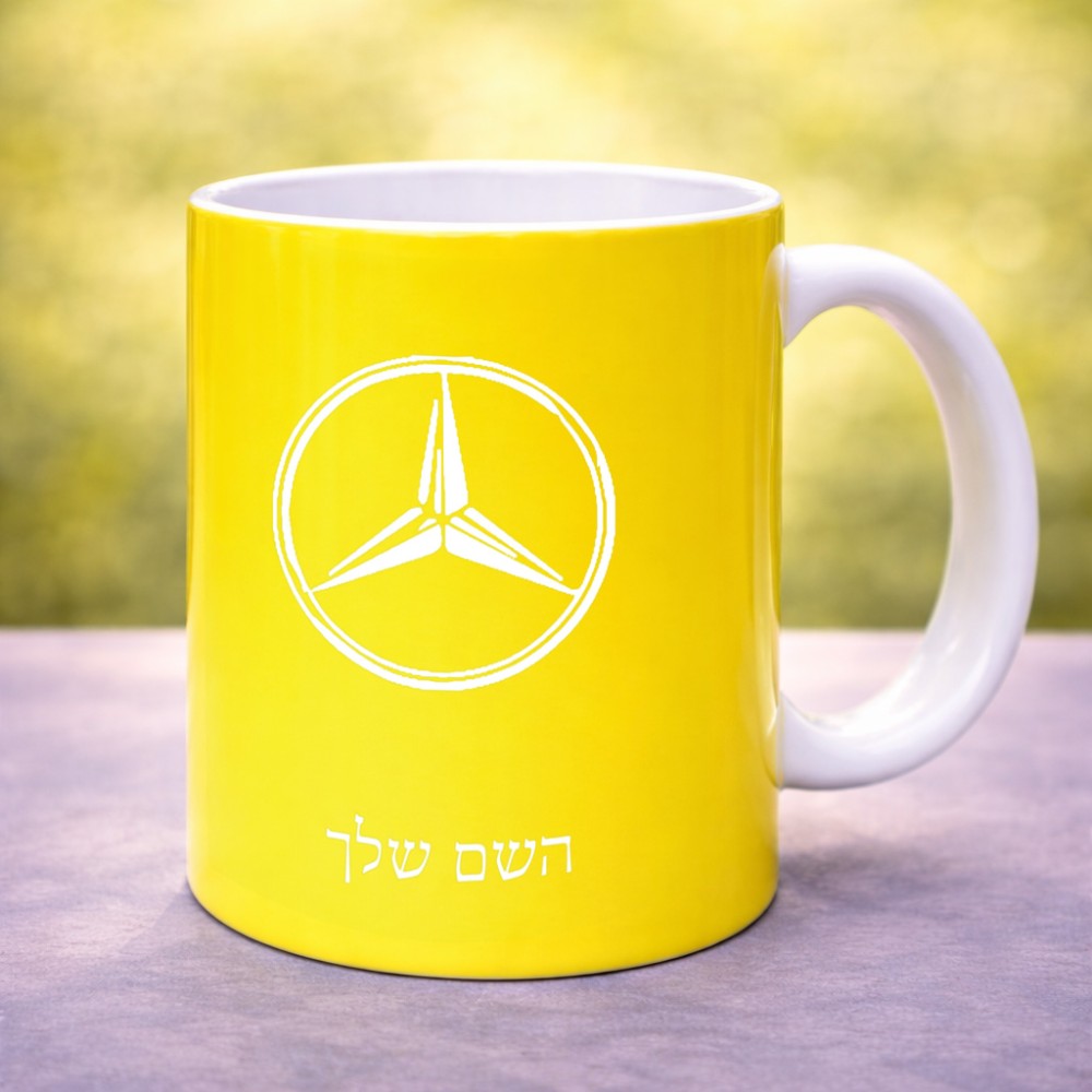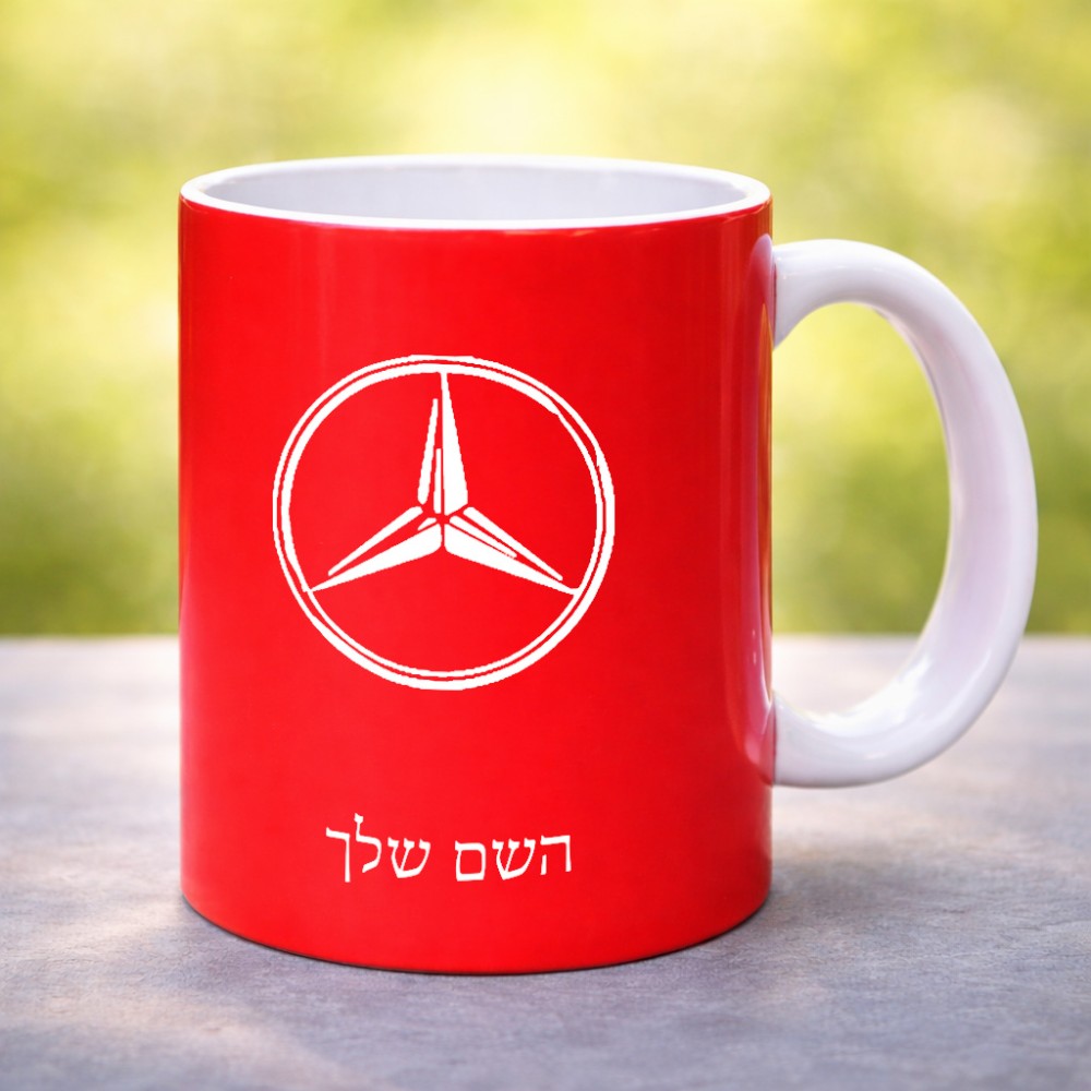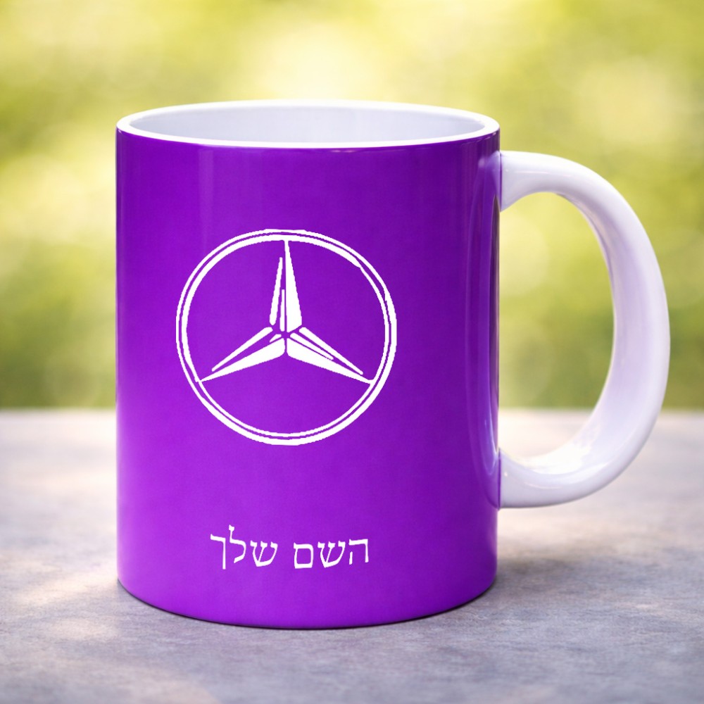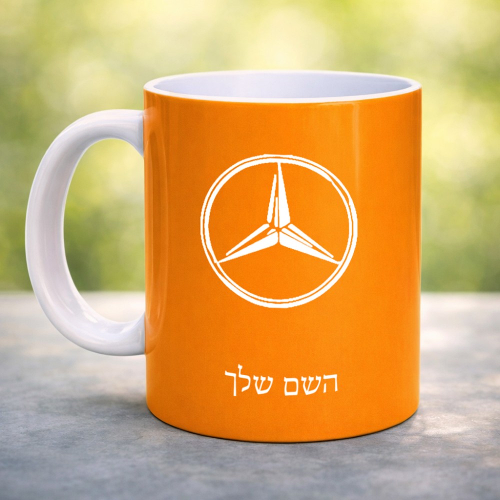 ספל תה \ קפה בעיצוב אישי עם השם שלך בעיצוב מרצדס-בנץ גודל הספל 325 מ"ל