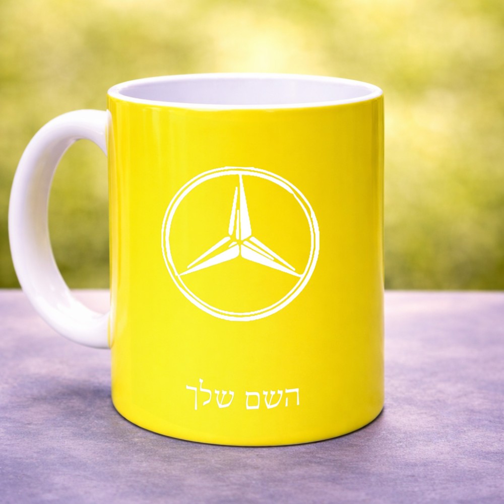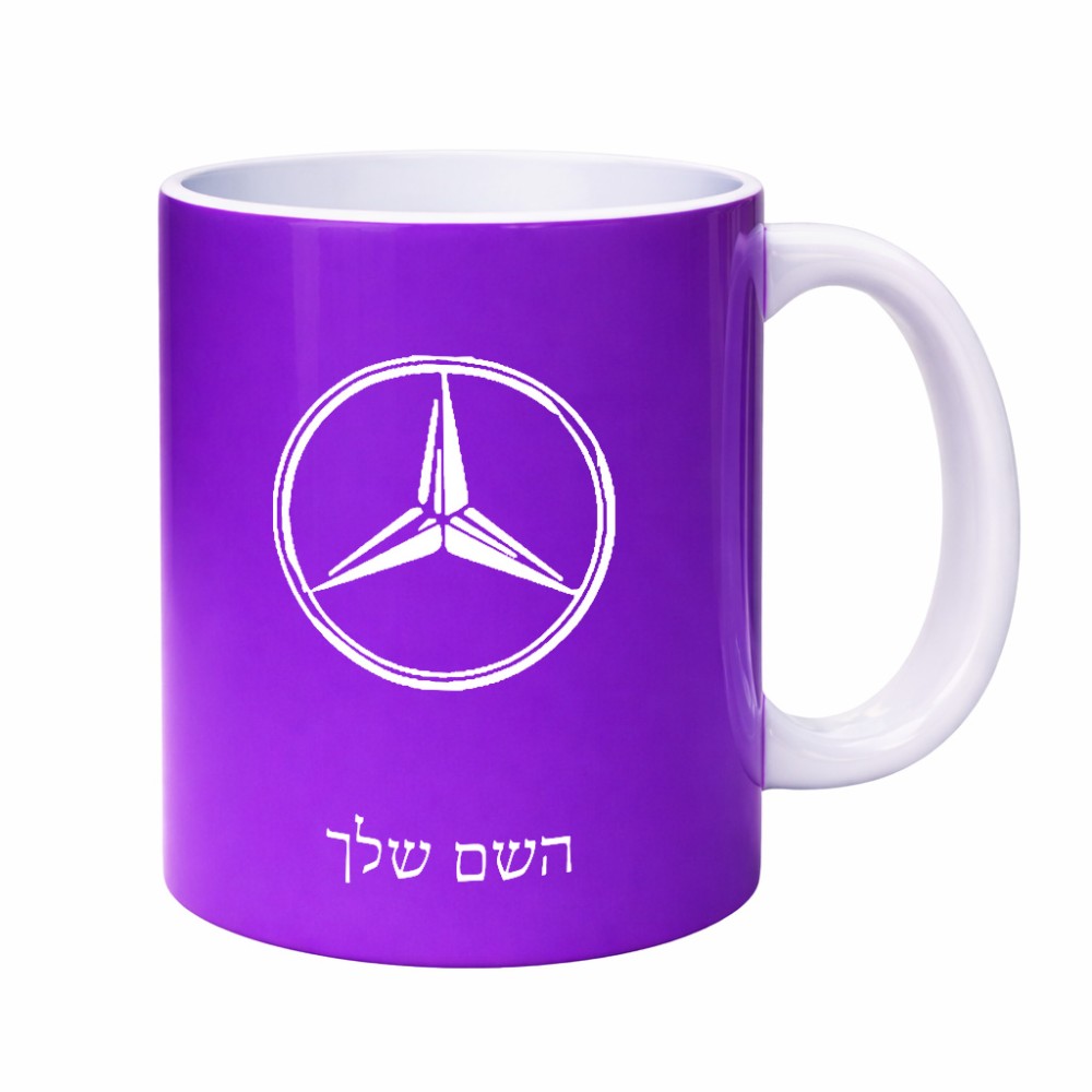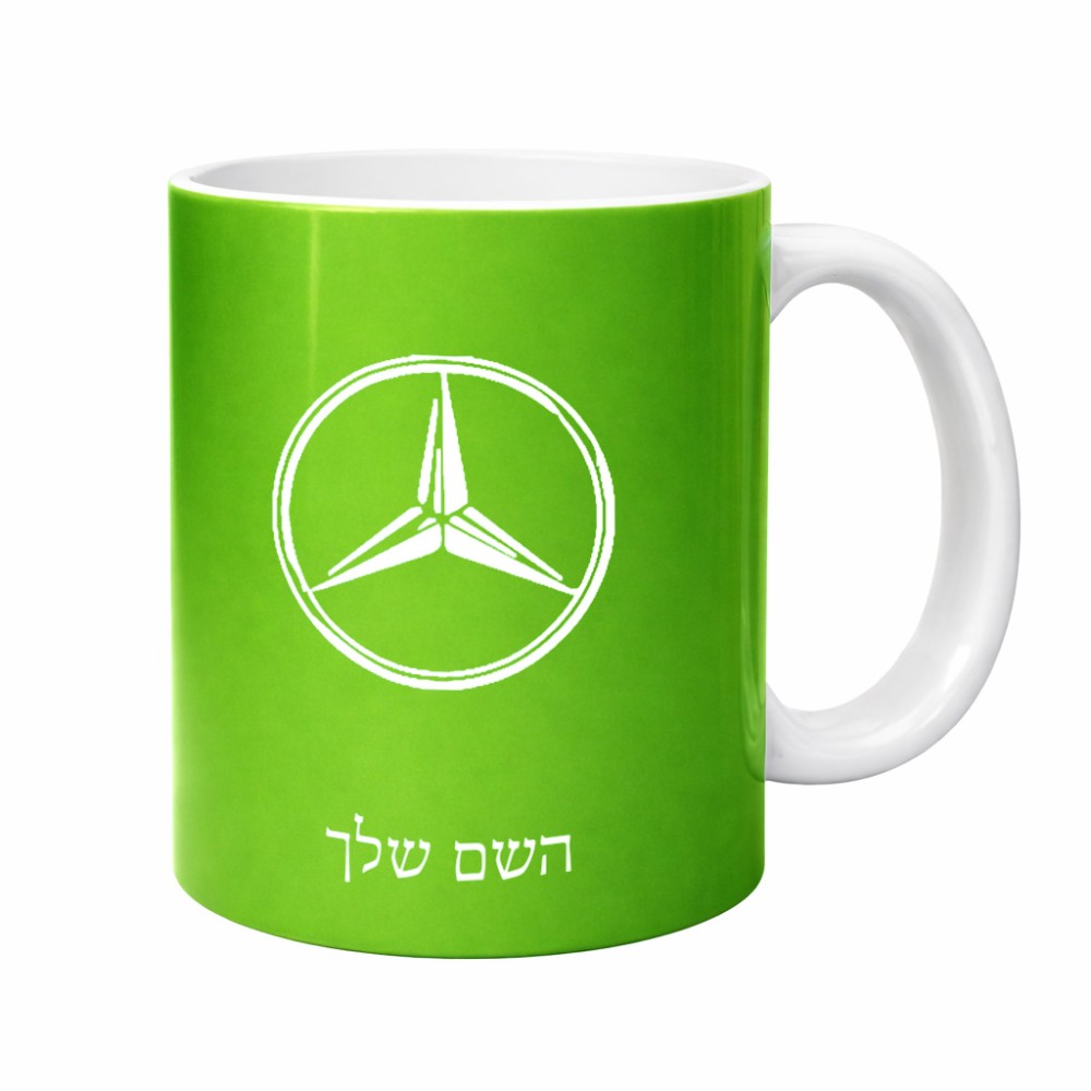 ספל תה \ קפה בעיצוב אישי עם השם שלך בעיצוב מרצדס-בנץ גדול הספל 325 מ"ל, הספל בעלת ידית לאחיזה יציבה. את השם המבוקש ניתן לציין בהזמנה, אם לא צויין אנחנו ניצור קשר לבירור.