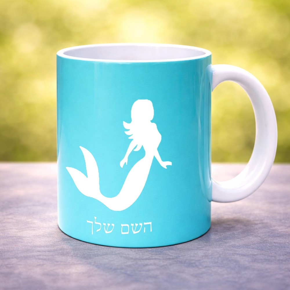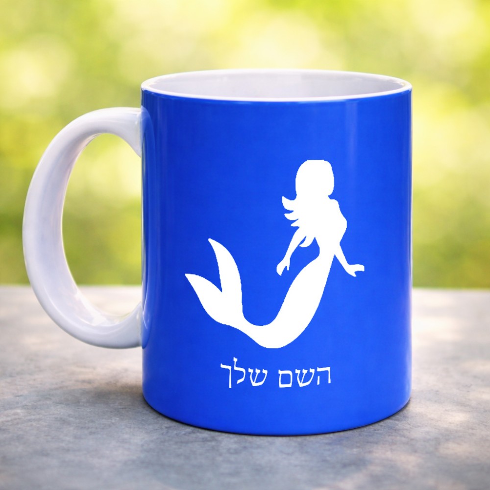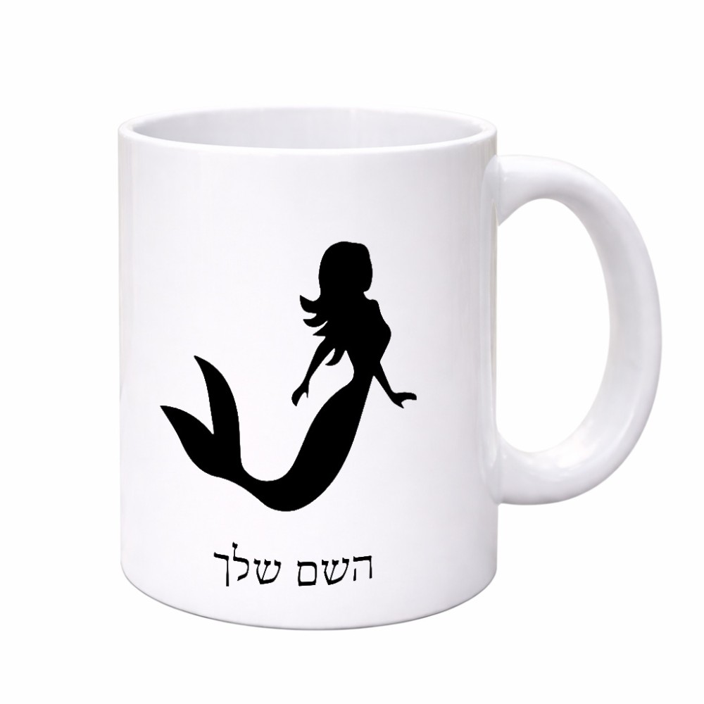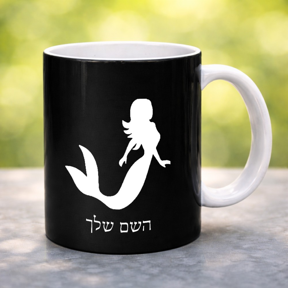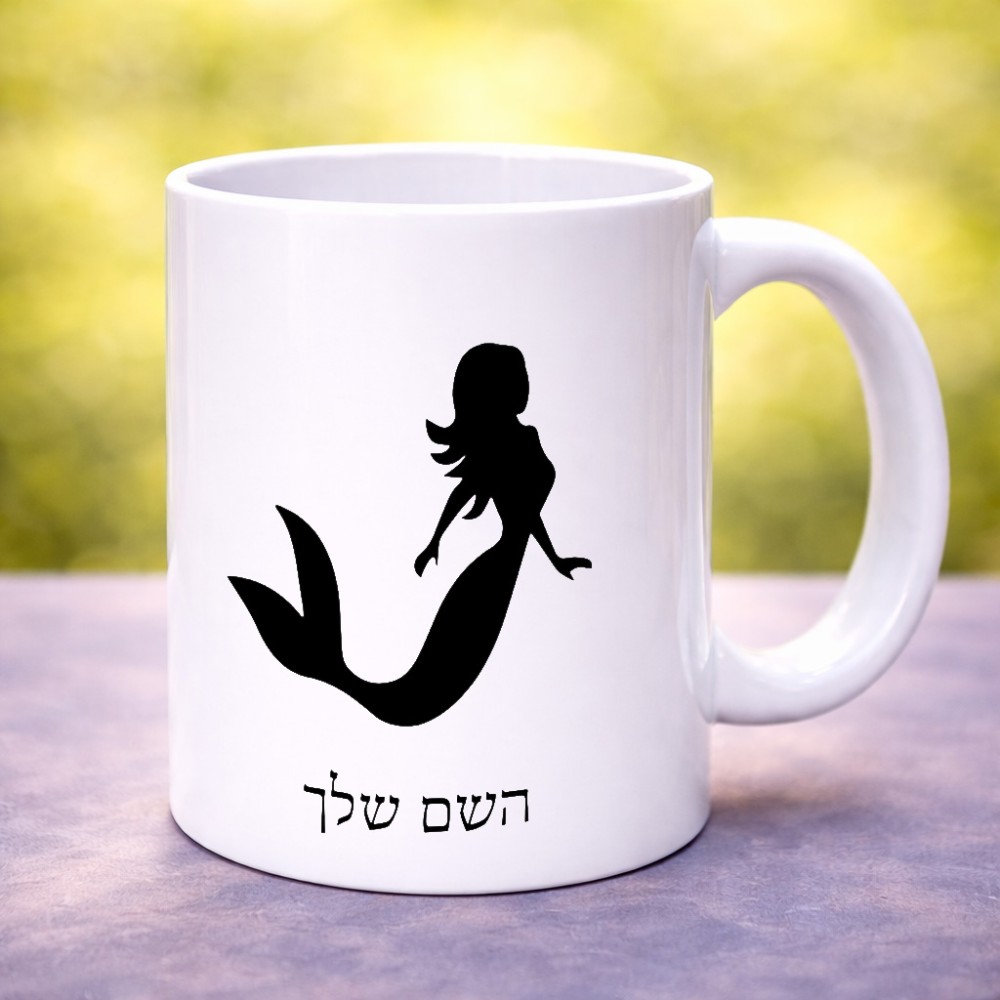 ספל תה \ קפה בעיצוב אישי עם השם שלך בעיצוב בתולת ים - אישה גדול הספל 325 מ"ל, הספל בעלת ידית לאחיזה יציבה. את השם המבוקש ניתן לציין בהזמנה, אם לא צויין אנחנו ניצור קשר לבירור.