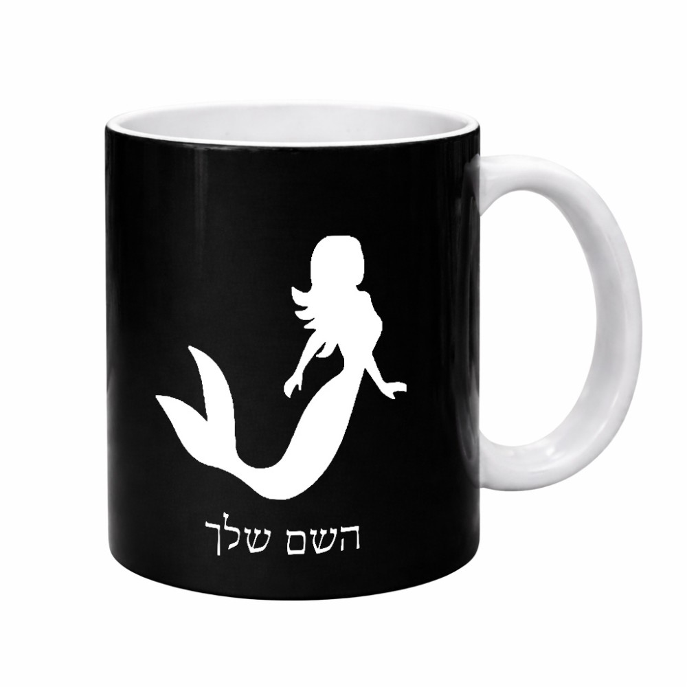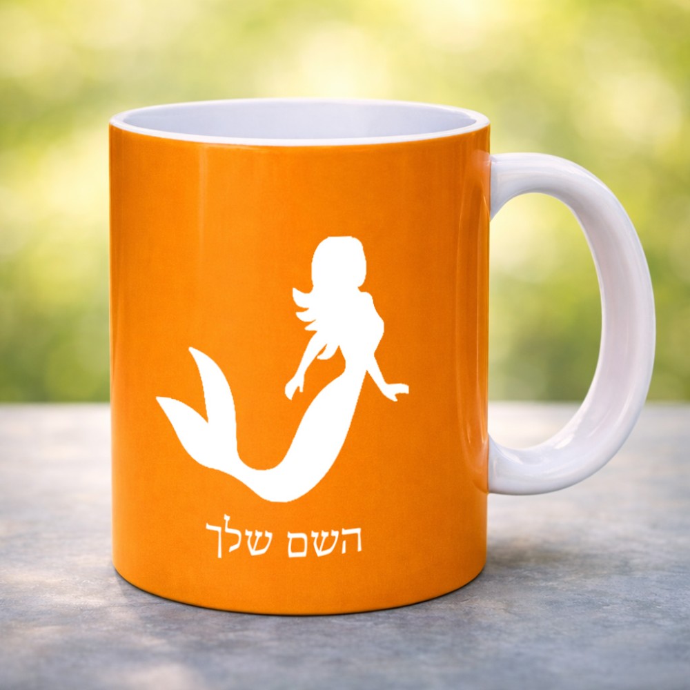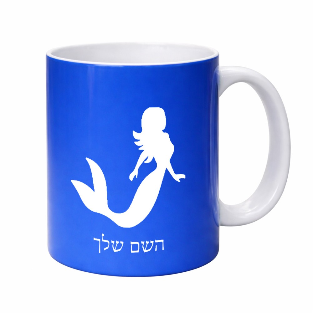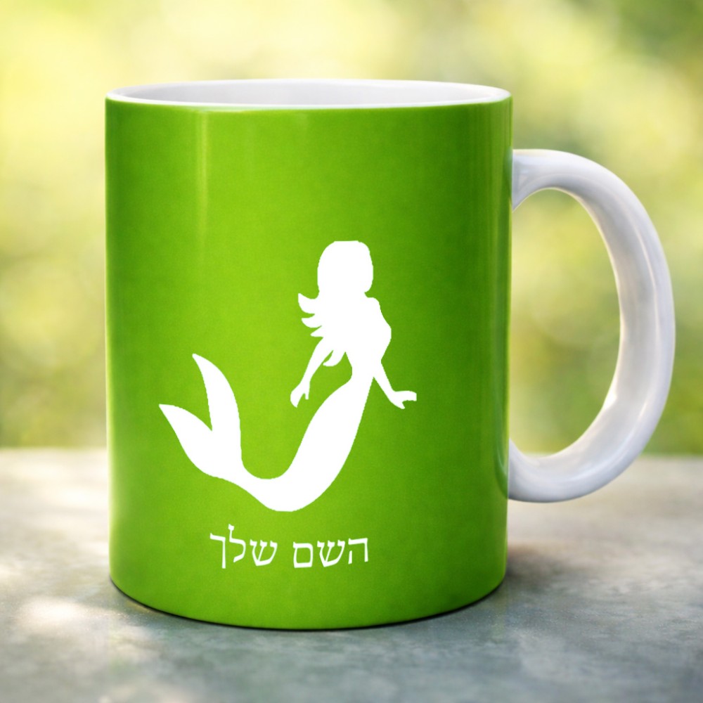 ספל תה \ קפה בעיצוב אישי עם השם שלך בעיצוב בתולת ים - אישה גדול הספל 325 מ"ל, הספל בעלת ידית לאחיזה יציבה. את השם המבוקש ניתן לציין בהזמנה, אם לא צויין אנחנו ניצור קשר לבירור.