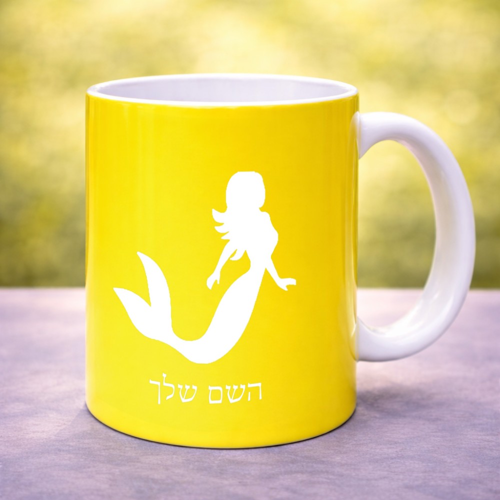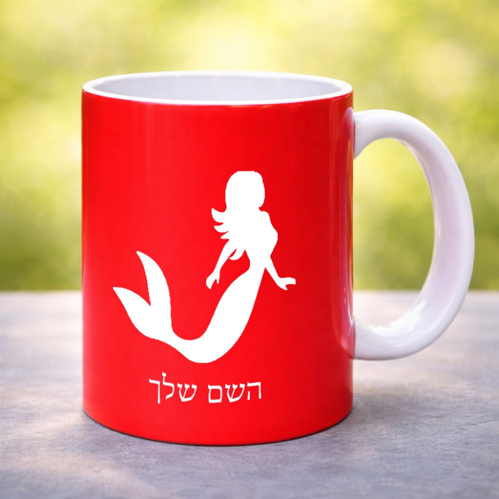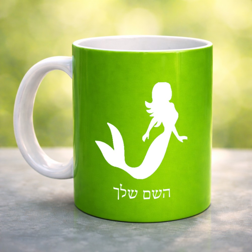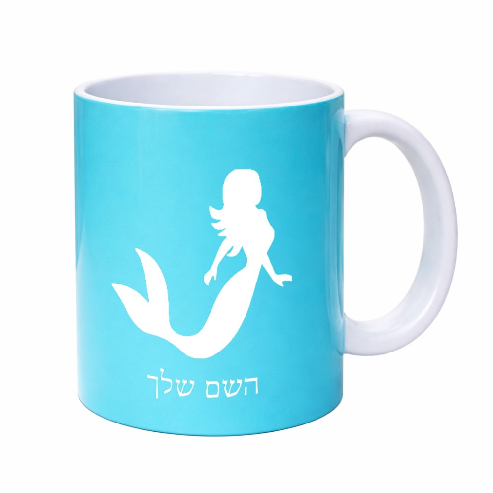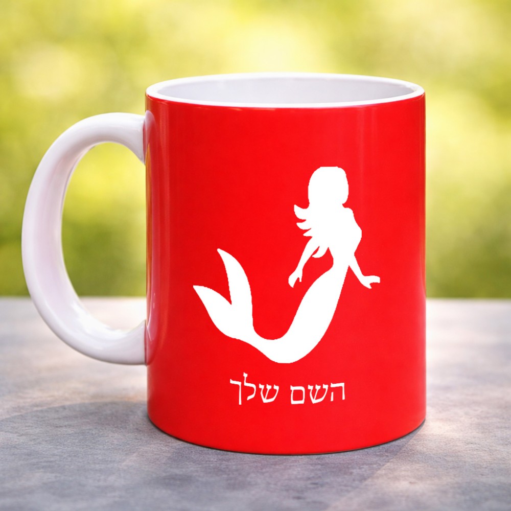ספל תה \ קפה בעיצוב אישי עם השם שלך בעיצוב בתולת ים - אישה גדול הספל 325 מ"ל, הספל בעלת ידית לאחיזה יציבה. את השם המבוקש ניתן לציין בהזמנה, אם לא צויין אנחנו ניצור קשר לבירור.