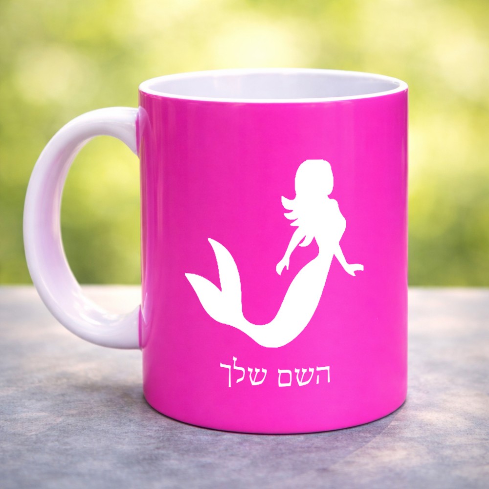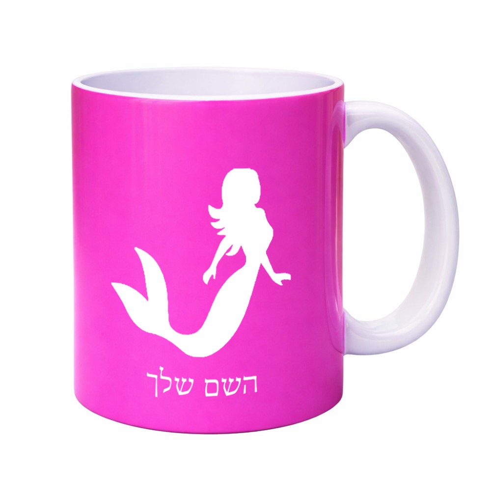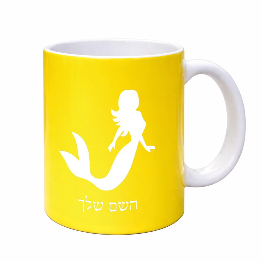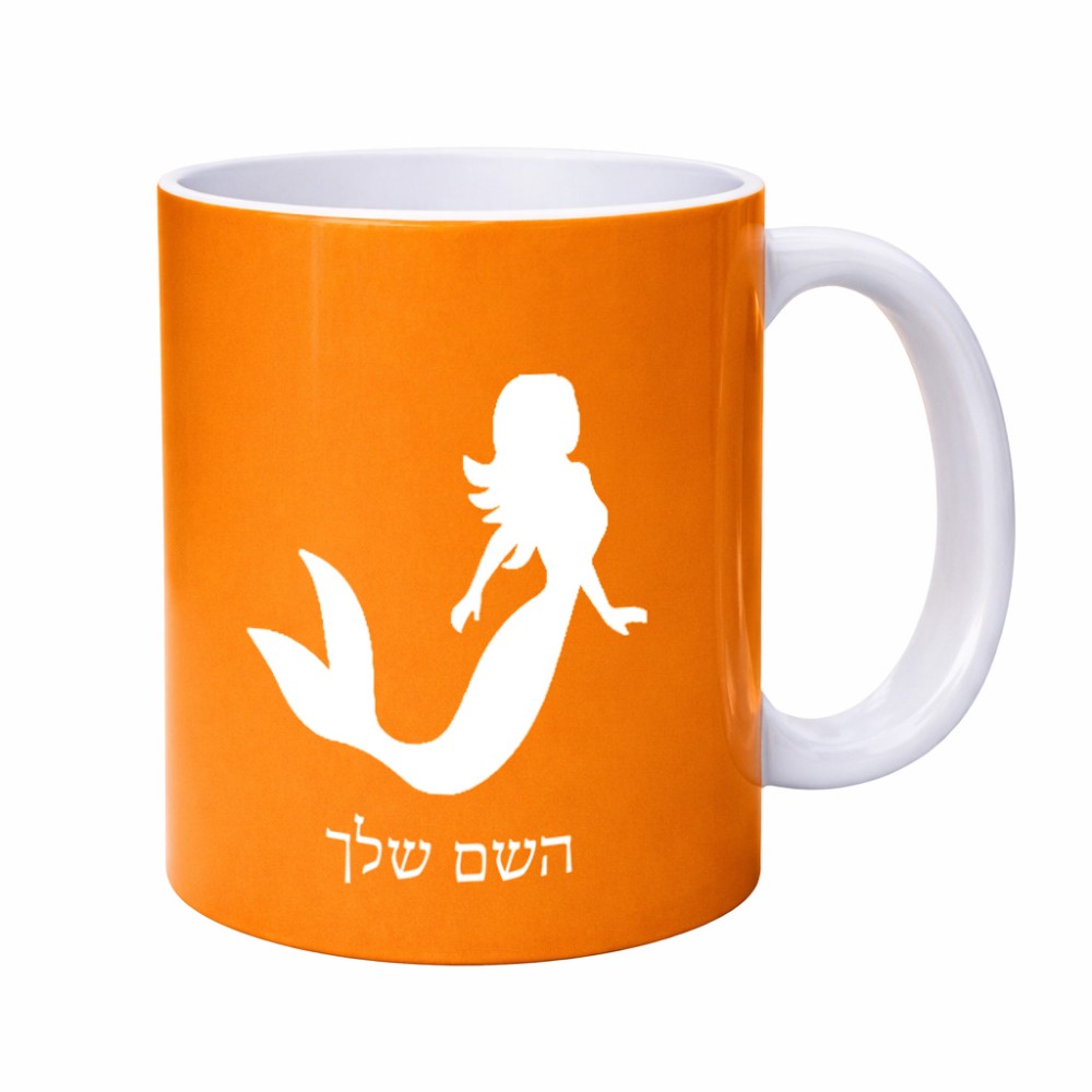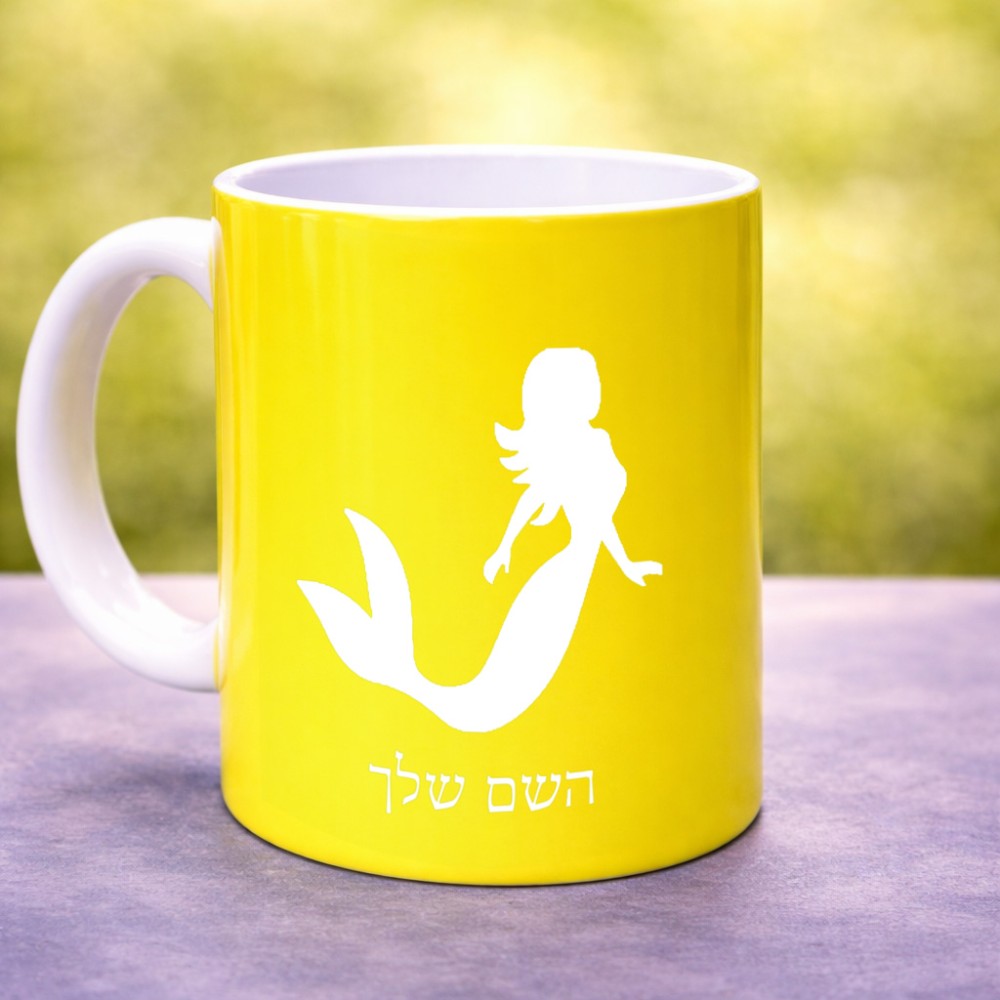 ספל תה \ קפה בעיצוב אישי עם השם שלך בעיצוב בתולת ים - אישה גדול הספל 325 מ"ל, הספל בעלת ידית לאחיזה יציבה. את השם המבוקש ניתן לציין בהזמנה, אם לא צויין אנחנו ניצור קשר לבירור.