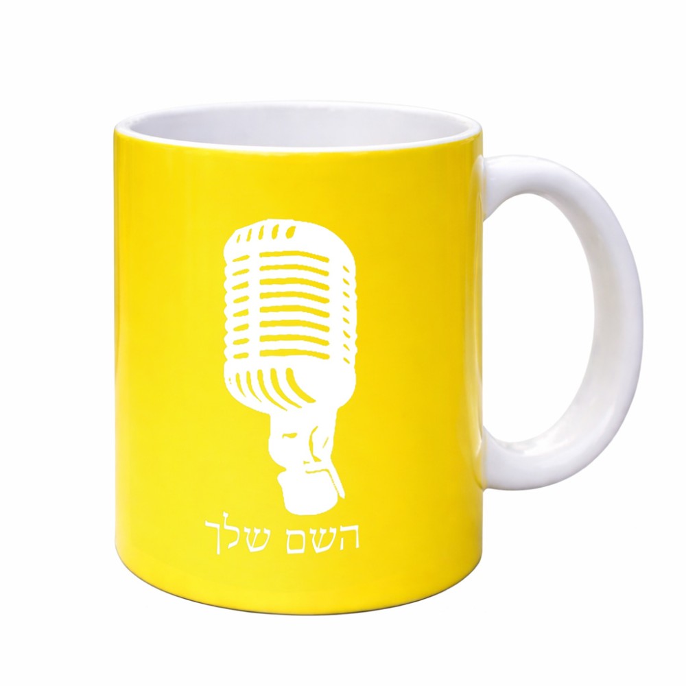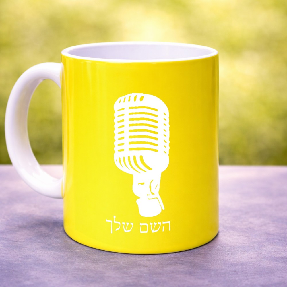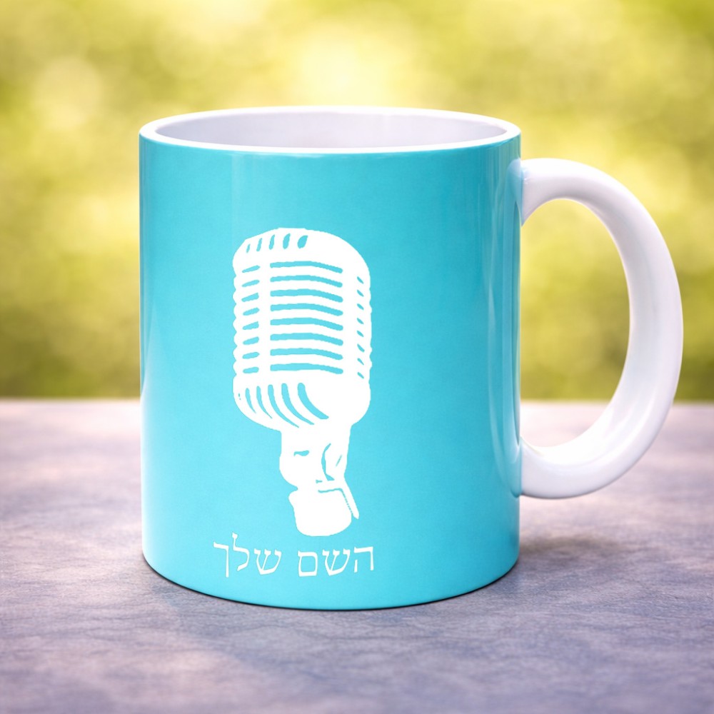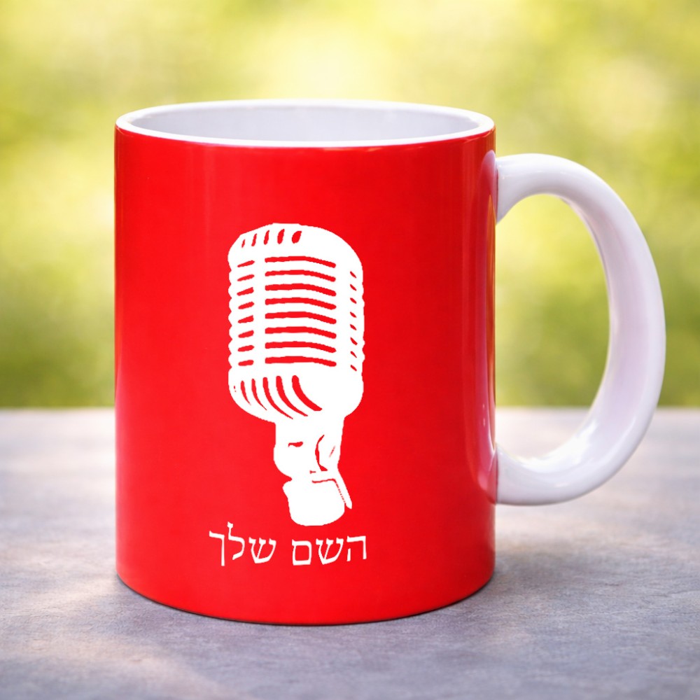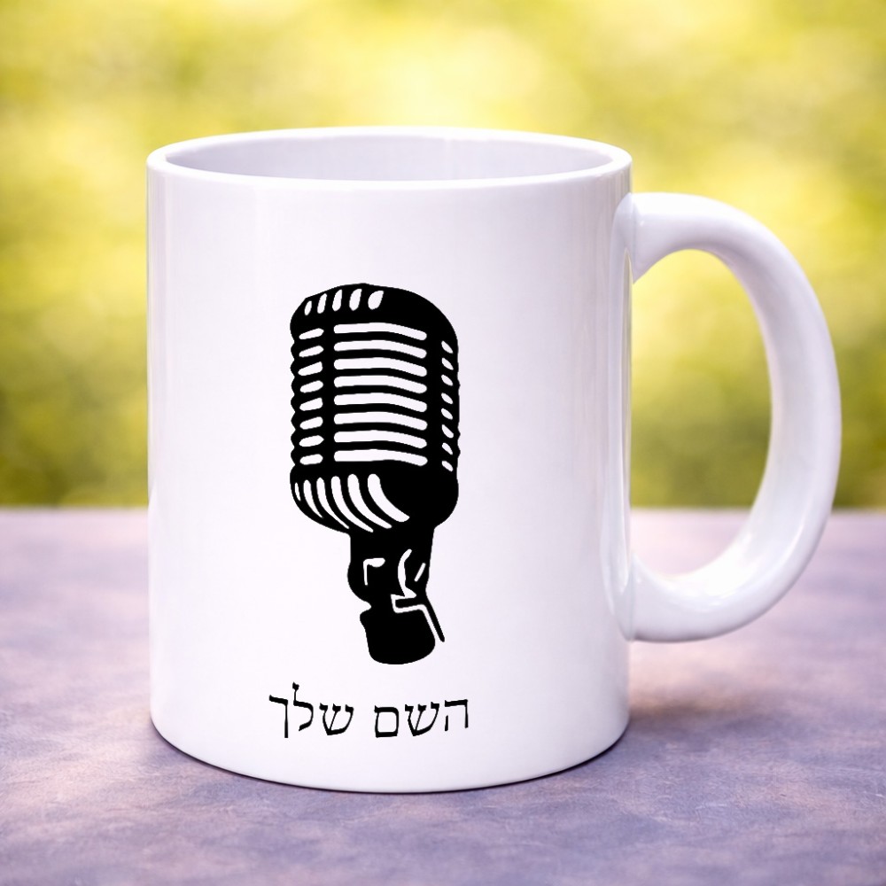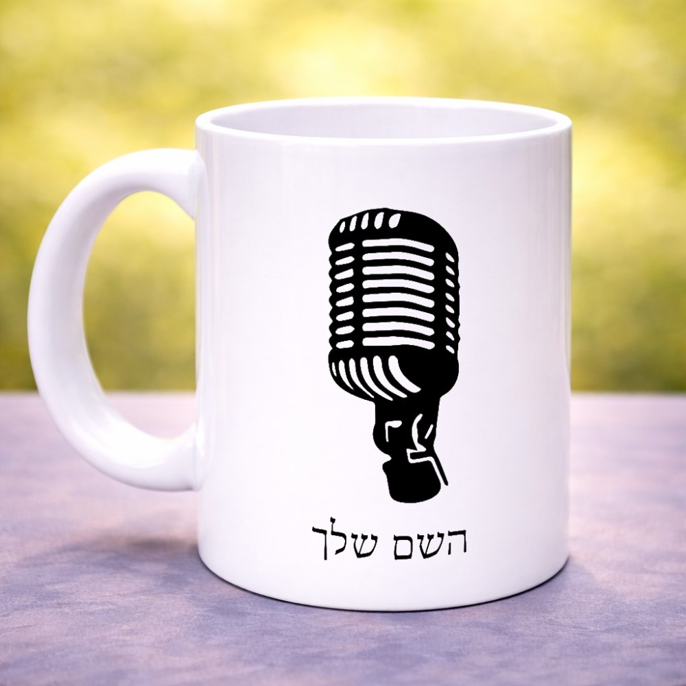 ספל תה \ קפה בעיצוב אישי עם השם שלך בעיצוב מיקרופון גדול הספל 325 מ"ל, הספל בעלת ידית לאחיזה יציבה. את השם המבוקש ניתן לציין בהזמנה, אם לא צויין אנחנו ניצור קשר לבירור.