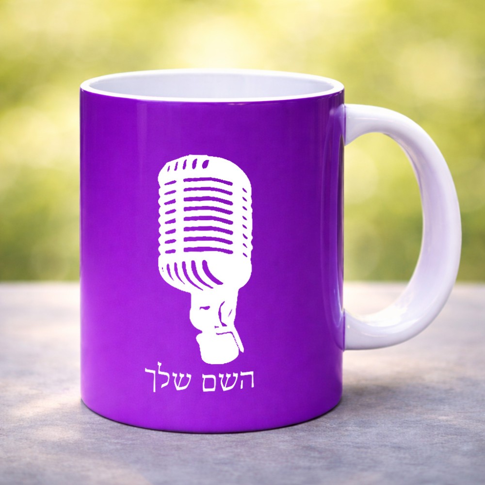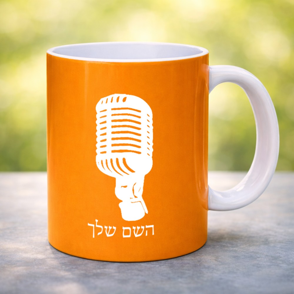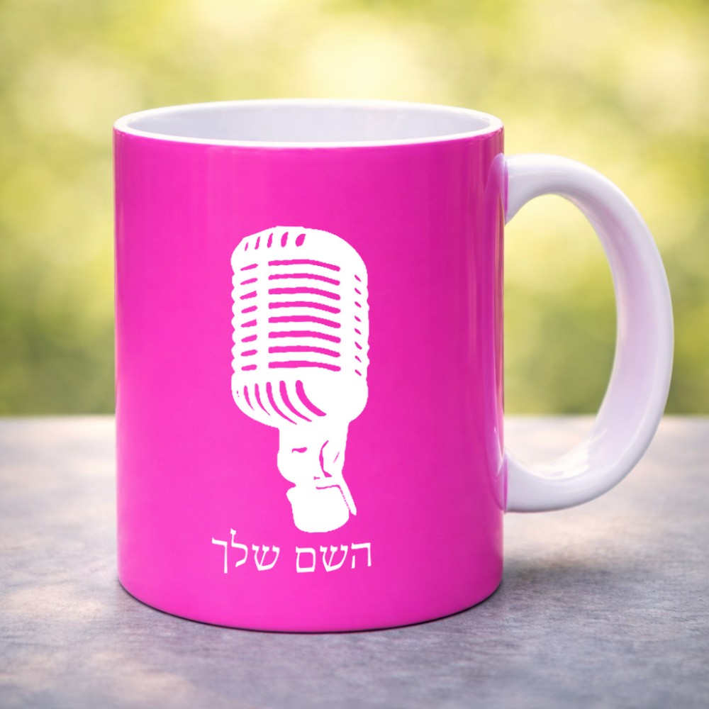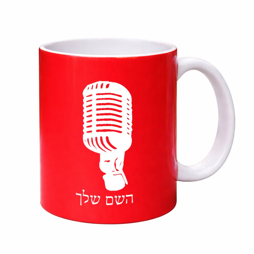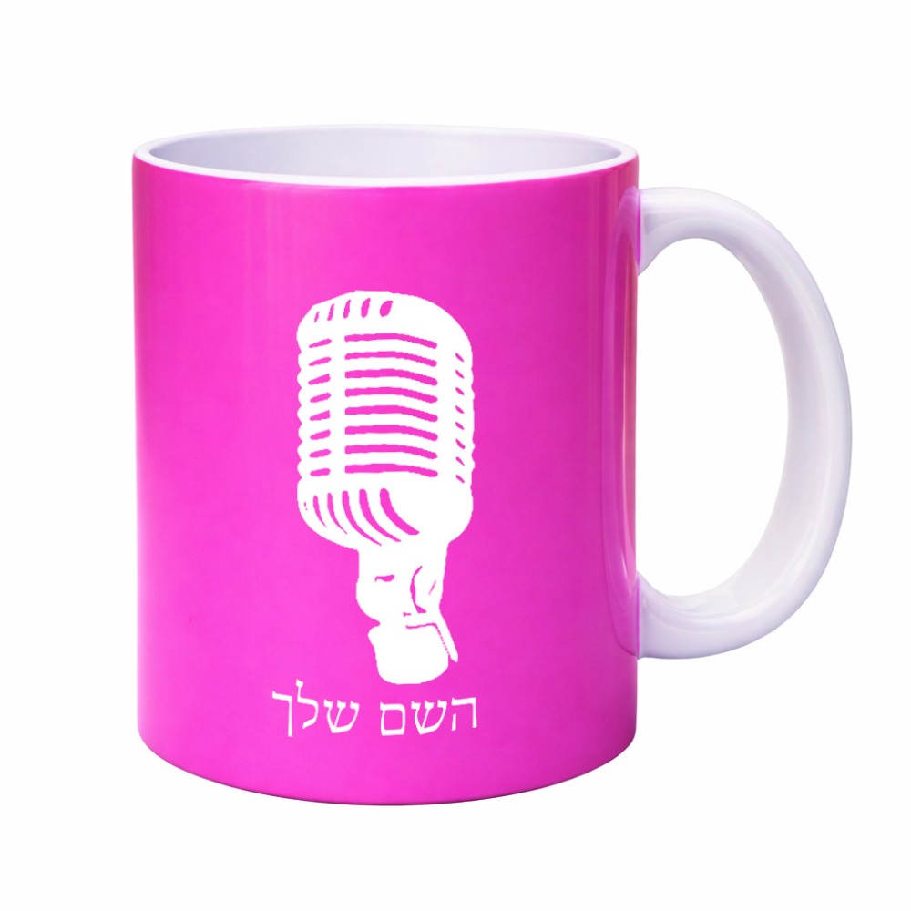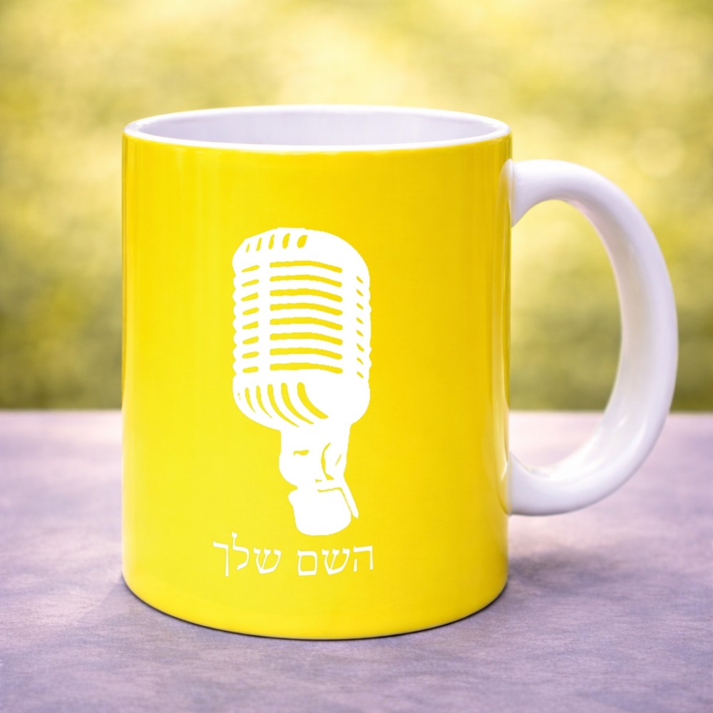 ספל תה \ קפה בעיצוב אישי עם השם שלך בעיצוב מיקרופון גדול הספל 325 מ"ל, הספל בעלת ידית לאחיזה יציבה. את השם המבוקש ניתן לציין בהזמנה, אם לא צויין אנחנו ניצור קשר לבירור.