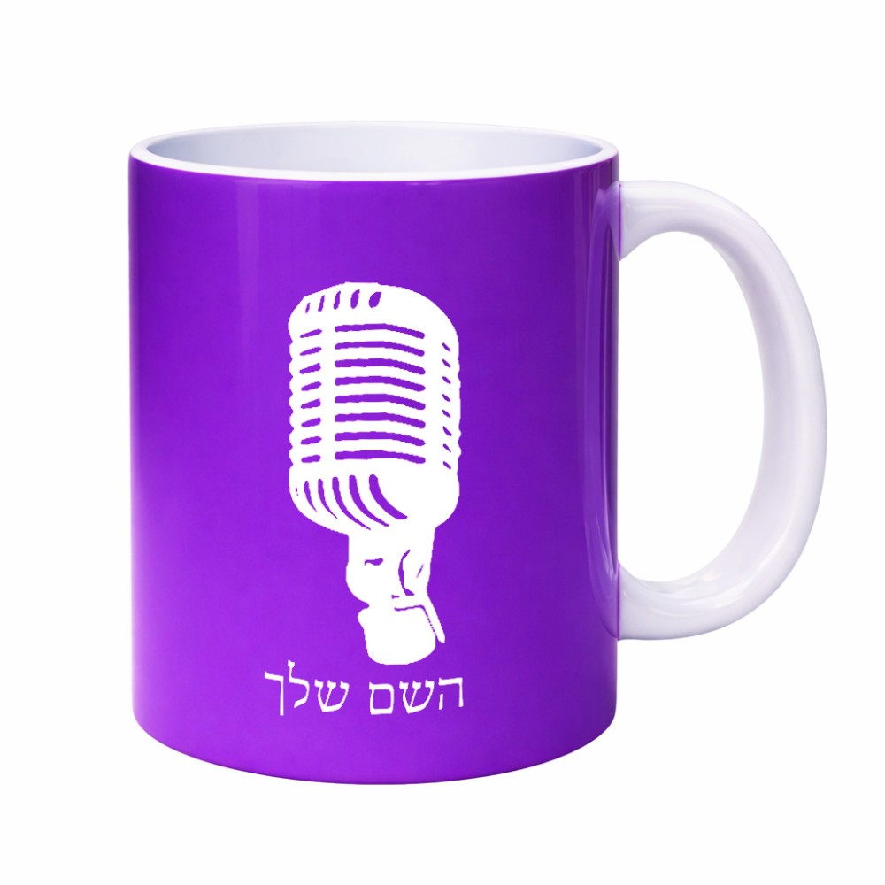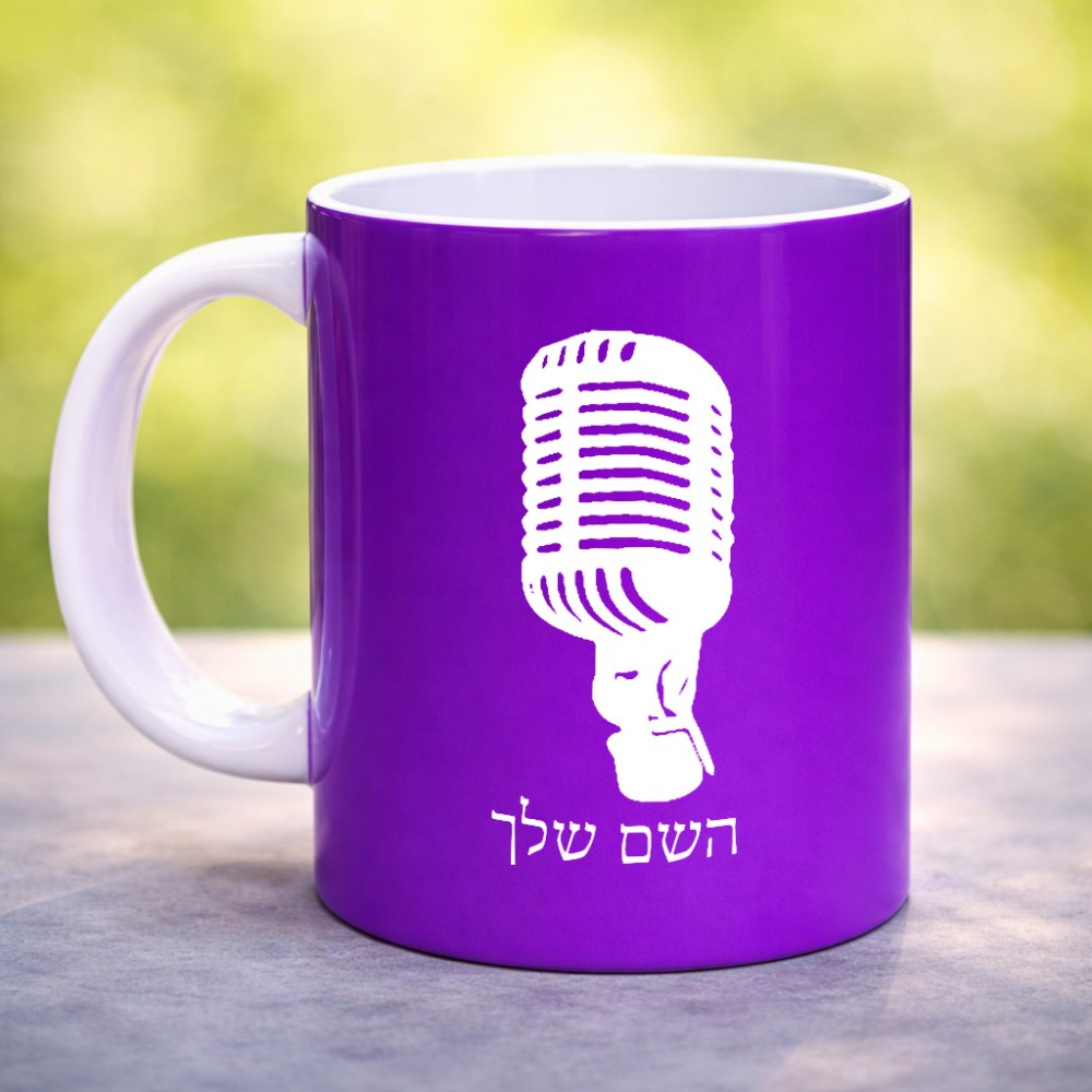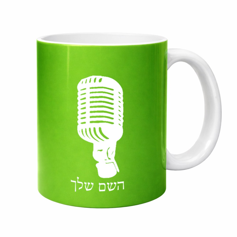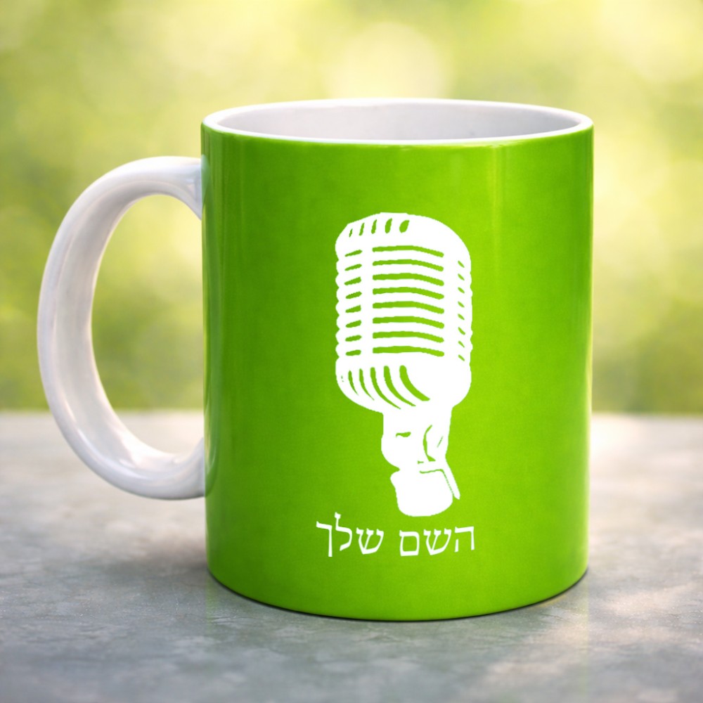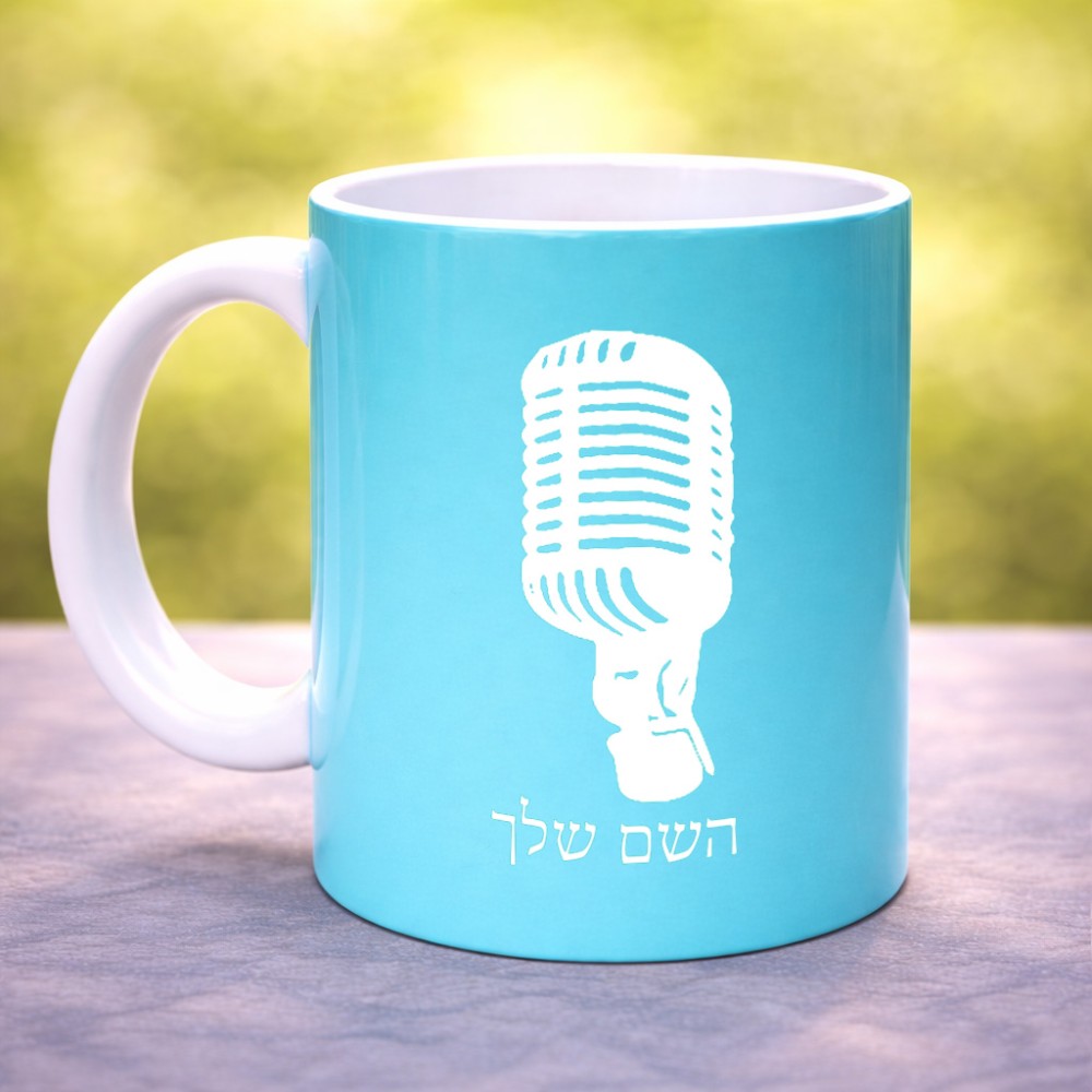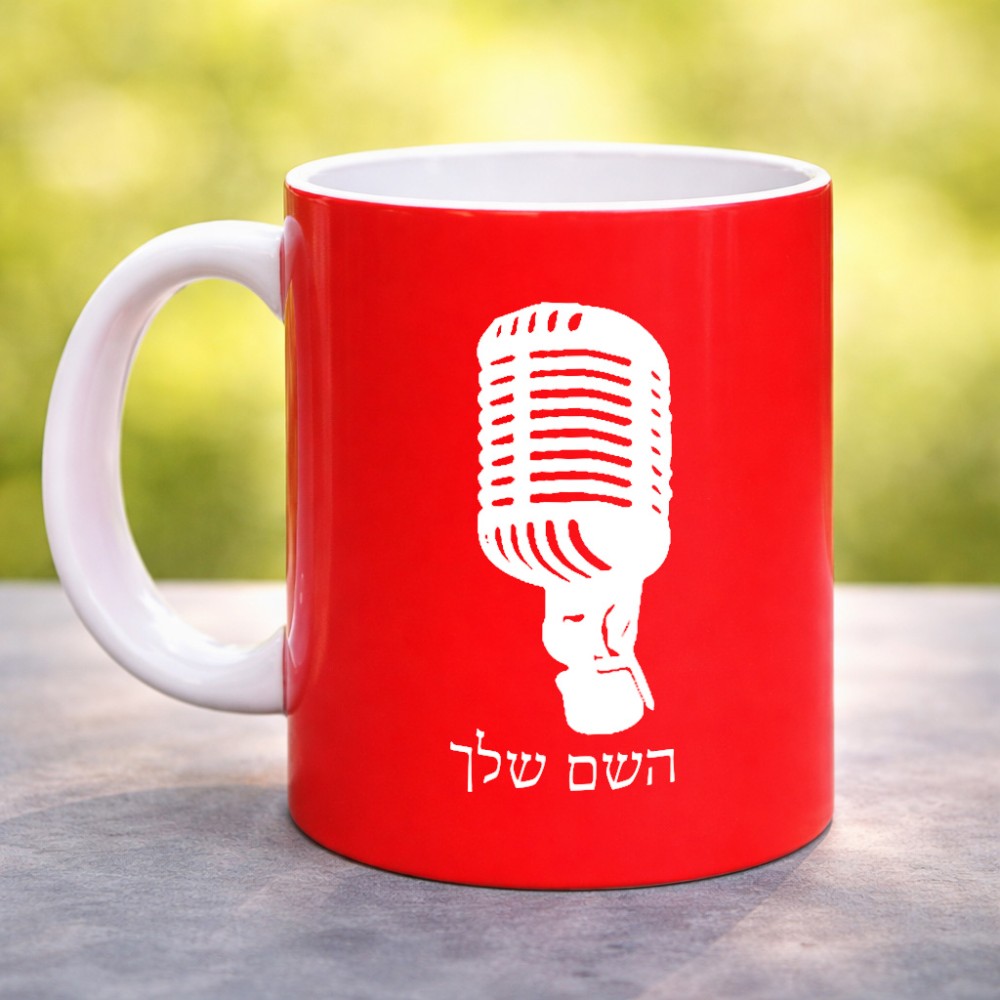 ספל תה \ קפה בעיצוב אישי עם השם שלך בעיצוב מיקרופון גדול הספל 325 מ"ל, הספל בעלת ידית לאחיזה יציבה. את השם המבוקש ניתן לציין בהזמנה, אם לא צויין אנחנו ניצור קשר לבירור.