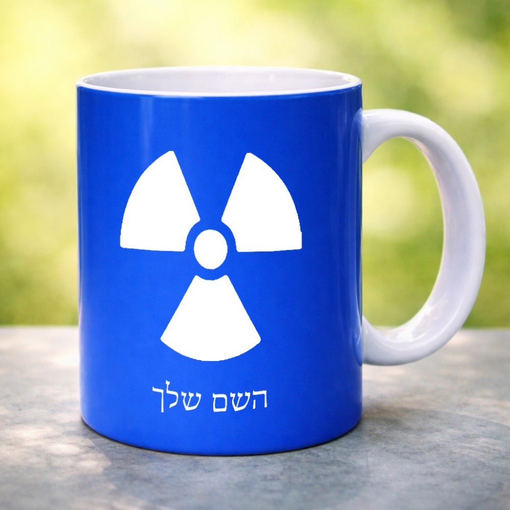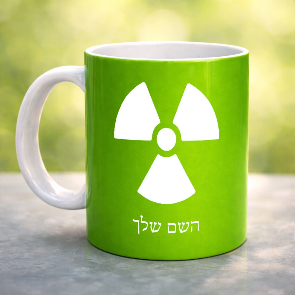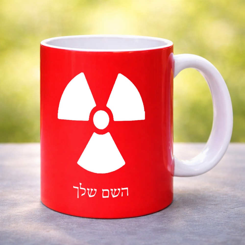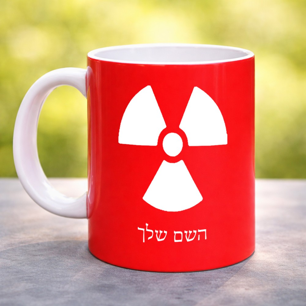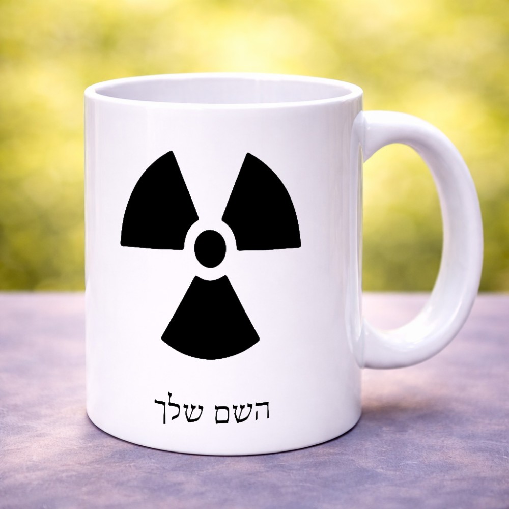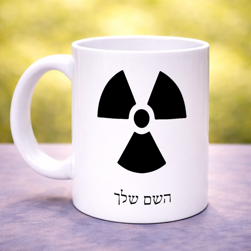 ספל תה \ קפה בעיצוב אישי עם השם שלך בעיצוב פצצת אטום גרעינית גודל הספל 325 מ"ל
