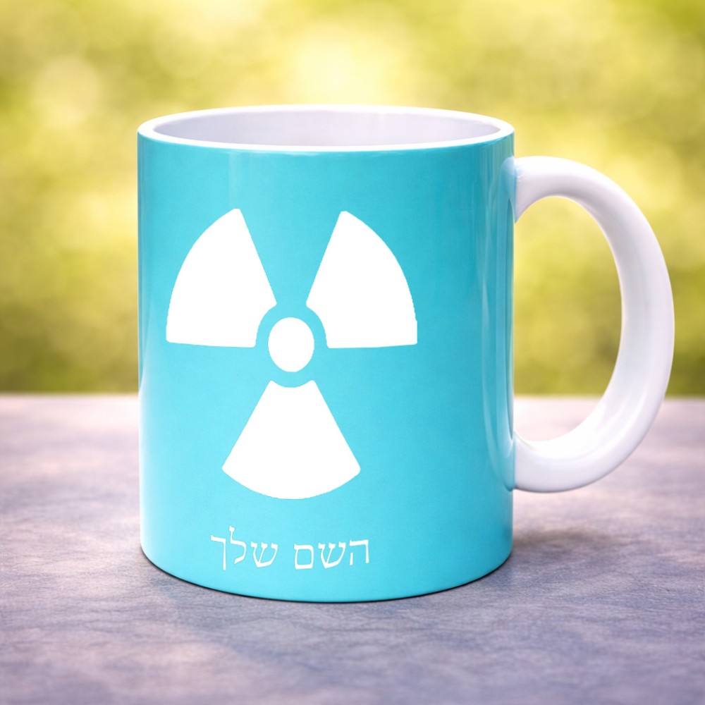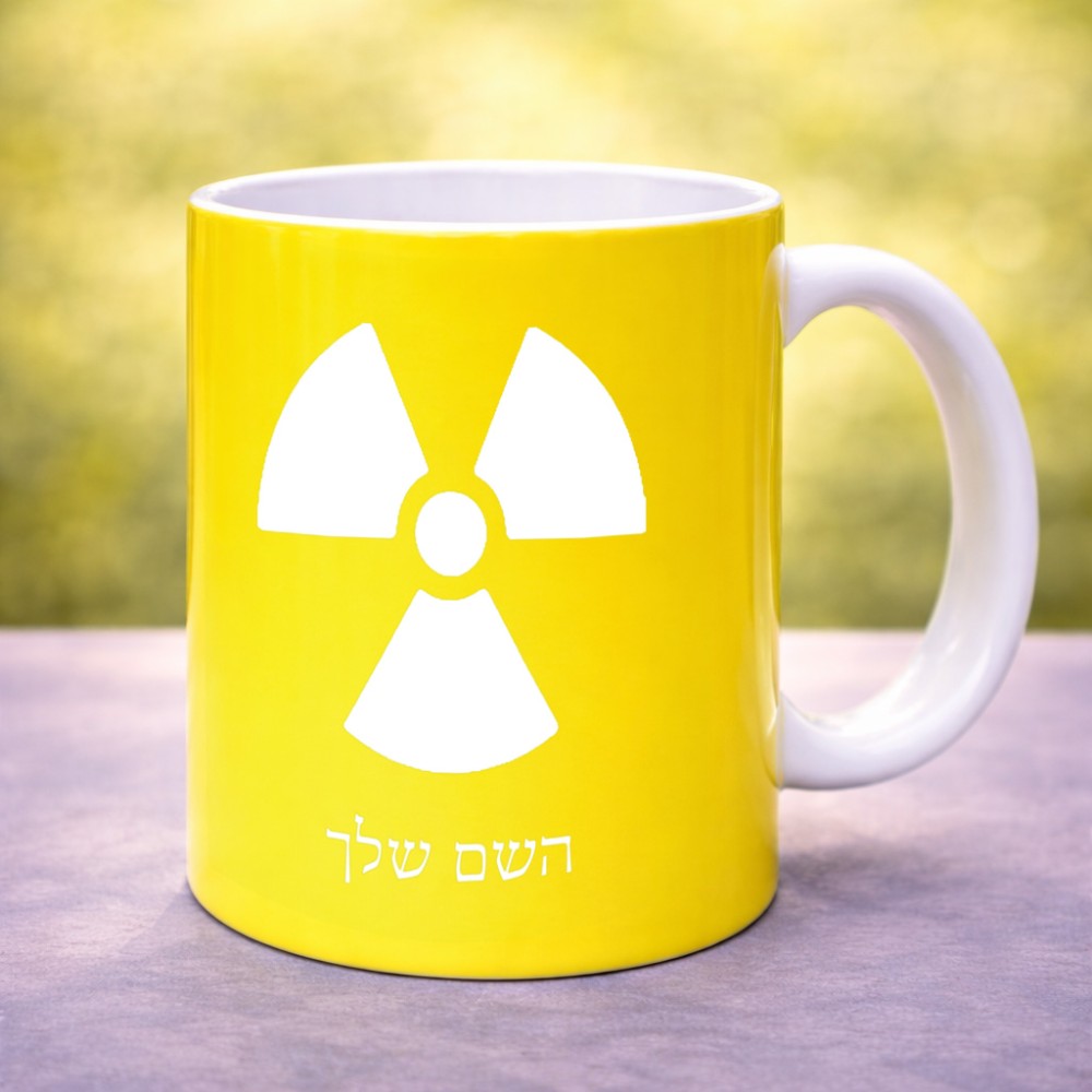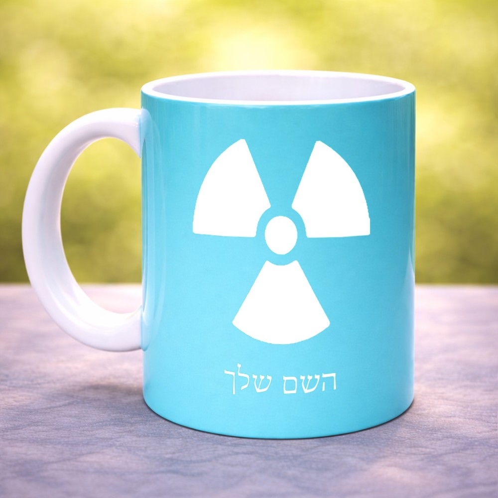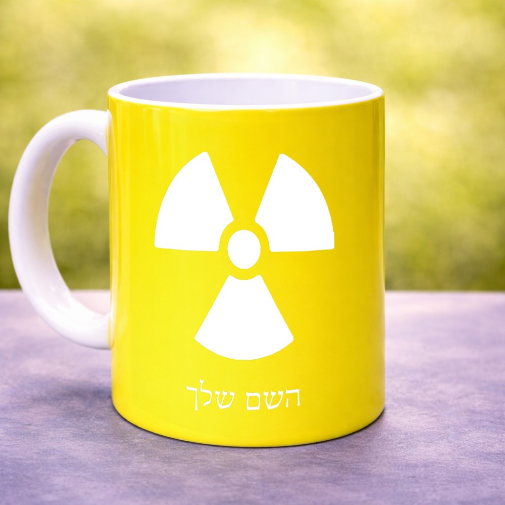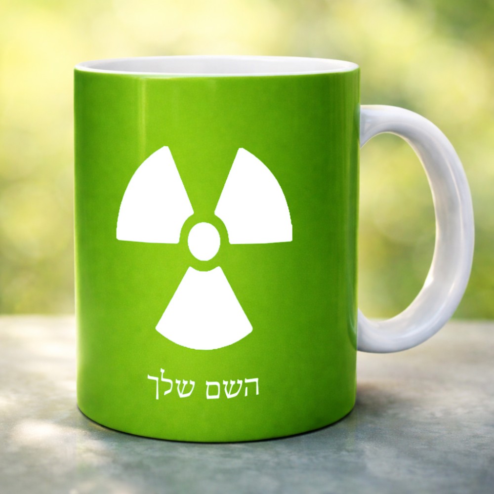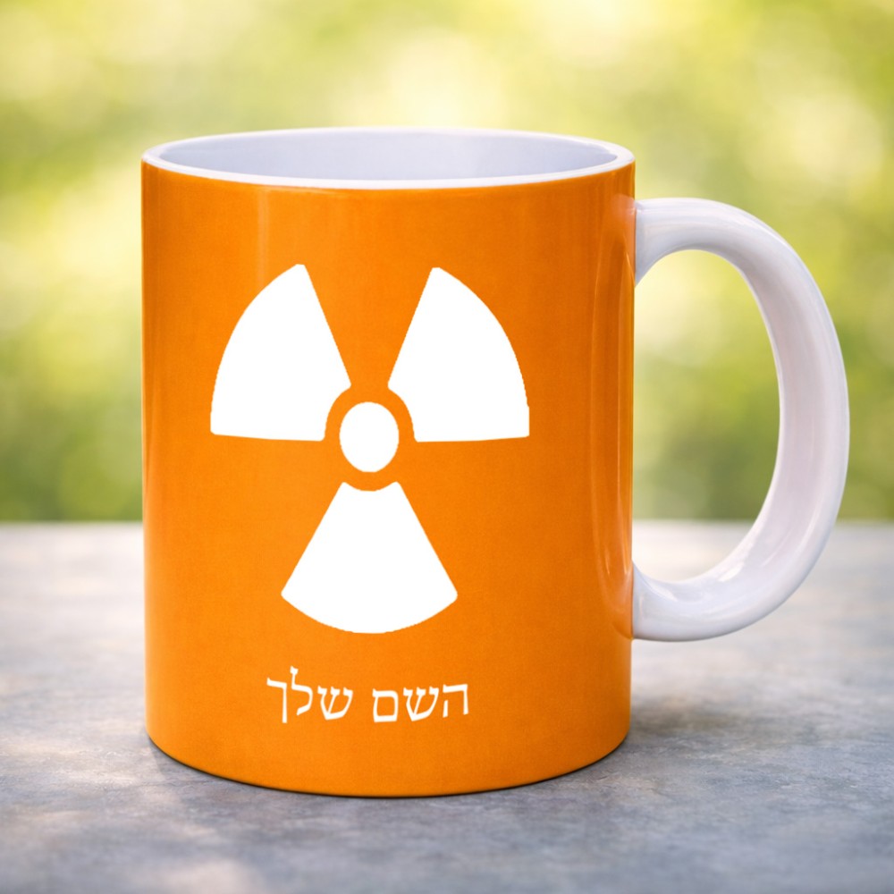 ספל תה \ קפה בעיצוב אישי עם השם שלך בעיצוב פצצת אטום גרעינית גודל הספל 325 מ"ל