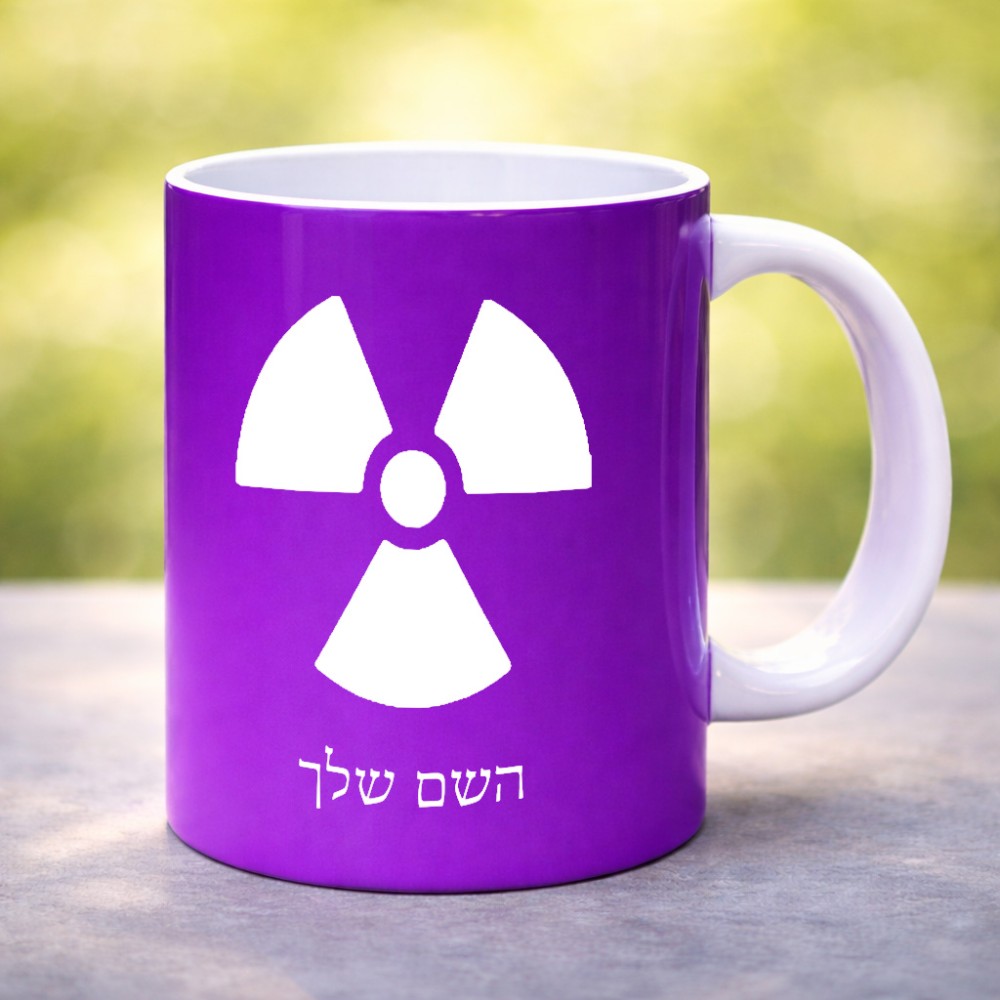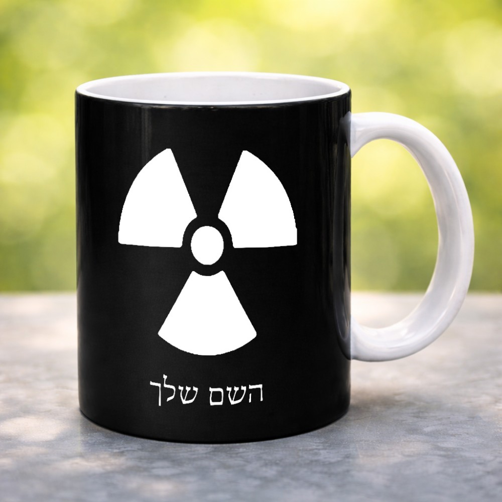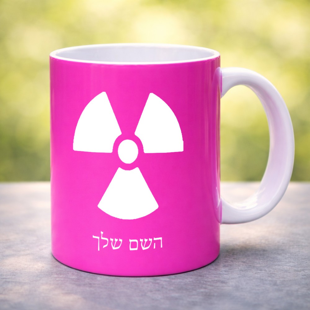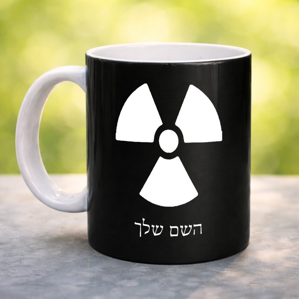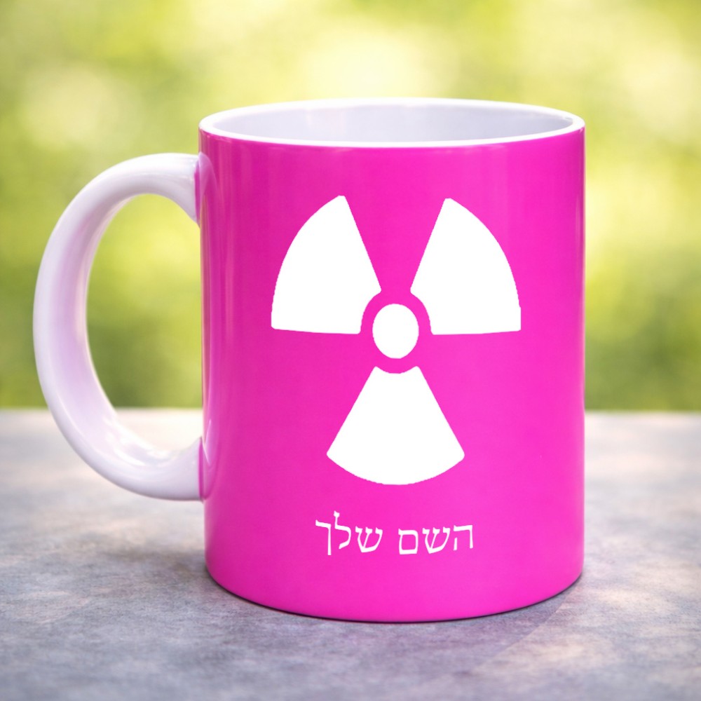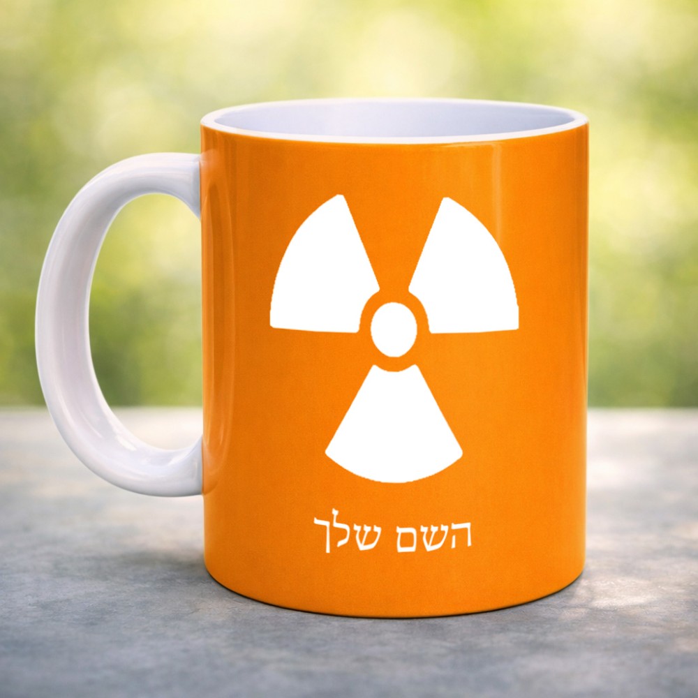 ספל תה \ קפה בעיצוב אישי עם השם שלך בעיצוב פצצת אטום גרעינית גודל הספל 325 מ"ל