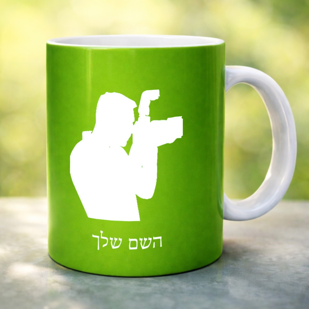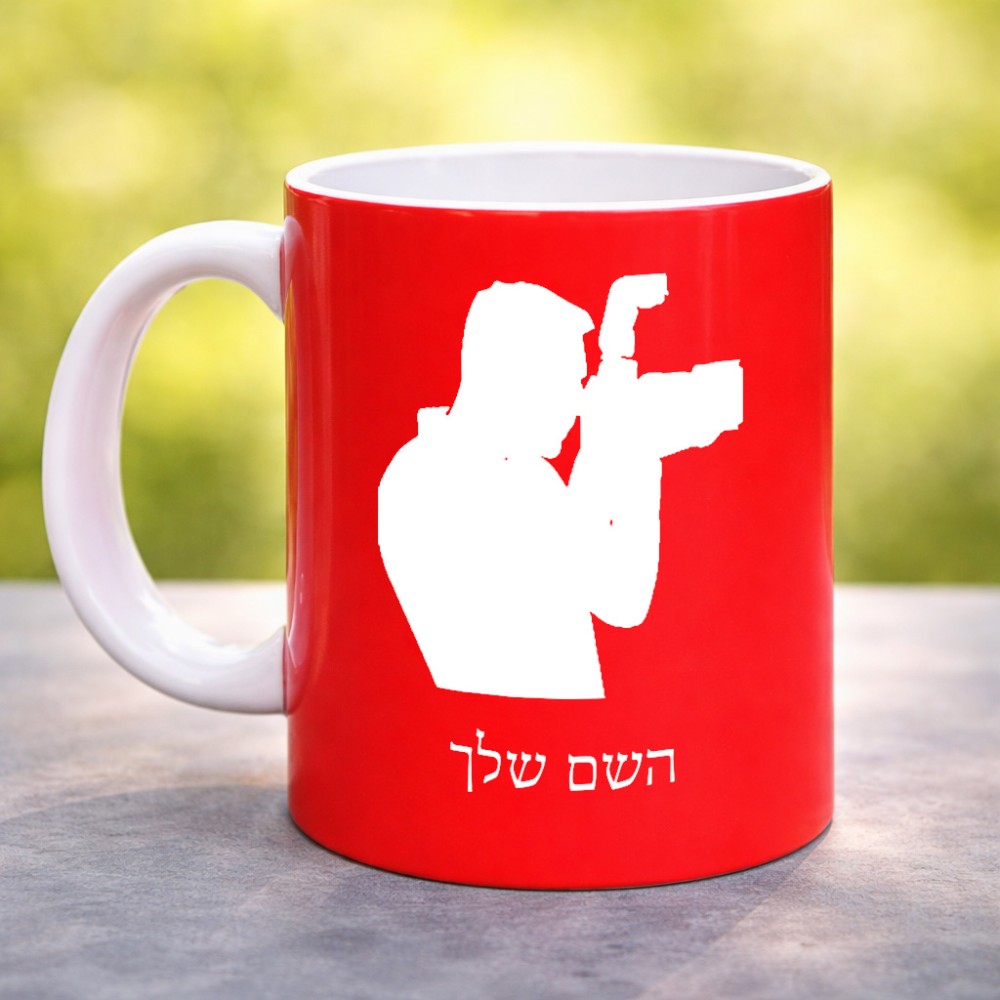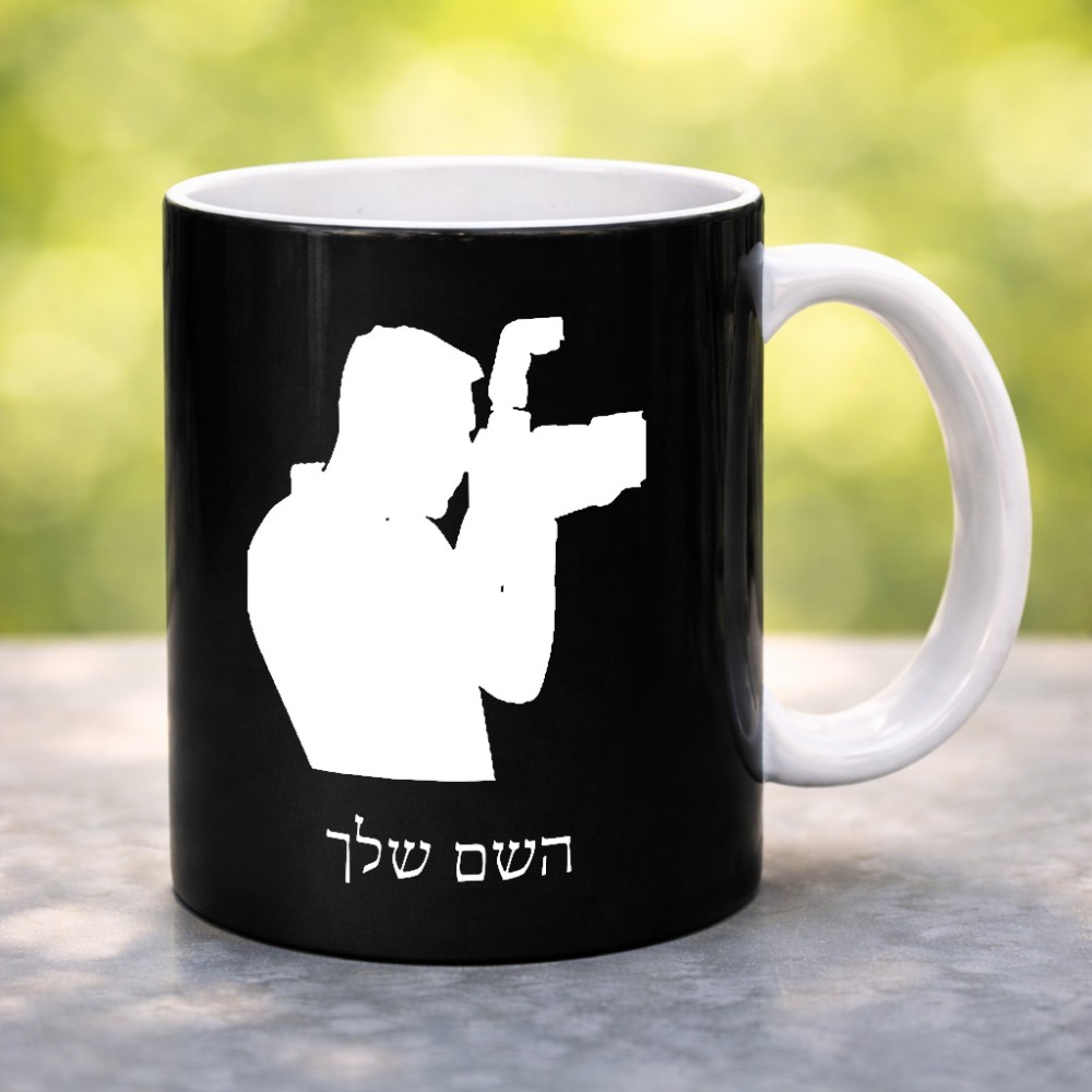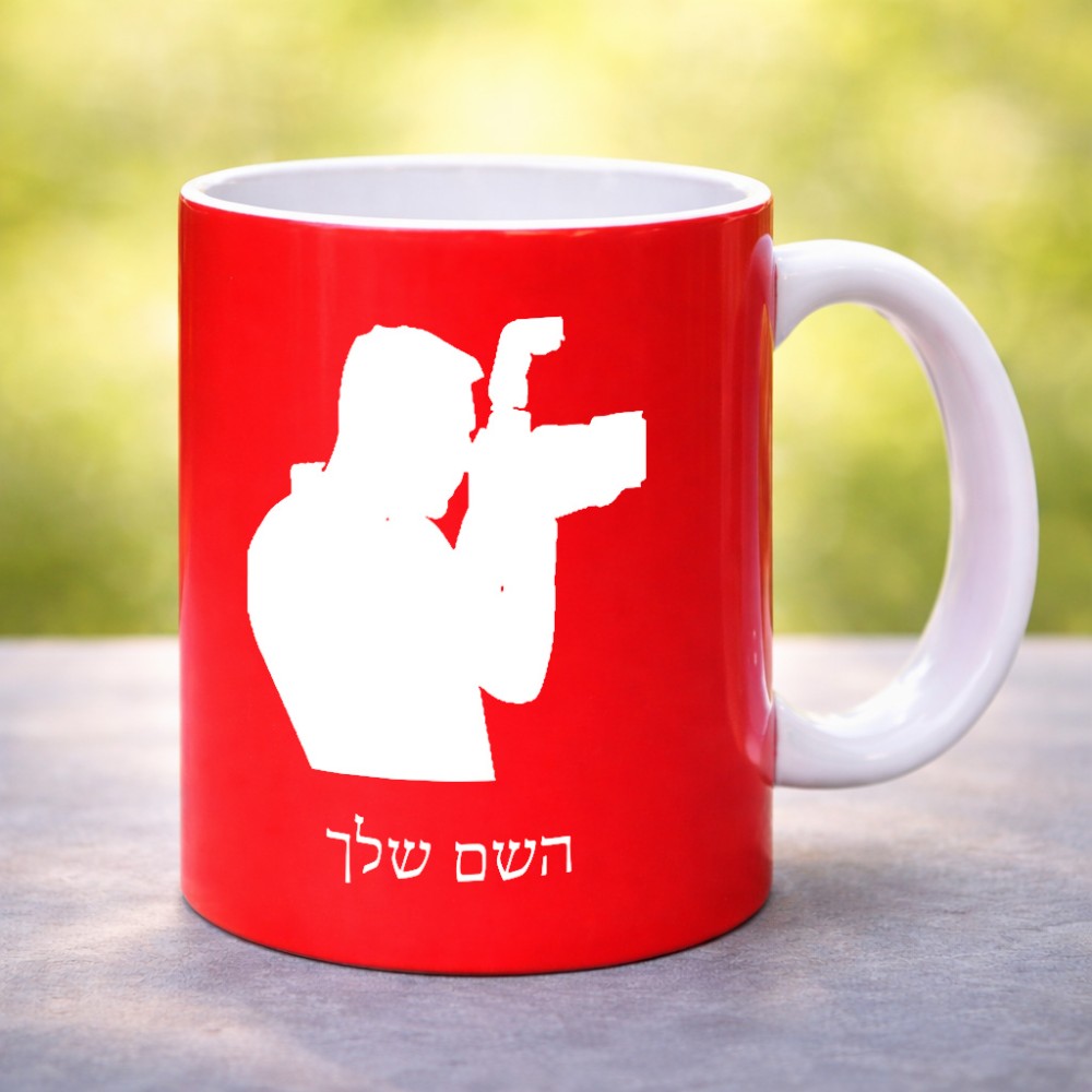 ספל תה \ קפה בעיצוב אישי עם השם שלך בעיצוב צלם - גברים גדול הספל 325 מ"ל, הספל בעלת ידית לאחיזה יציבה. את השם המבוקש ניתן לציין בהזמנה, אם לא צויין אנחנו ניצור קשר לבירור.
