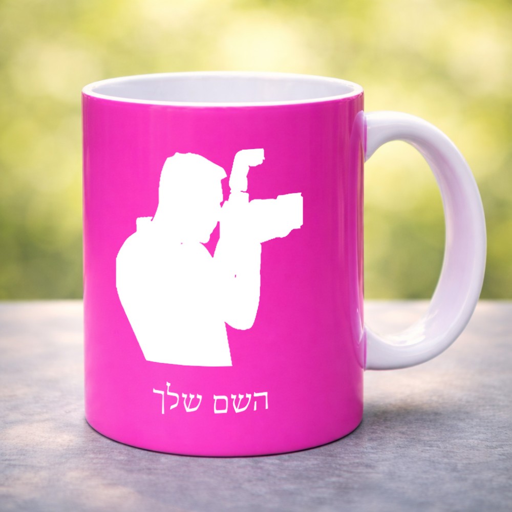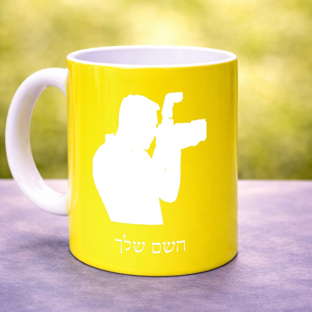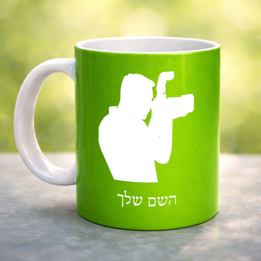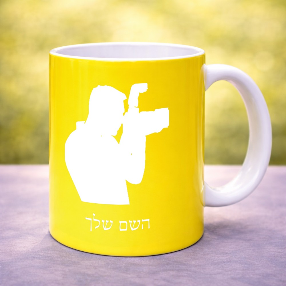 ספל תה \ קפה בעיצוב אישי עם השם שלך בעיצוב צלם - גברים גדול הספל 325 מ"ל, הספל בעלת ידית לאחיזה יציבה. את השם המבוקש ניתן לציין בהזמנה, אם לא צויין אנחנו ניצור קשר לבירור.