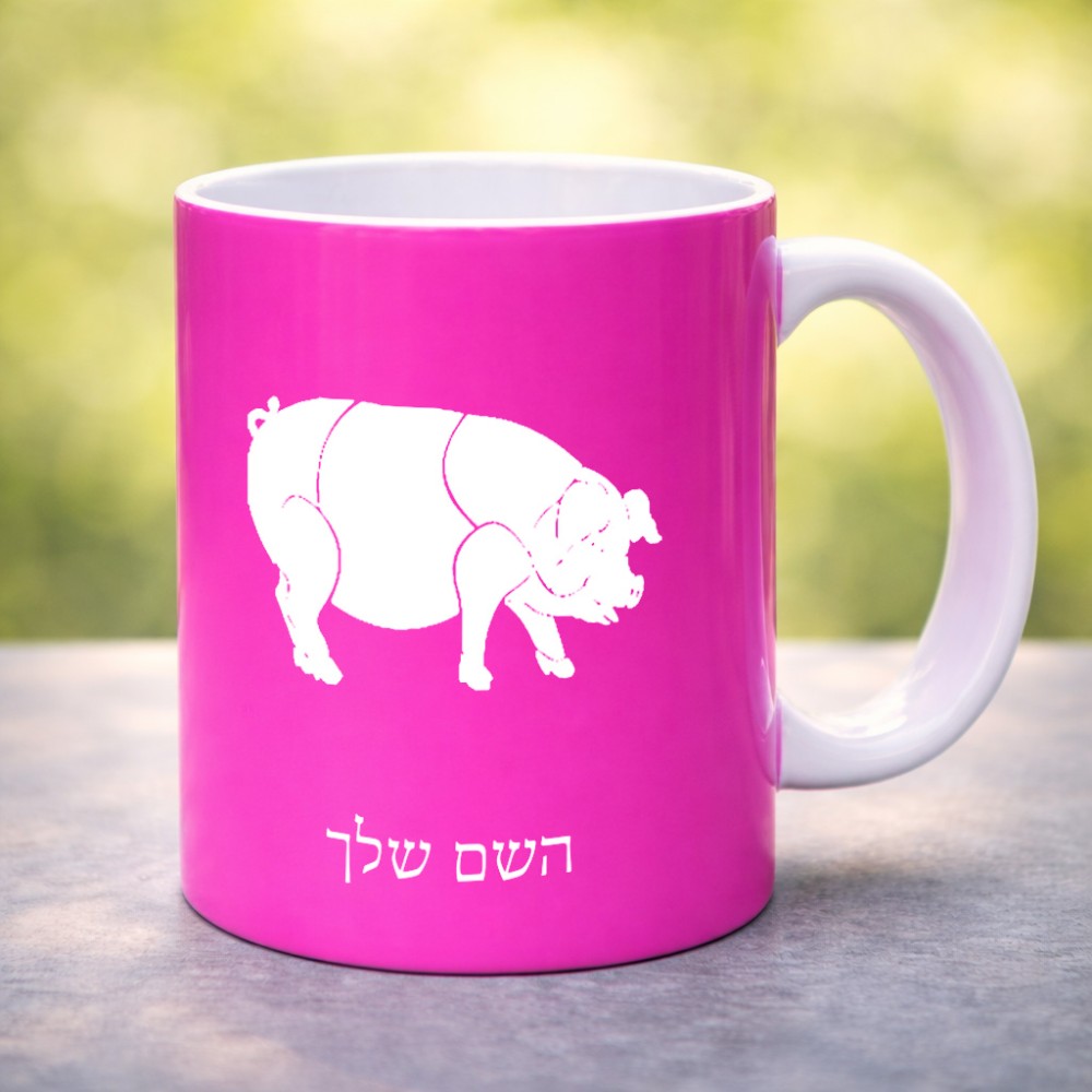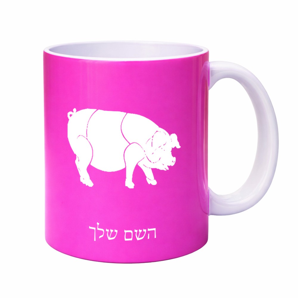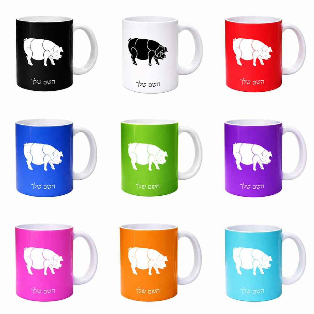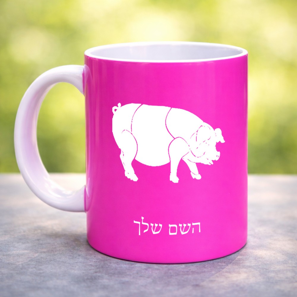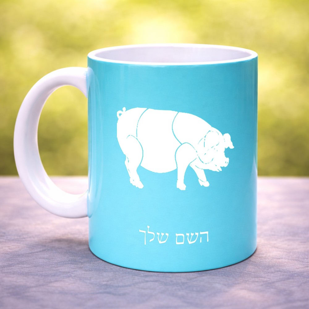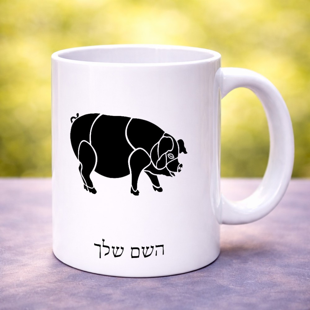 ספל תה \ קפה בעיצוב אישי עם השם שלך בעיצוב חזיר גדול הספל 325 מ"ל, הספל בעלת ידית לאחיזה יציבה. את השם המבוקש ניתן לציין בהזמנה, אם לא צויין אנחנו ניצור קשר לבירור.