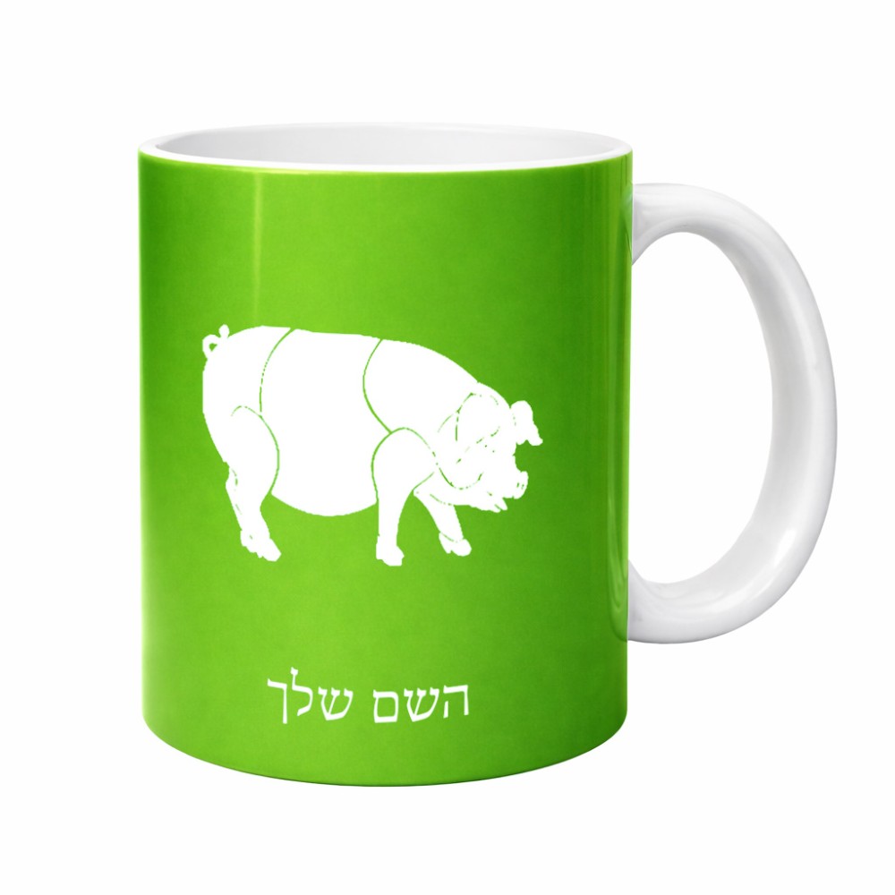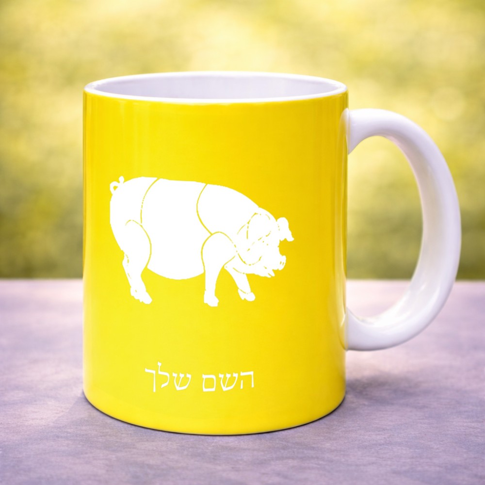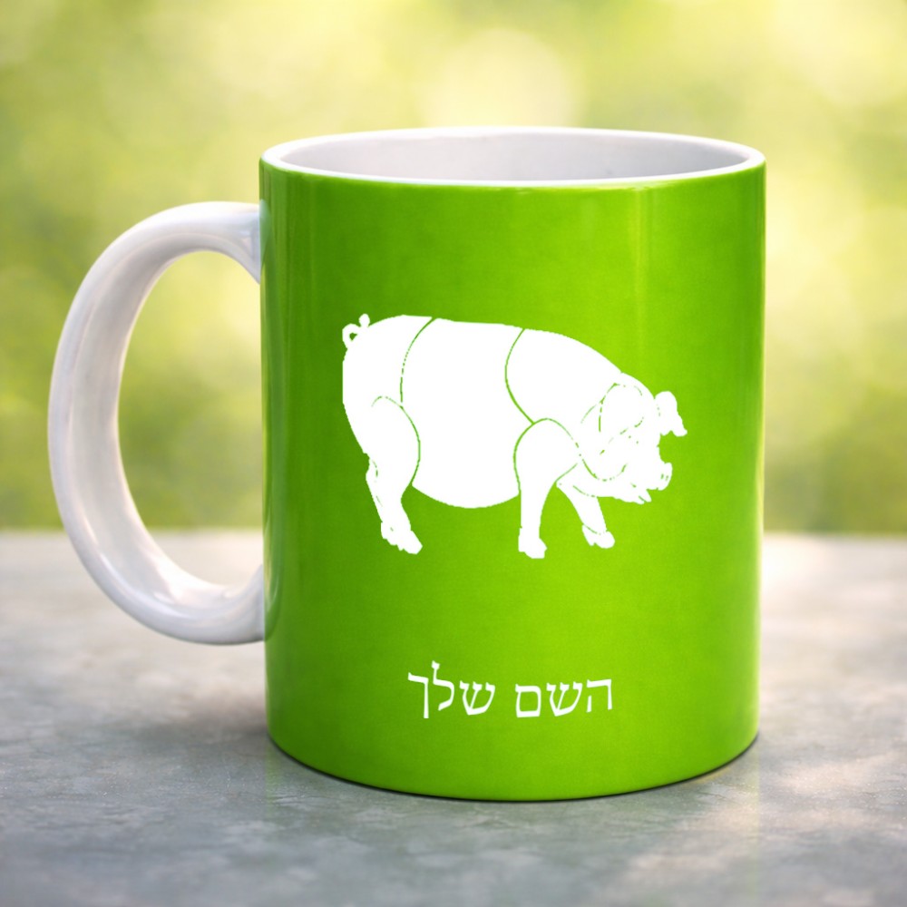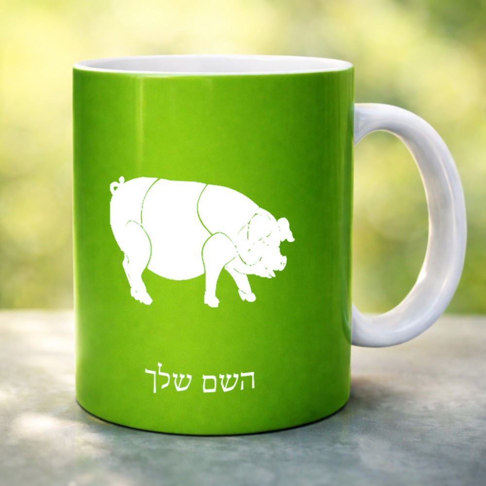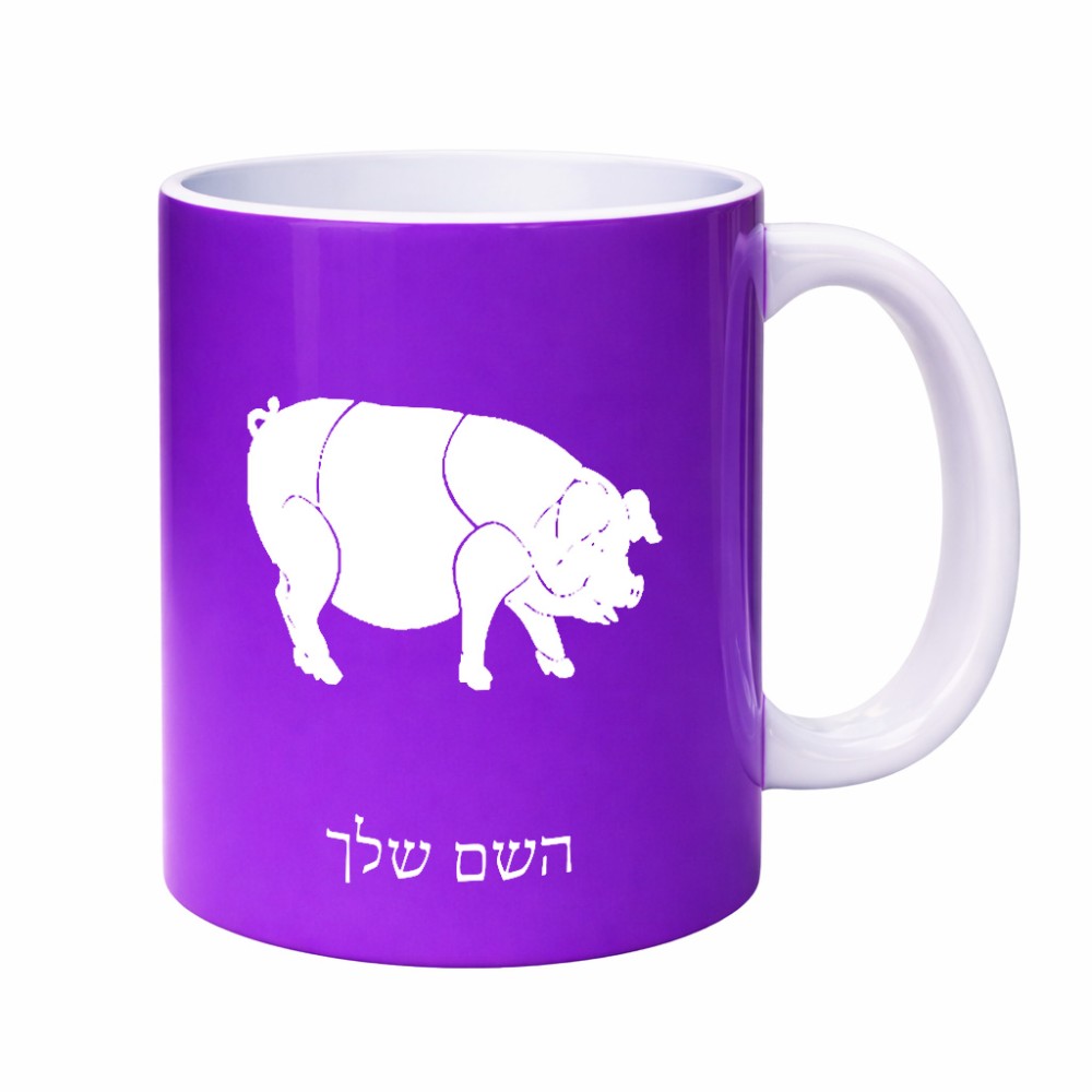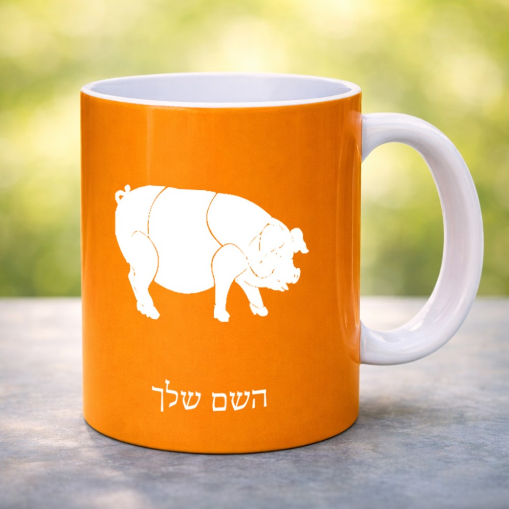 ספל תה \ קפה בעיצוב אישי עם השם שלך בעיצוב חזיר גדול הספל 325 מ"ל, הספל בעלת ידית לאחיזה יציבה. את השם המבוקש ניתן לציין בהזמנה, אם לא צויין אנחנו ניצור קשר לבירור.