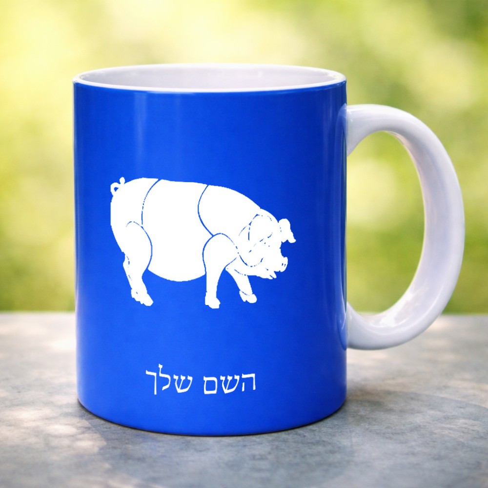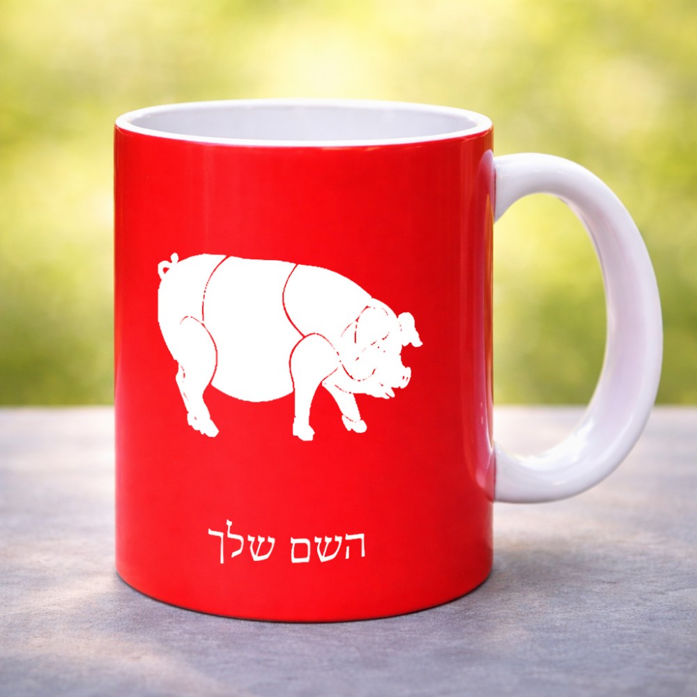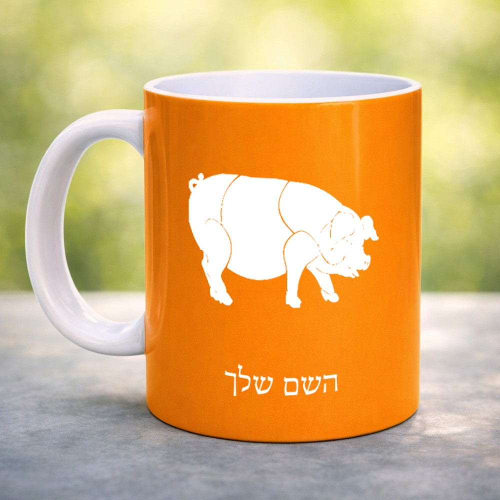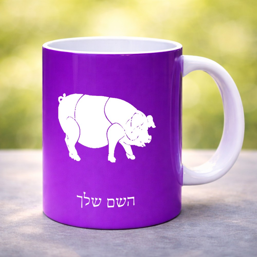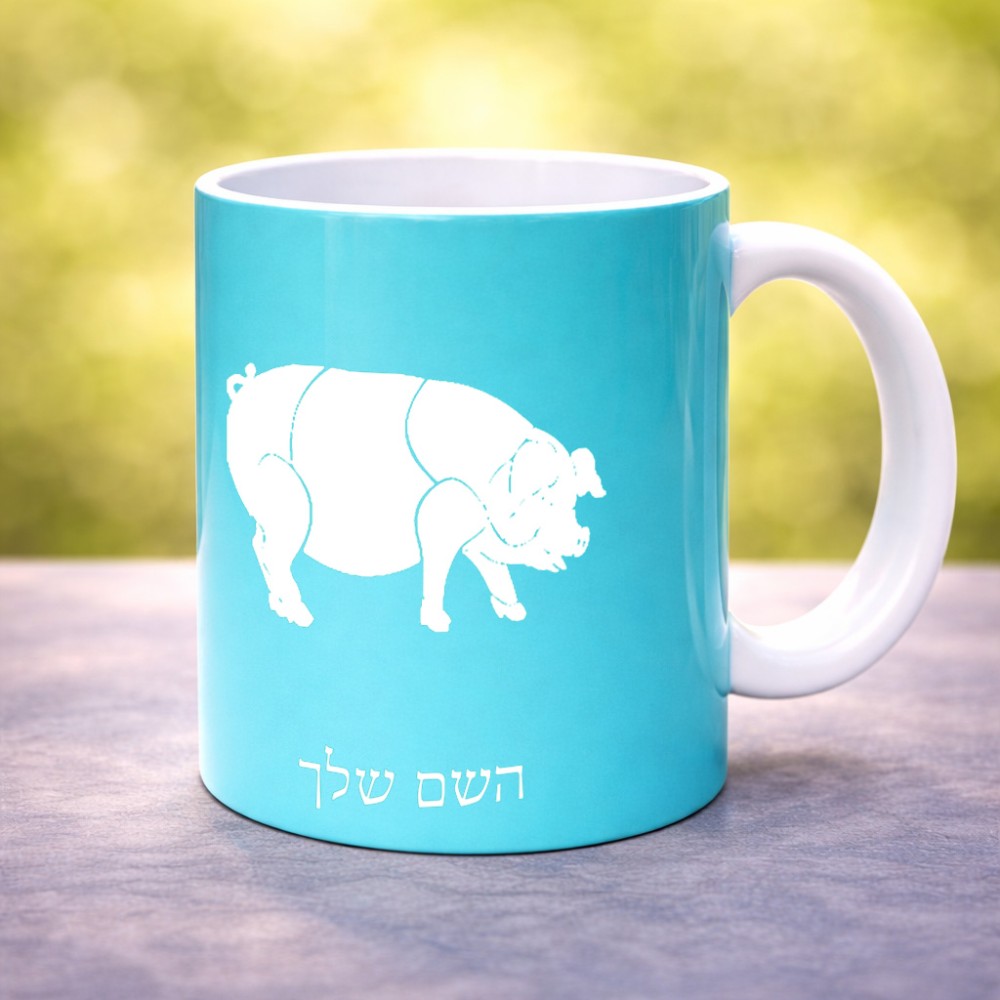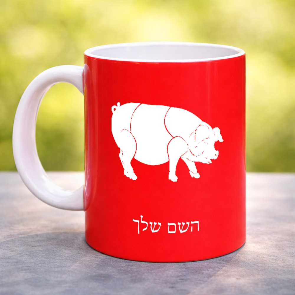 ספל תה \ קפה בעיצוב אישי עם השם שלך בעיצוב חזיר גדול הספל 325 מ"ל, הספל בעלת ידית לאחיזה יציבה. את השם המבוקש ניתן לציין בהזמנה, אם לא צויין אנחנו ניצור קשר לבירור.