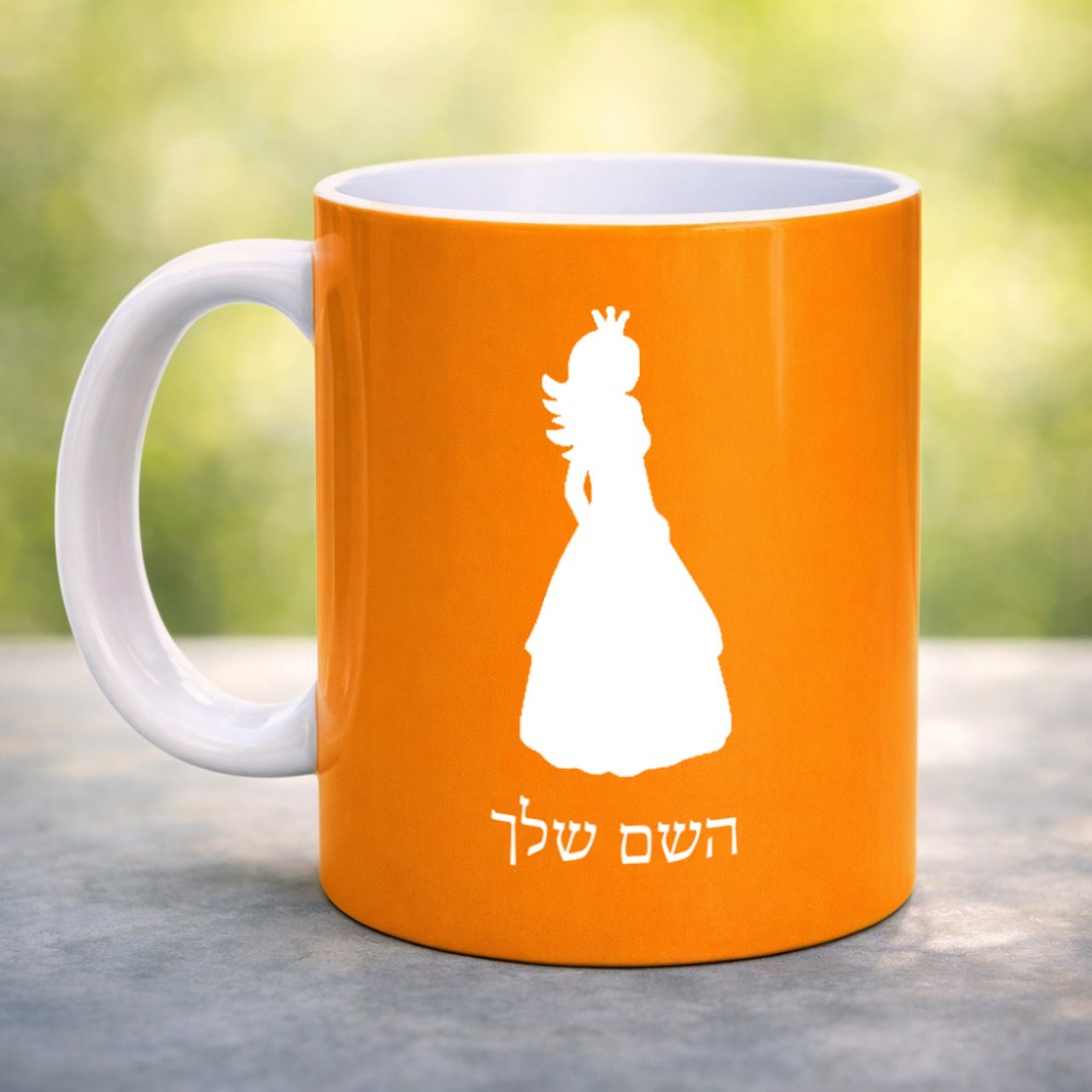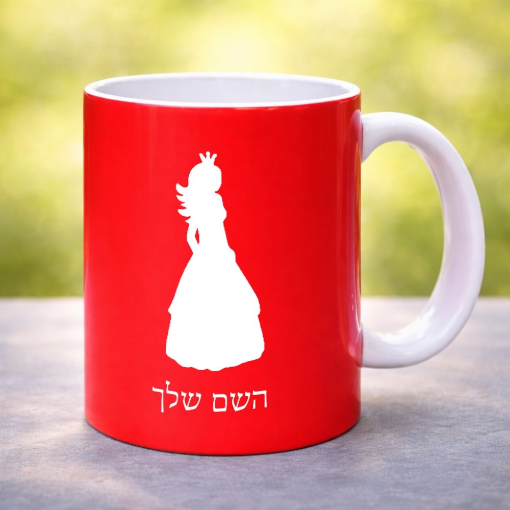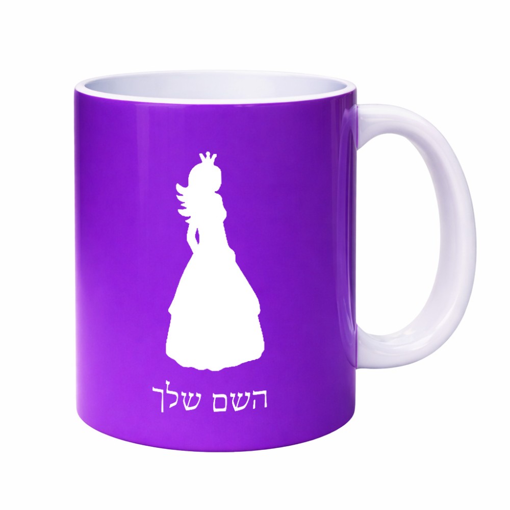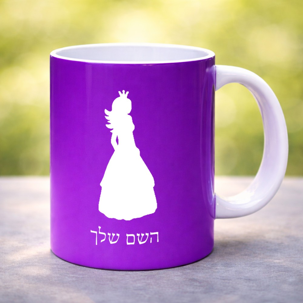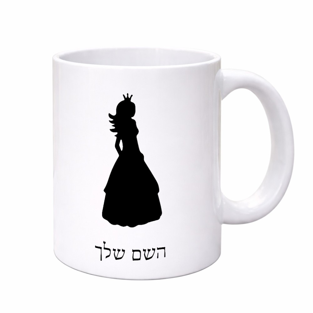 ספל תה \ קפה בעיצוב אישי עם השם שלך בעיצוב נסיכה גדול הספל 325 מ"ל, הספל בעלת ידית לאחיזה יציבה. את השם המבוקש ניתן לציין בהזמנה, אם לא צויין אנחנו ניצור קשר לבירור.