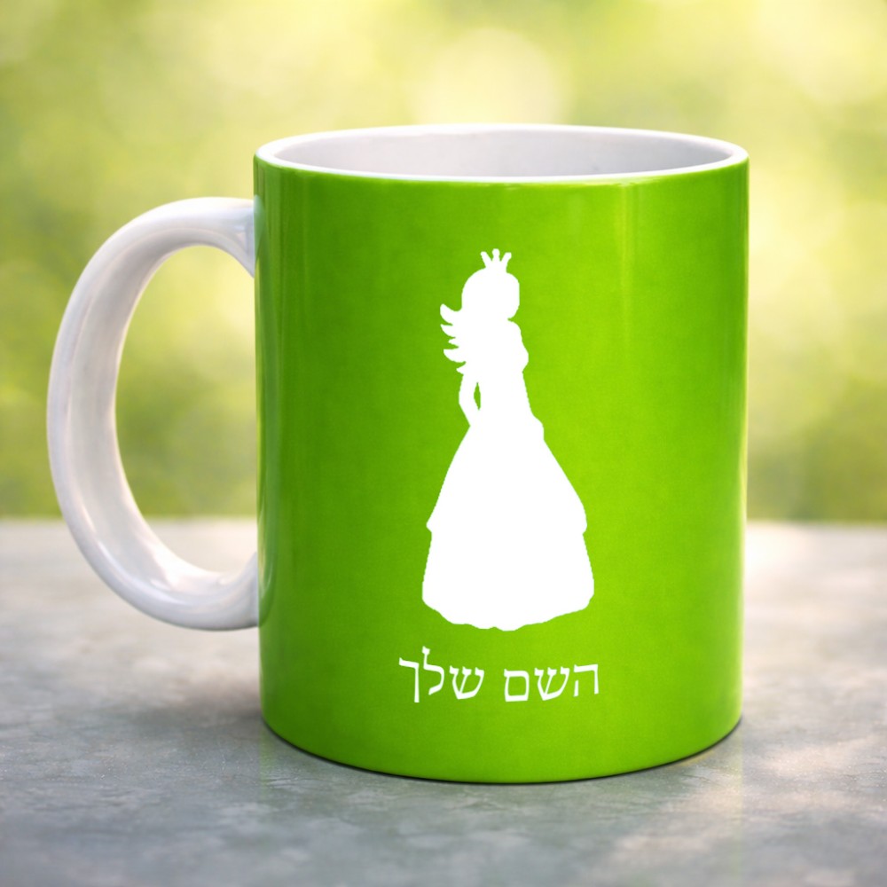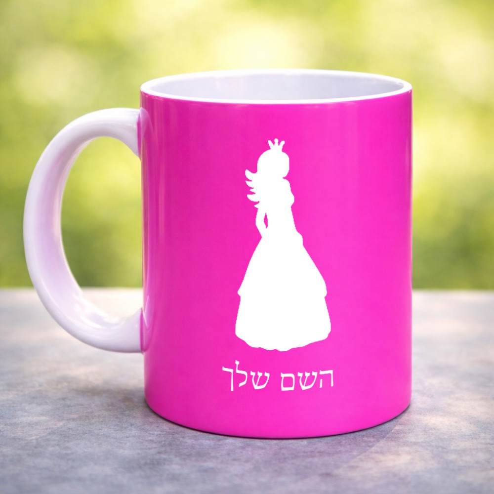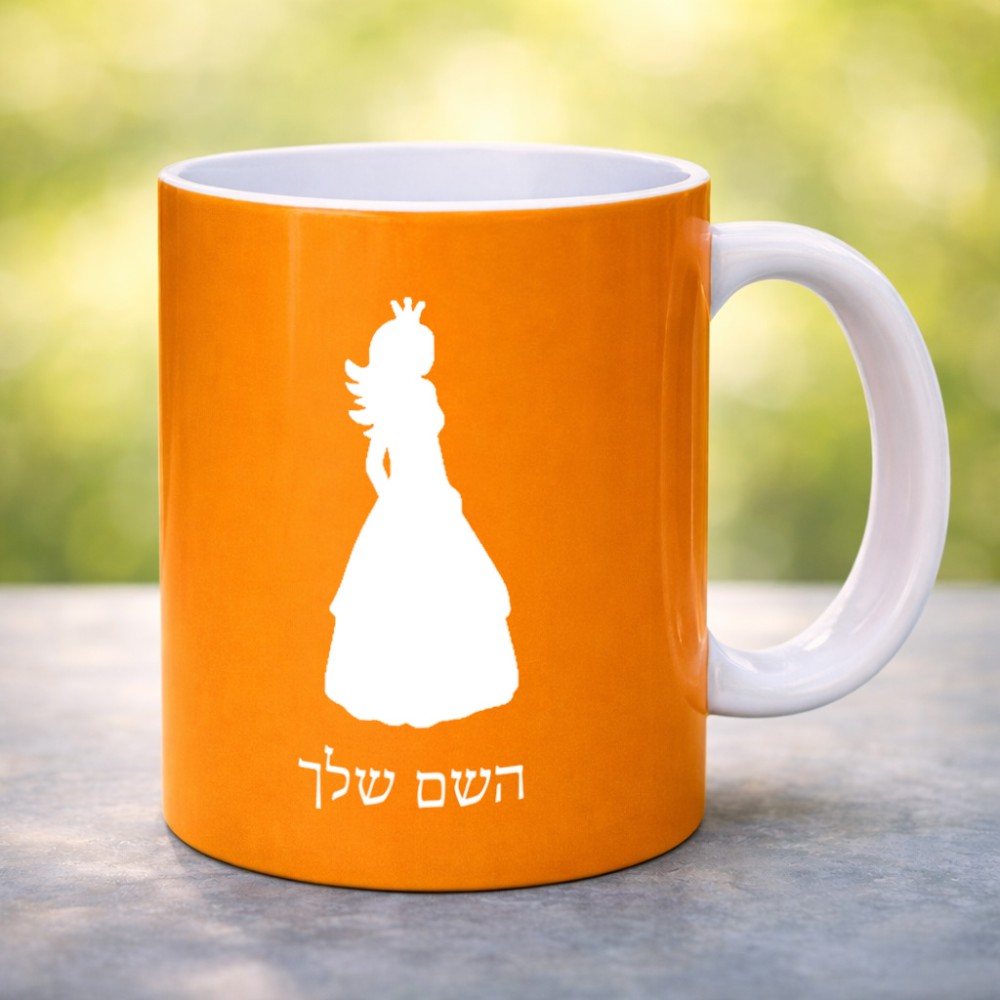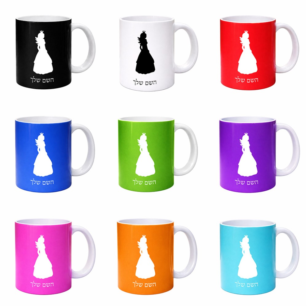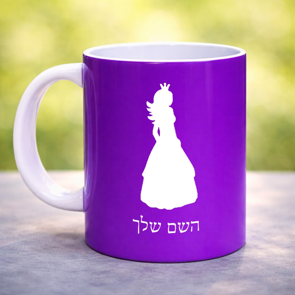 ספל תה \ קפה בעיצוב אישי עם השם שלך בעיצוב נסיכה גדול הספל 325 מ"ל, הספל בעלת ידית לאחיזה יציבה. את השם המבוקש ניתן לציין בהזמנה, אם לא צויין אנחנו ניצור קשר לבירור.
