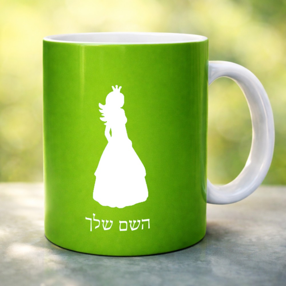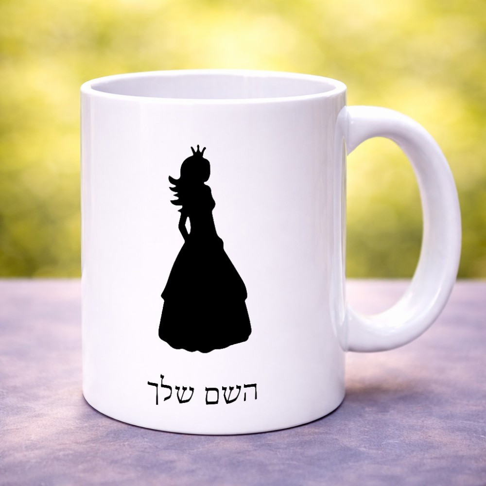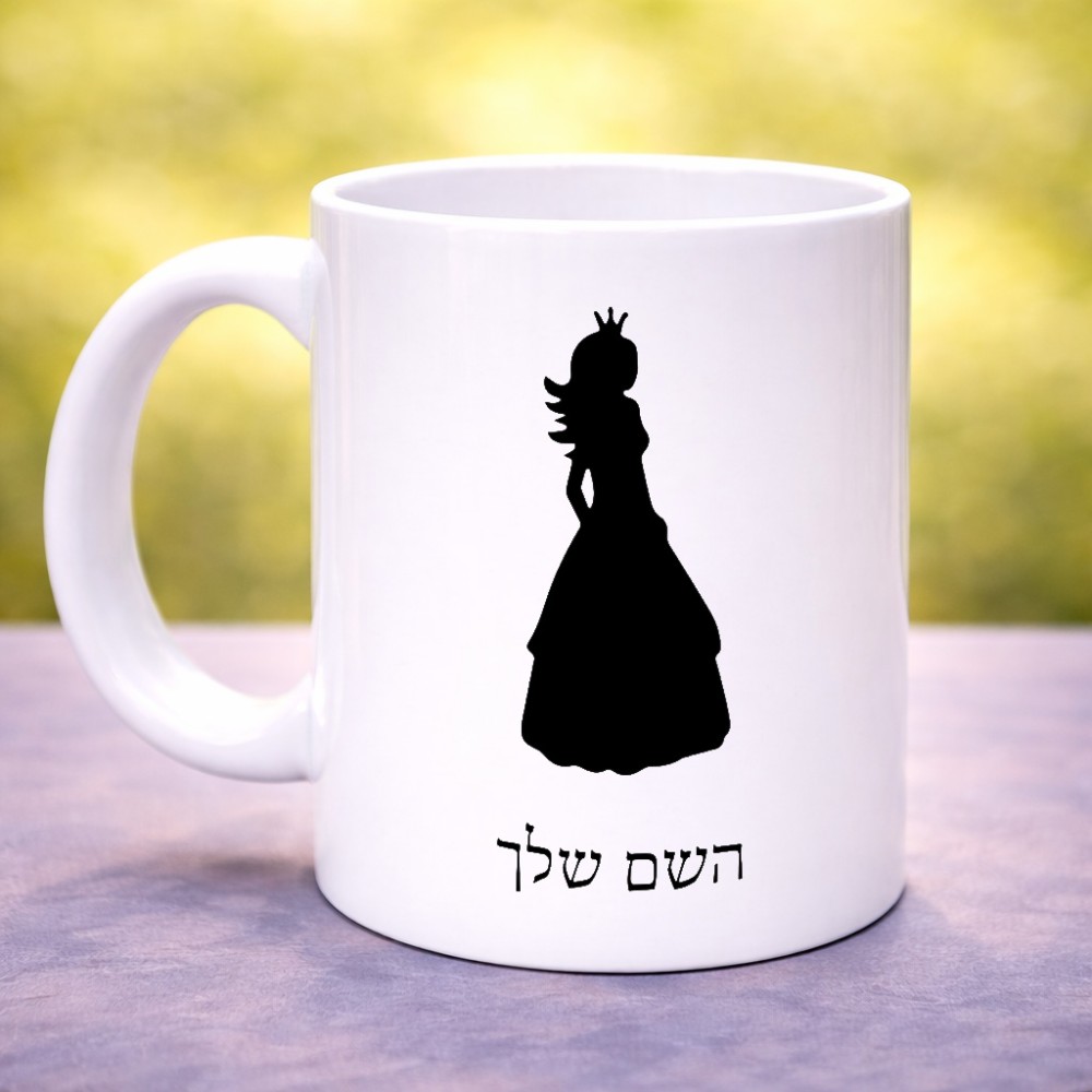 ספל תה \ קפה בעיצוב אישי עם השם שלך בעיצוב נסיכה גודל הספל 325 מ"ל