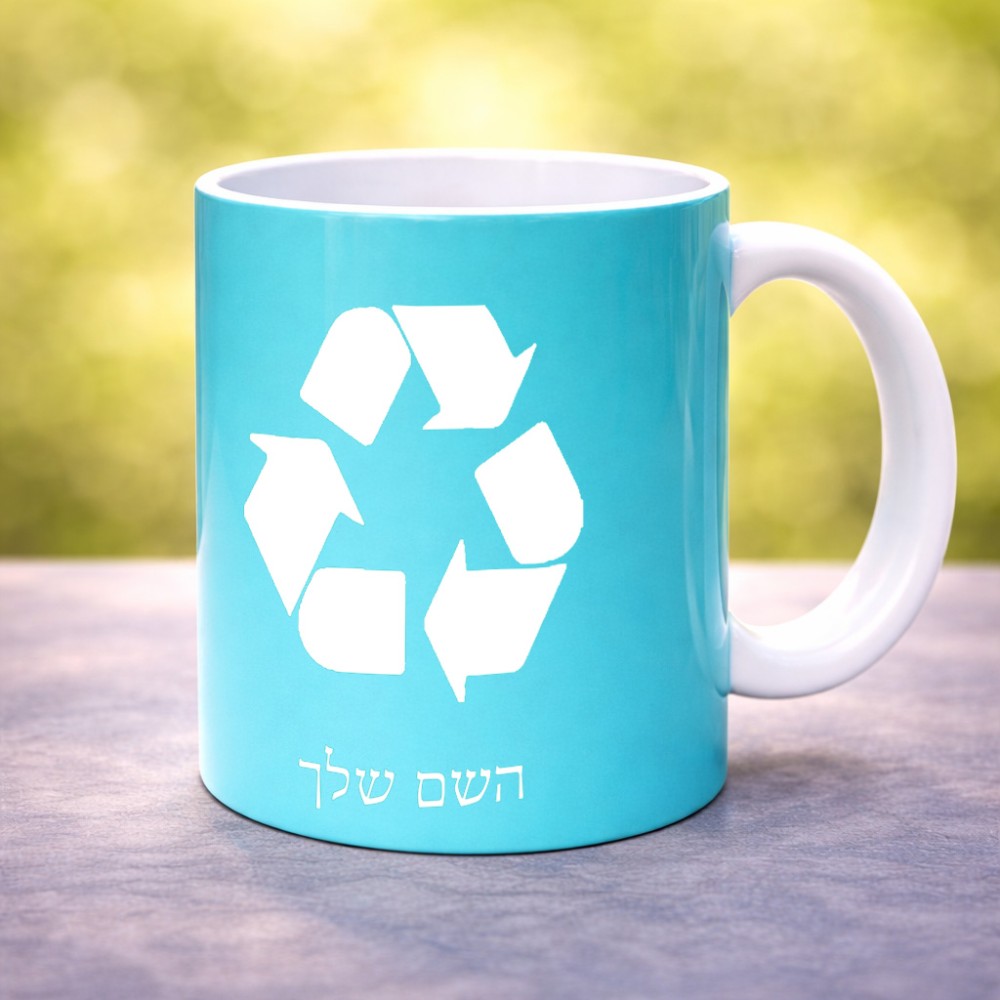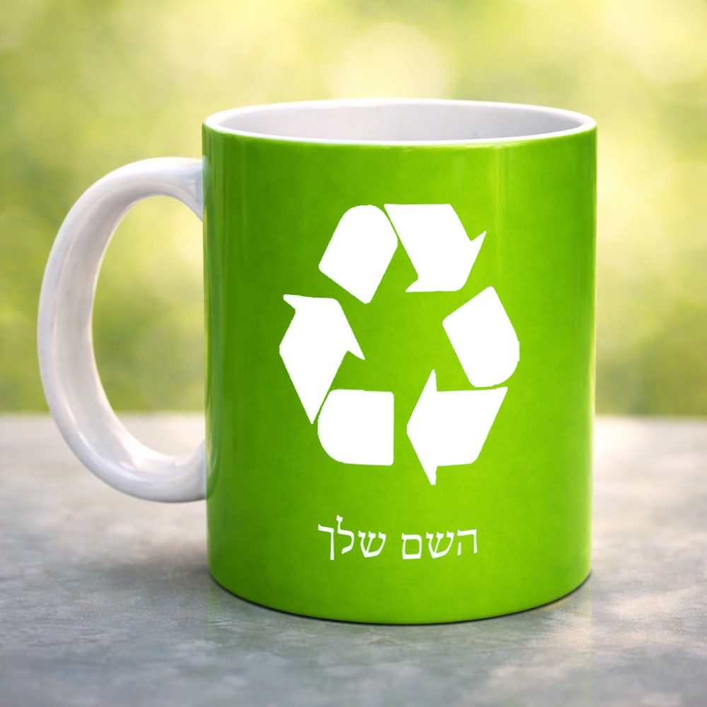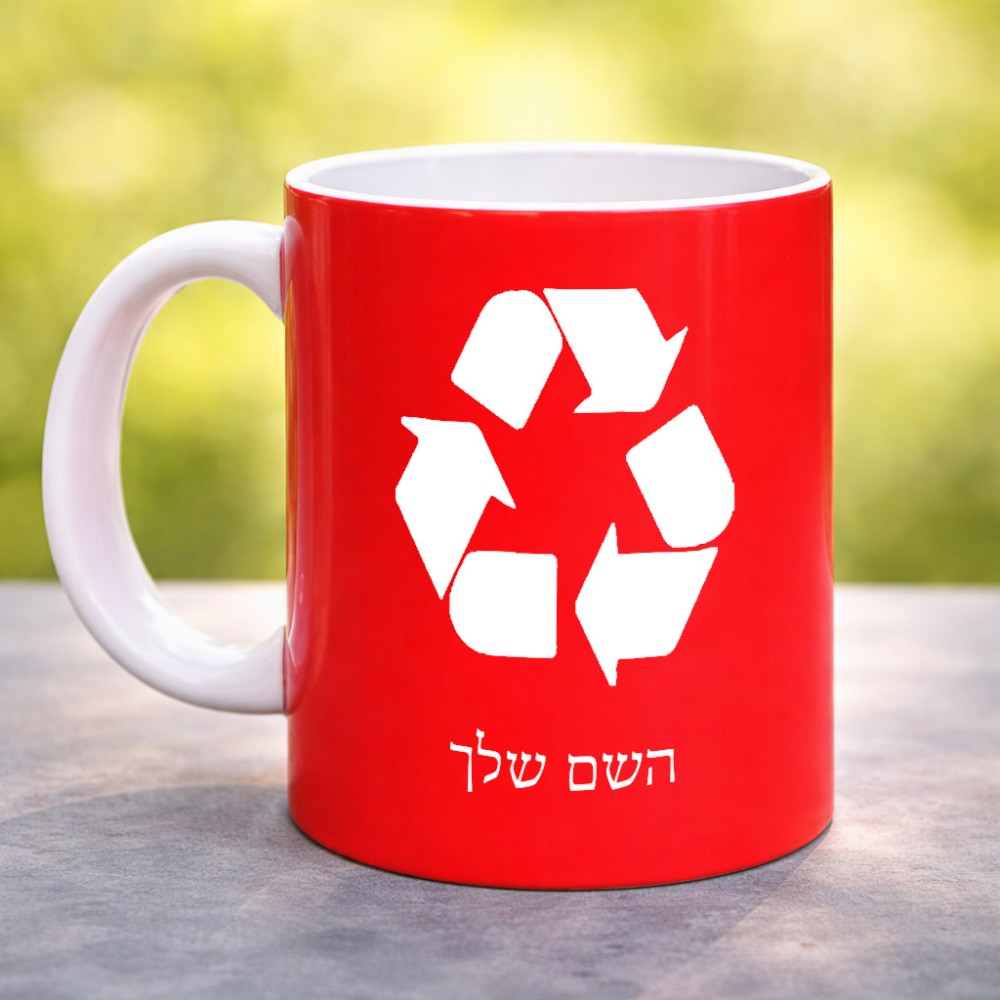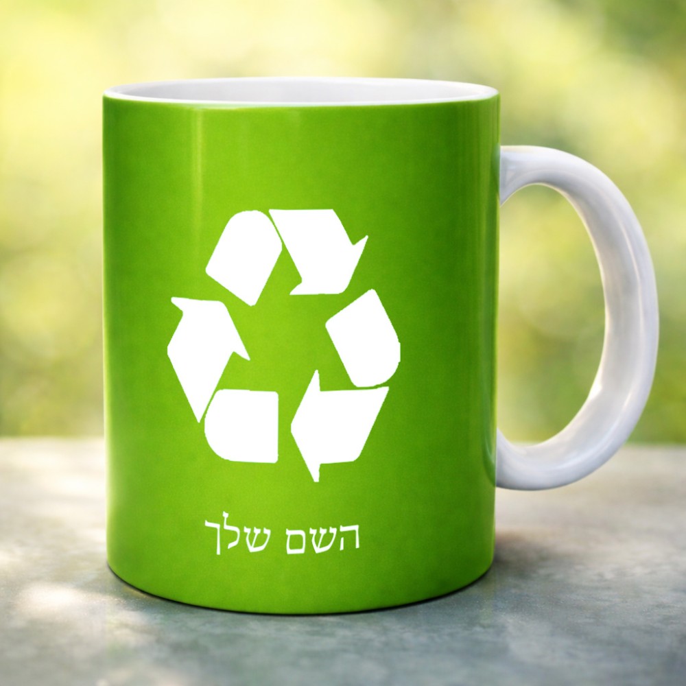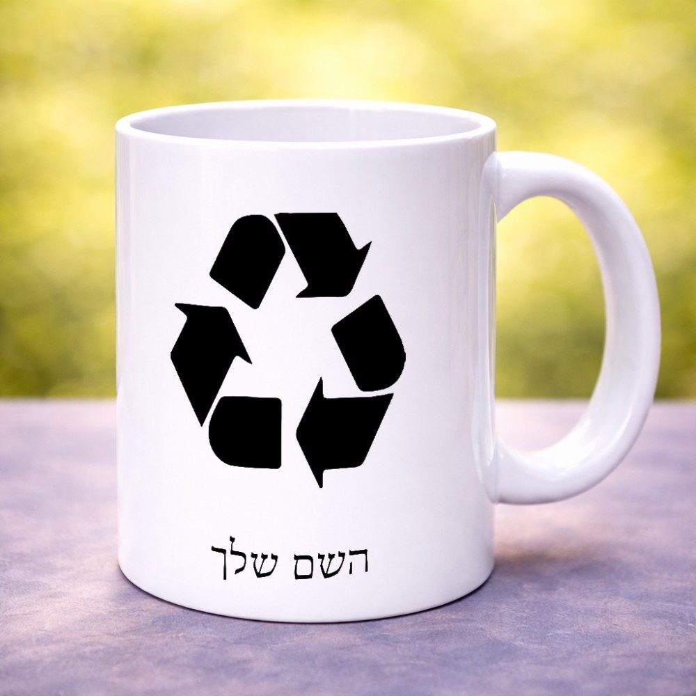 ספל תה \ קפה בעיצוב אישי עם השם שלך בעיצוב למחזר גדול הספל 325 מ"ל, הספל בעלת ידית לאחיזה יציבה. את השם המבוקש ניתן לציין בהזמנה, אם לא צויין אנחנו ניצור קשר לבירור.