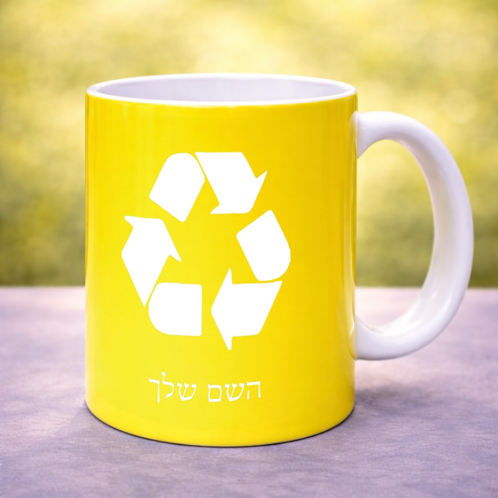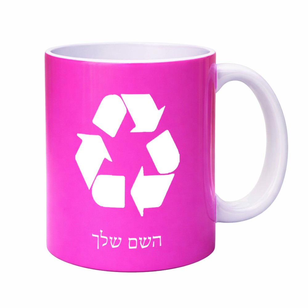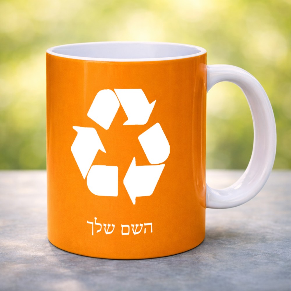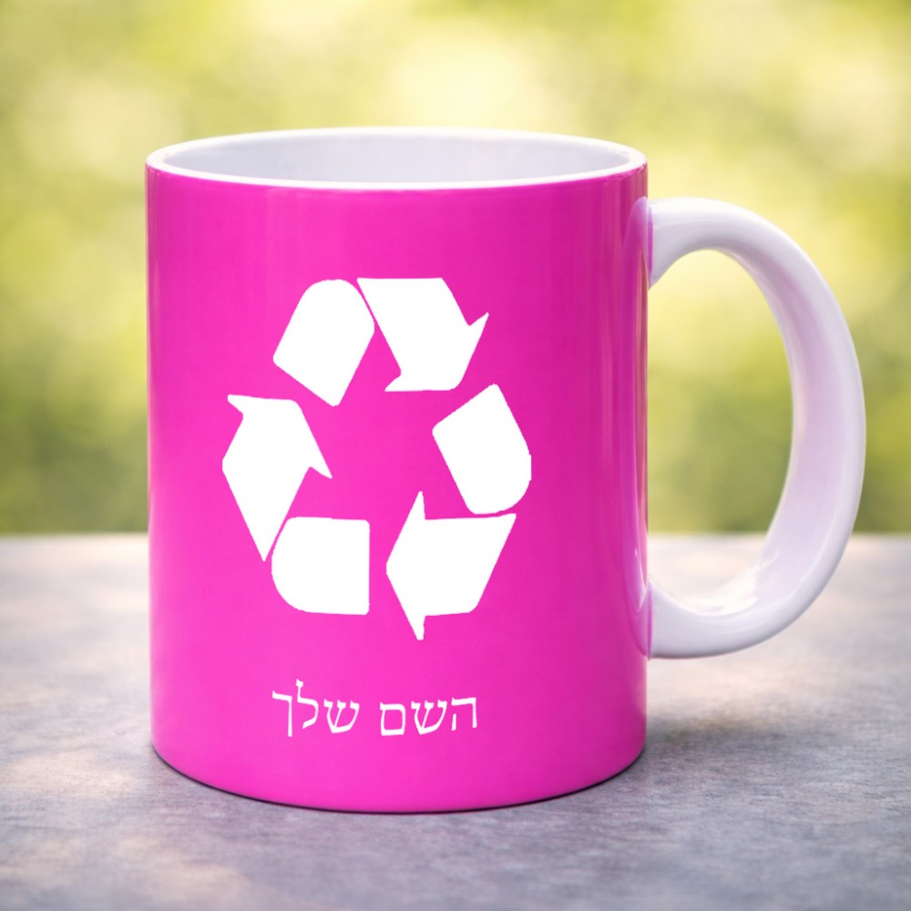 ספל תה \ קפה בעיצוב אישי עם השם שלך בעיצוב למחזר גדול הספל 325 מ"ל, הספל בעלת ידית לאחיזה יציבה. את השם המבוקש ניתן לציין בהזמנה, אם לא צויין אנחנו ניצור קשר לבירור.