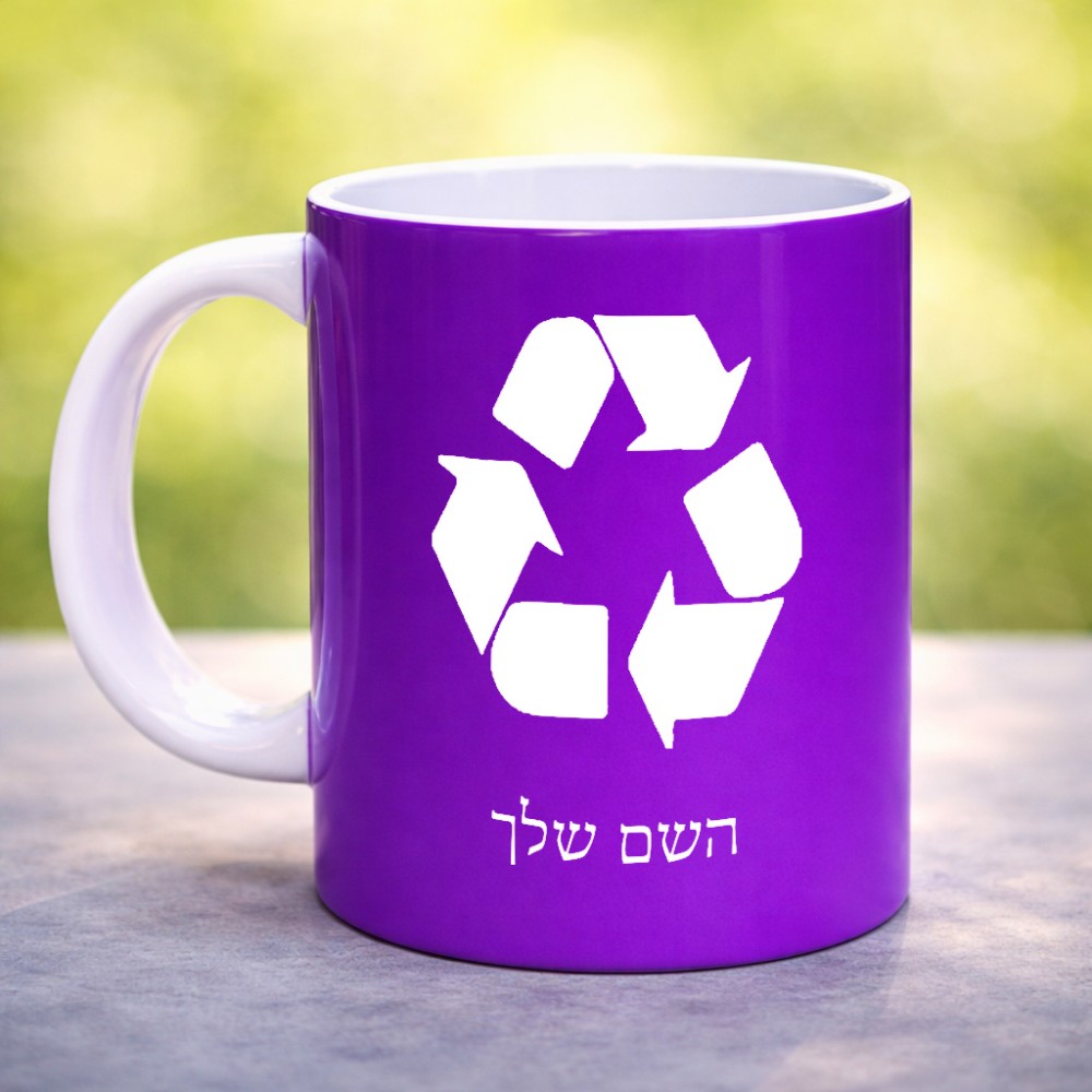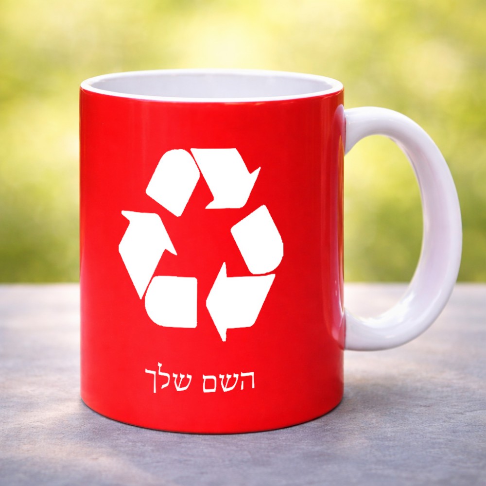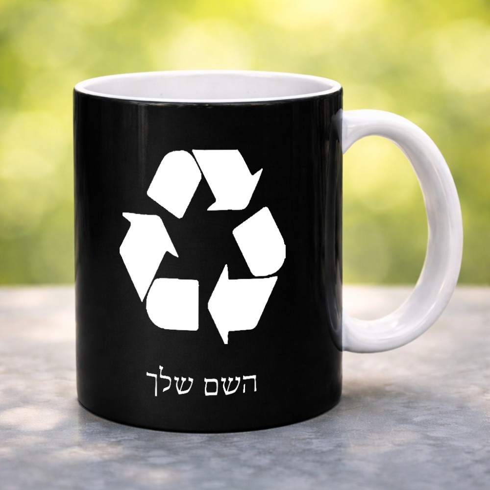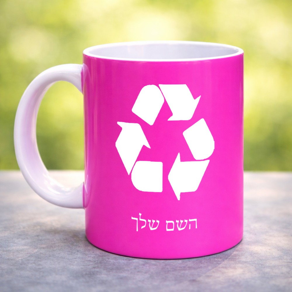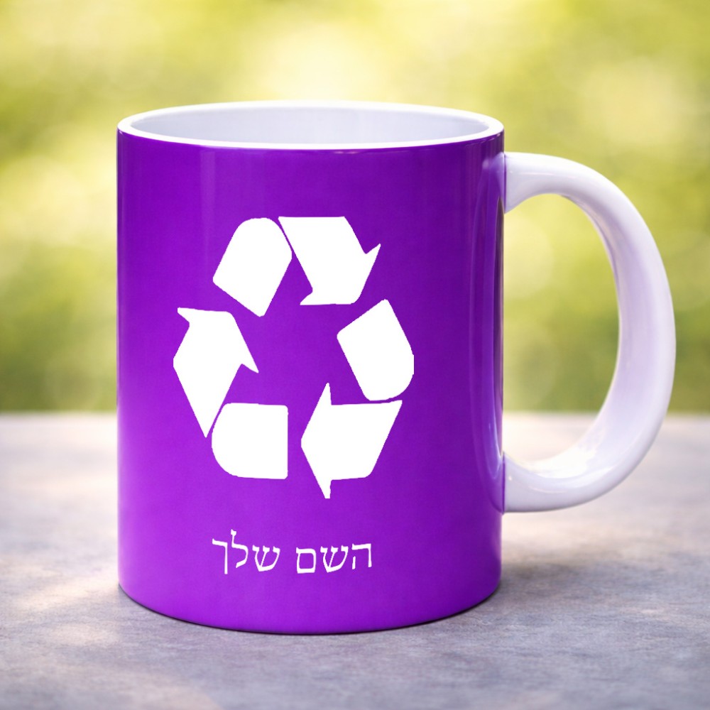 ספל תה \ קפה בעיצוב אישי עם השם שלך בעיצוב למחזר גדול הספל 325 מ"ל, הספל בעלת ידית לאחיזה יציבה. את השם המבוקש ניתן לציין בהזמנה, אם לא צויין אנחנו ניצור קשר לבירור.