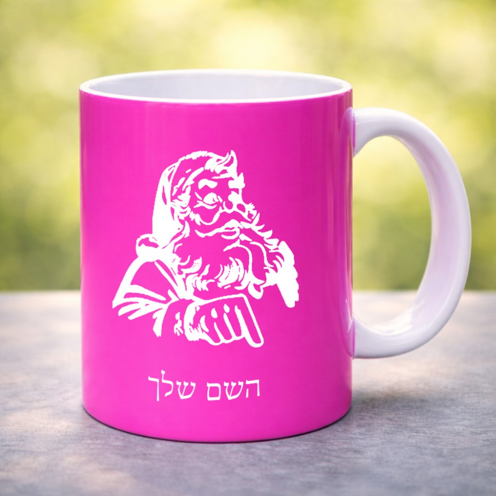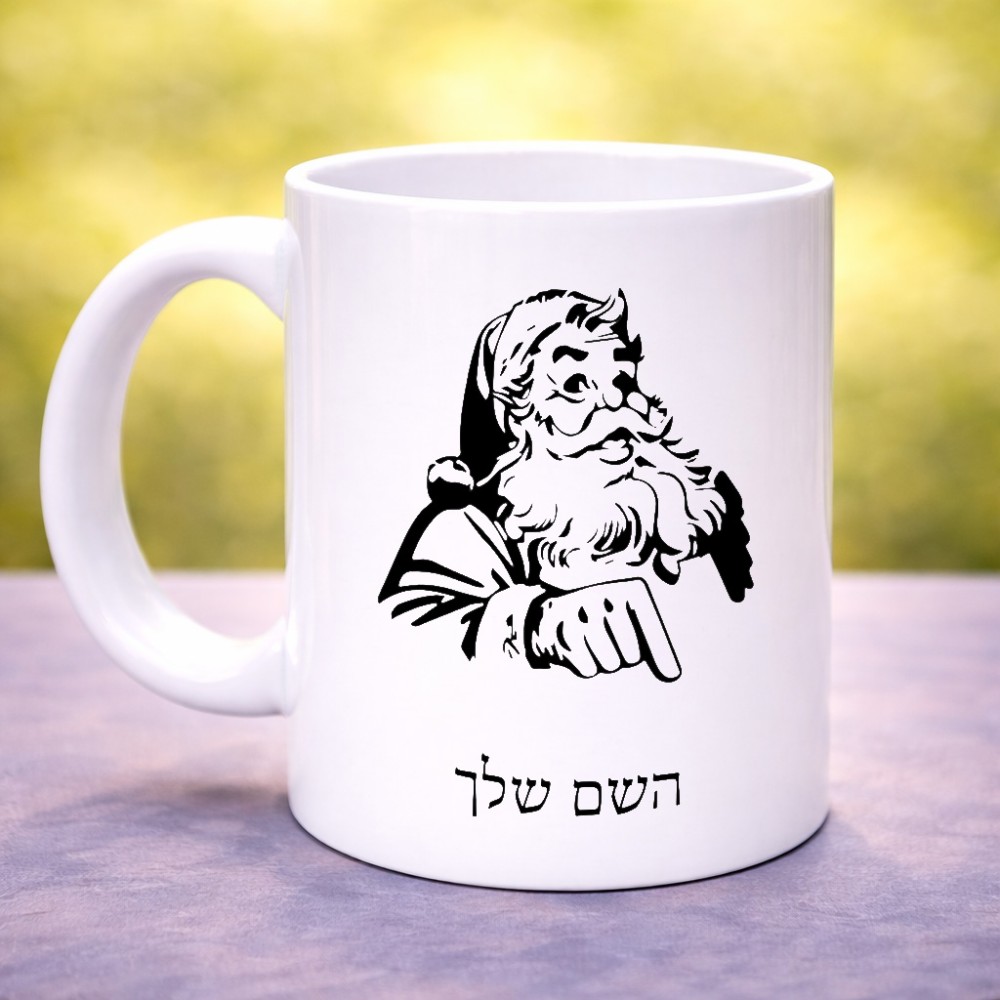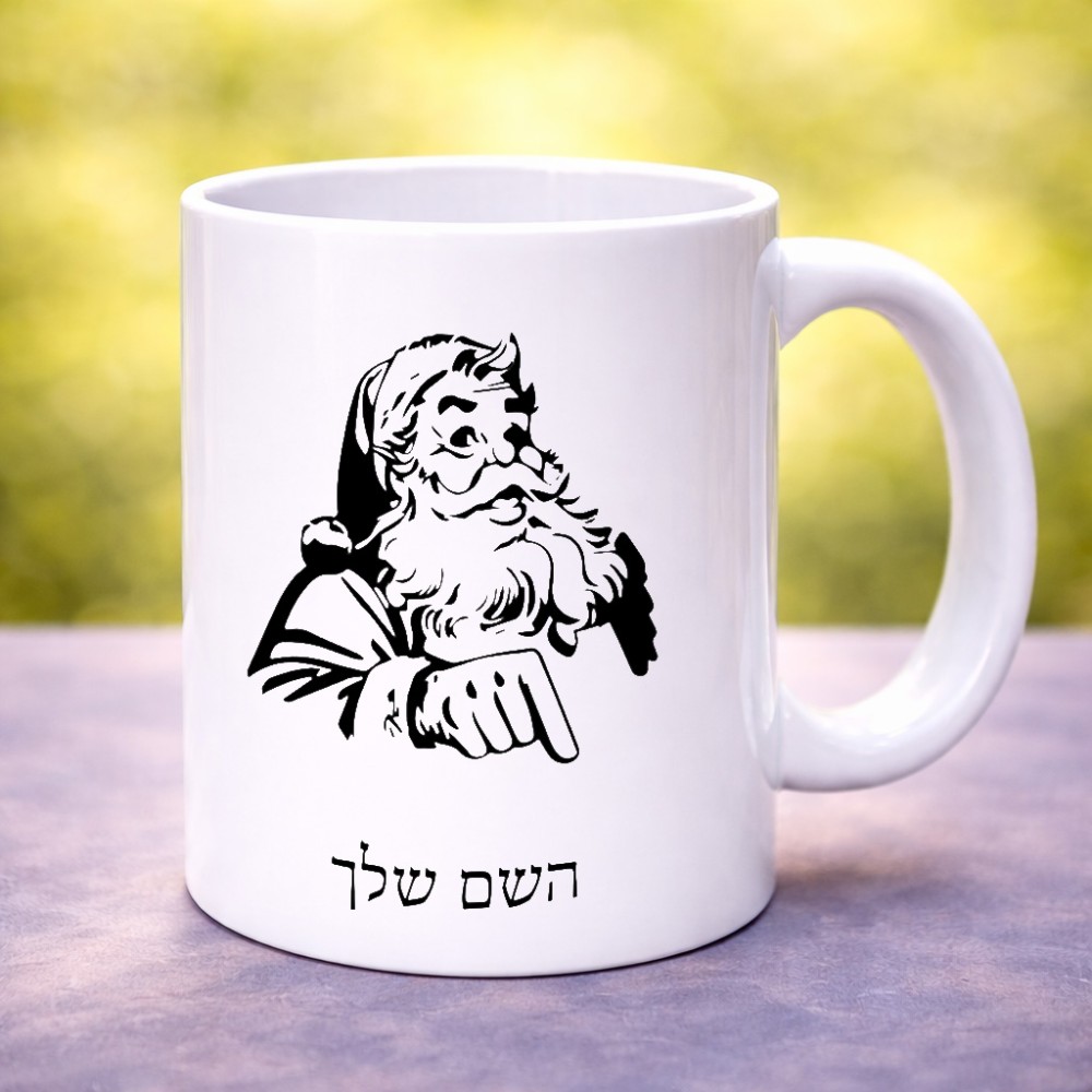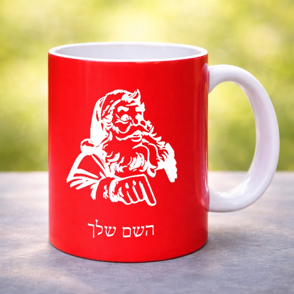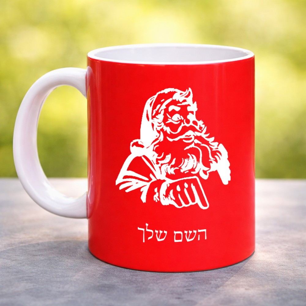 ספל תה \ קפה בעיצוב אישי עם השם שלך בעיצוב סנטה קלאוס גדול הספל 325 מ"ל, הספל בעלת ידית לאחיזה יציבה. את השם המבוקש ניתן לציין בהזמנה, אם לא צויין אנחנו ניצור קשר לבירור.