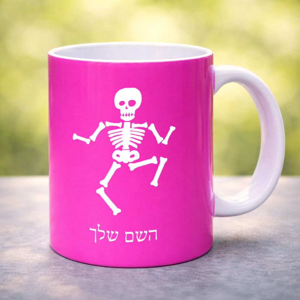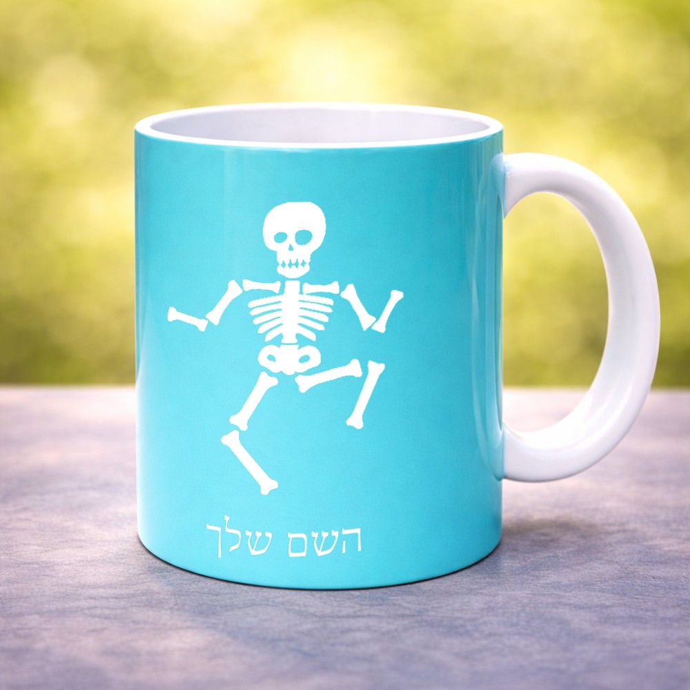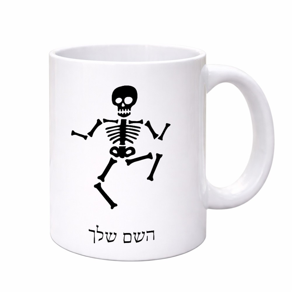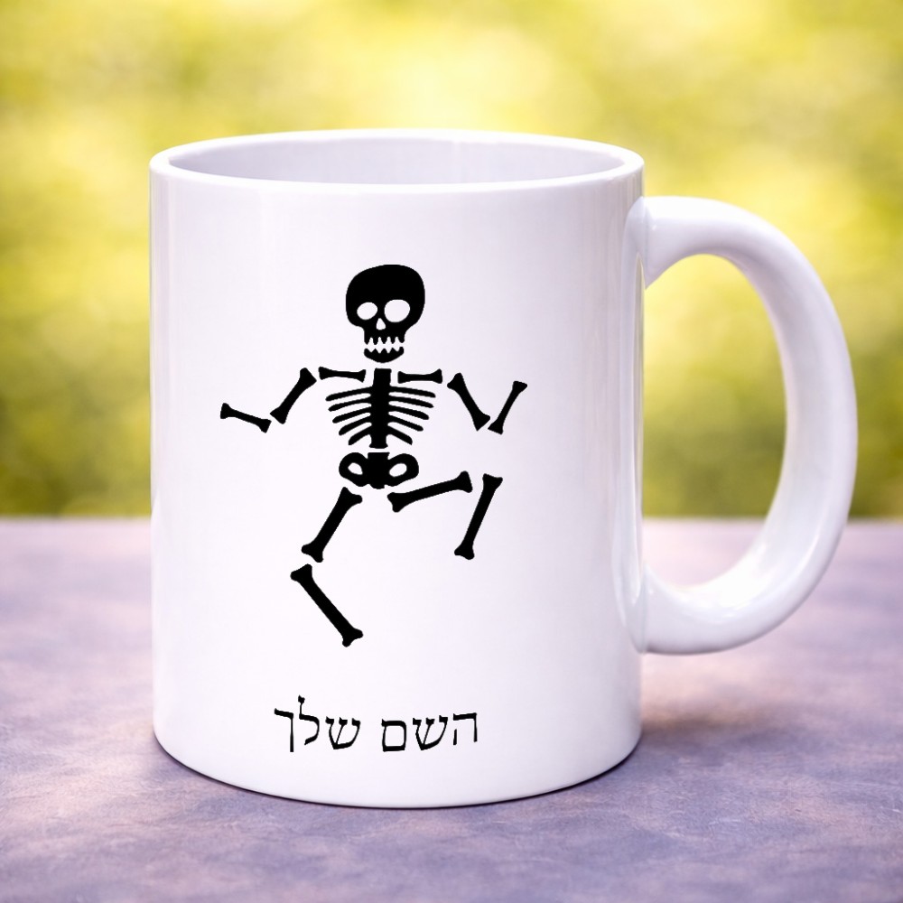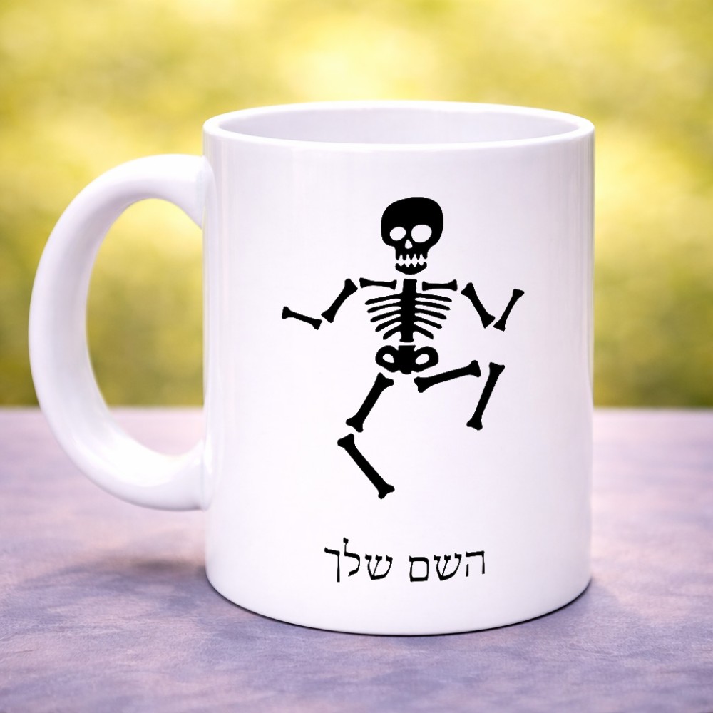 ספל תה \ קפה בעיצוב אישי עם השם שלך בעיצוב סקלטון גדול הספל 325 מ"ל, הספל בעלת ידית לאחיזה יציבה. את השם המבוקש ניתן לציין בהזמנה, אם לא צויין אנחנו ניצור קשר לבירור.