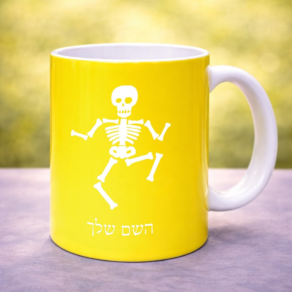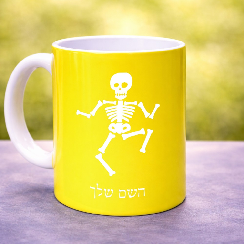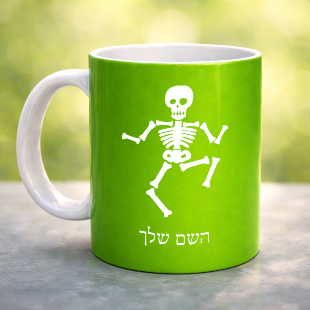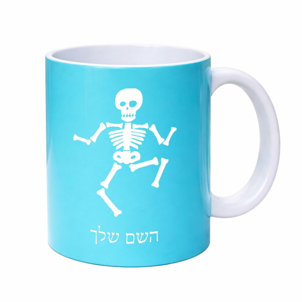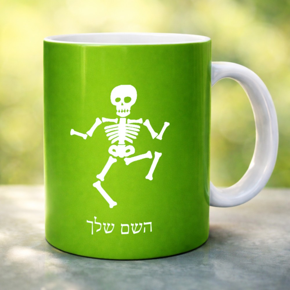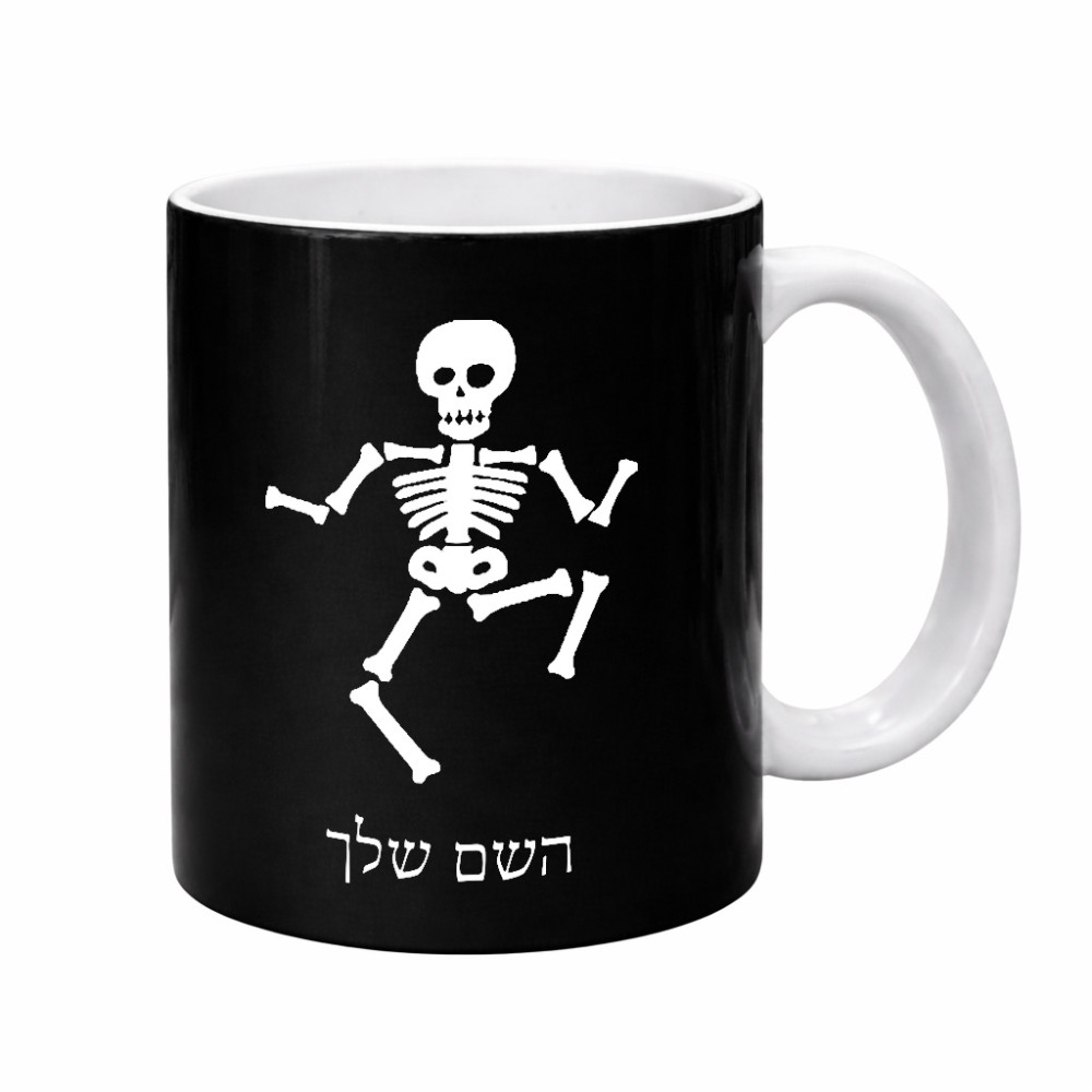 ספל תה \ קפה בעיצוב אישי עם השם שלך בעיצוב סקלטון גדול הספל 325 מ"ל, הספל בעלת ידית לאחיזה יציבה. את השם המבוקש ניתן לציין בהזמנה, אם לא צויין אנחנו ניצור קשר לבירור.