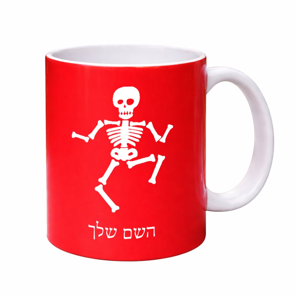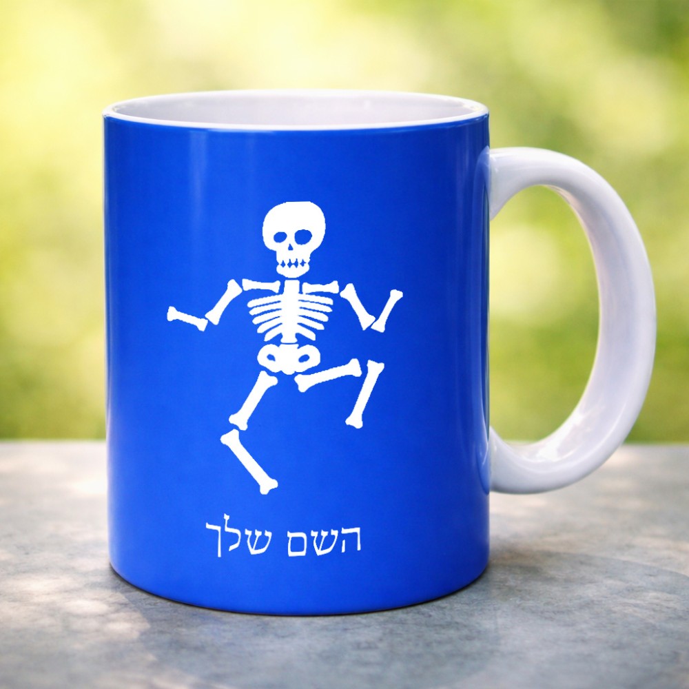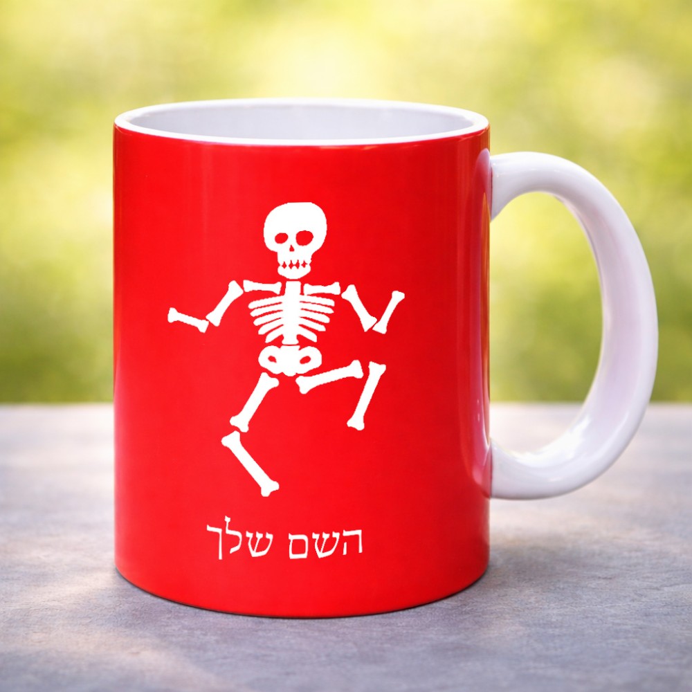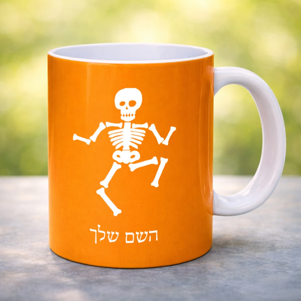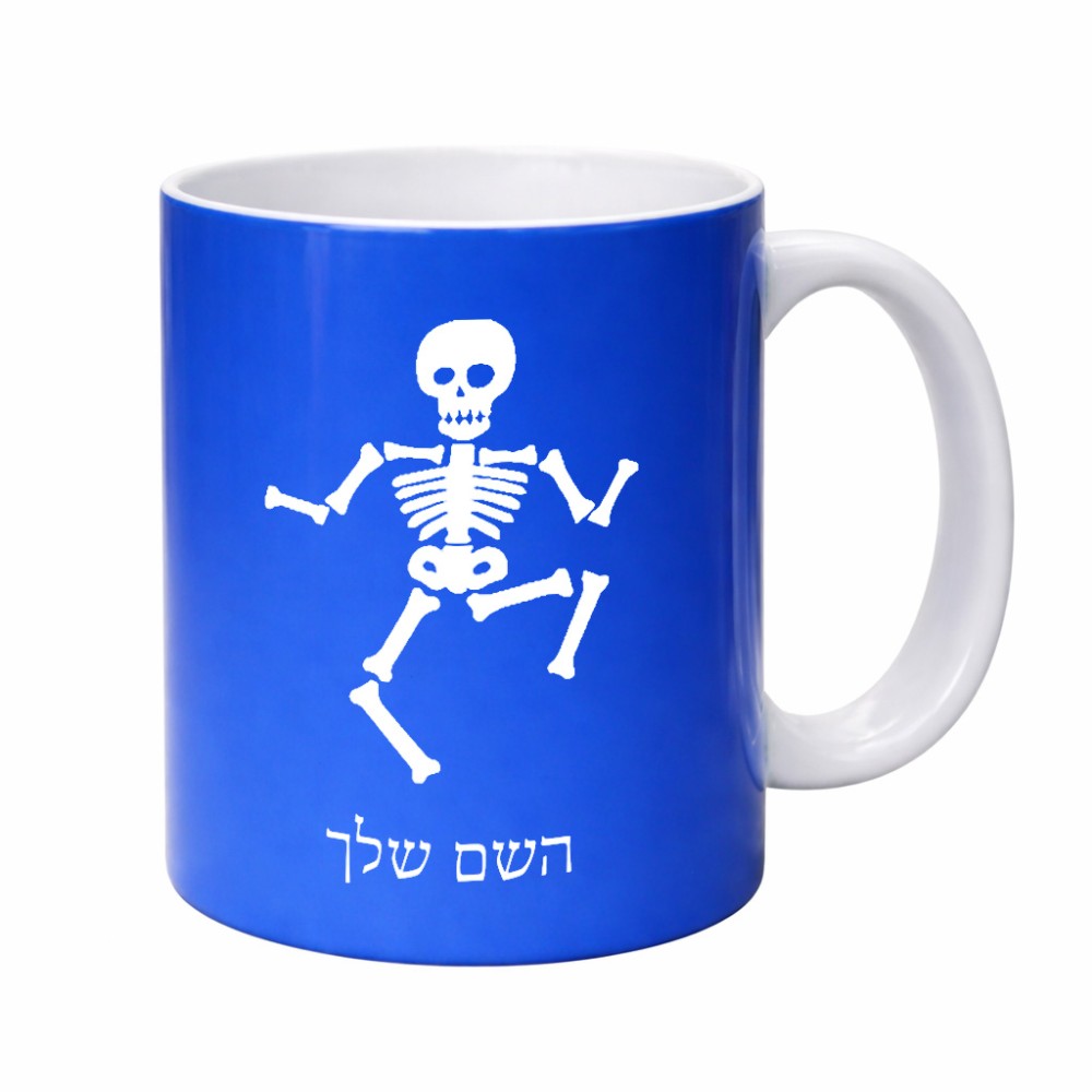 ספל תה \ קפה בעיצוב אישי עם השם שלך בעיצוב סקלטון גדול הספל 325 מ"ל, הספל בעלת ידית לאחיזה יציבה. את השם המבוקש ניתן לציין בהזמנה, אם לא צויין אנחנו ניצור קשר לבירור.