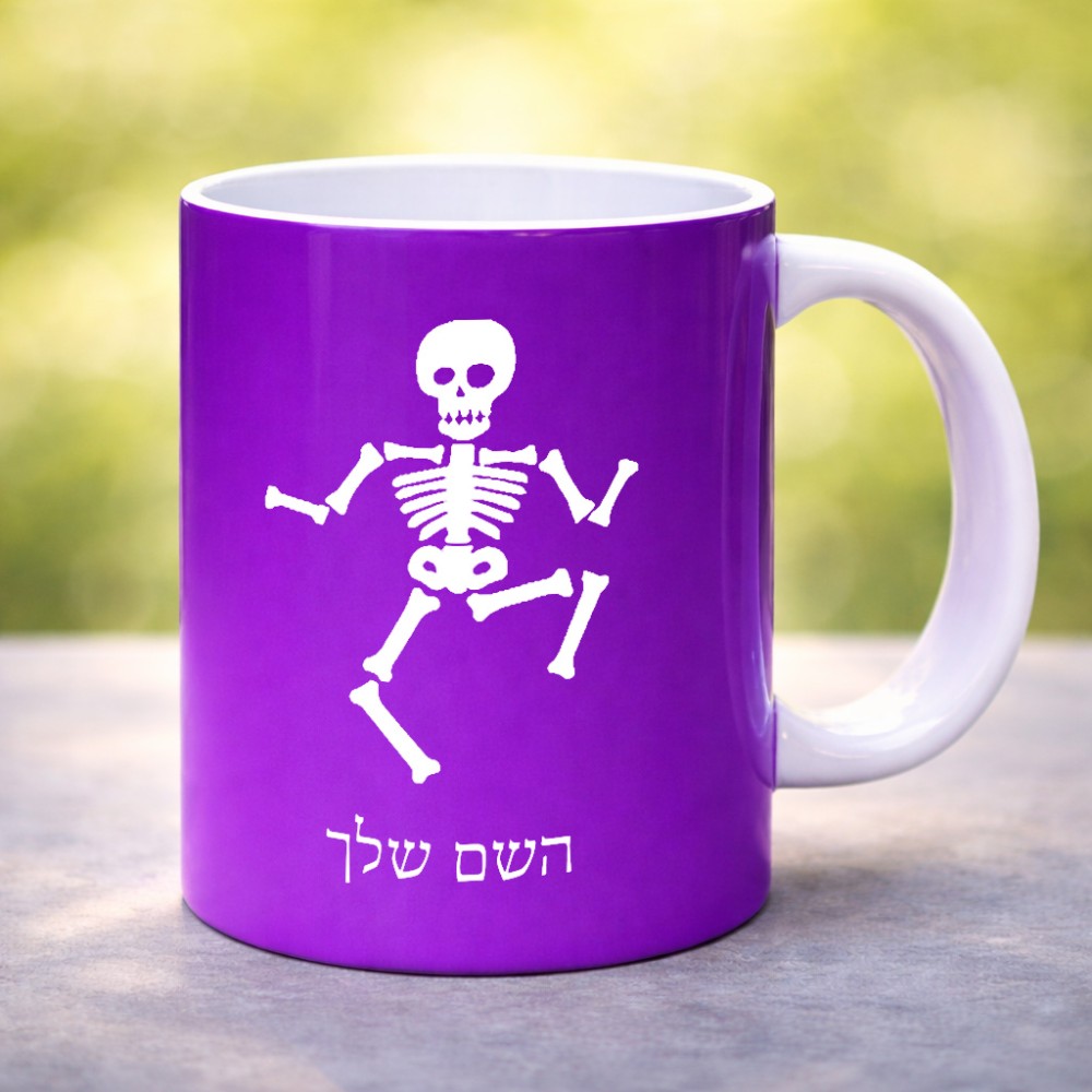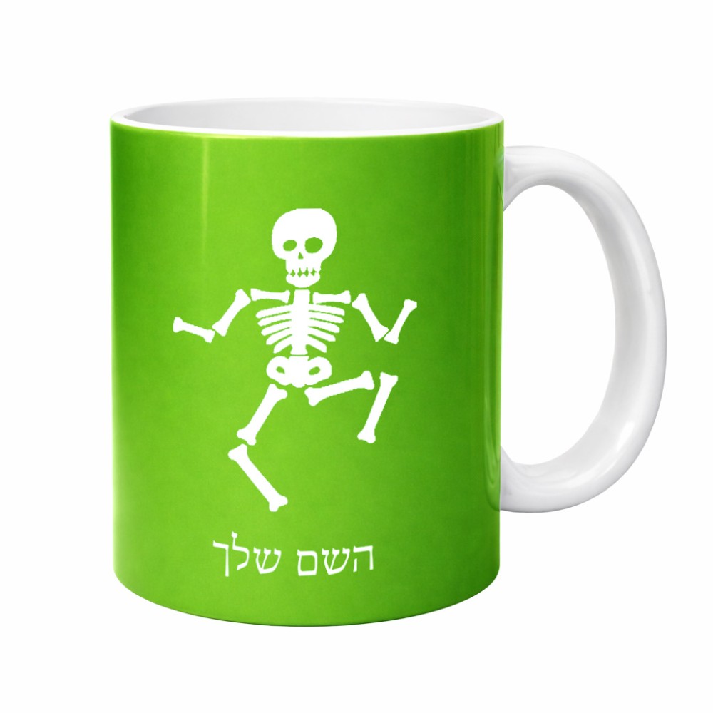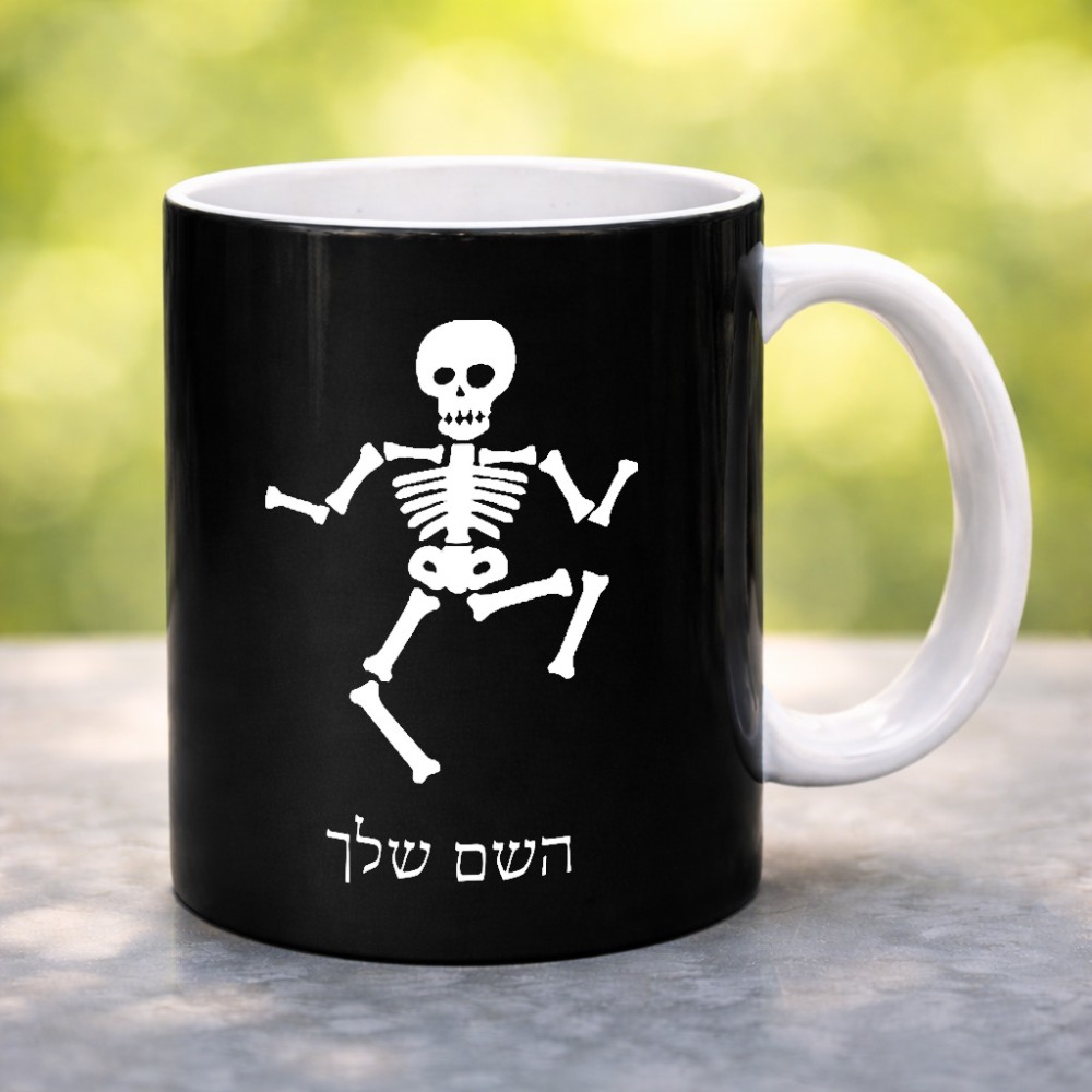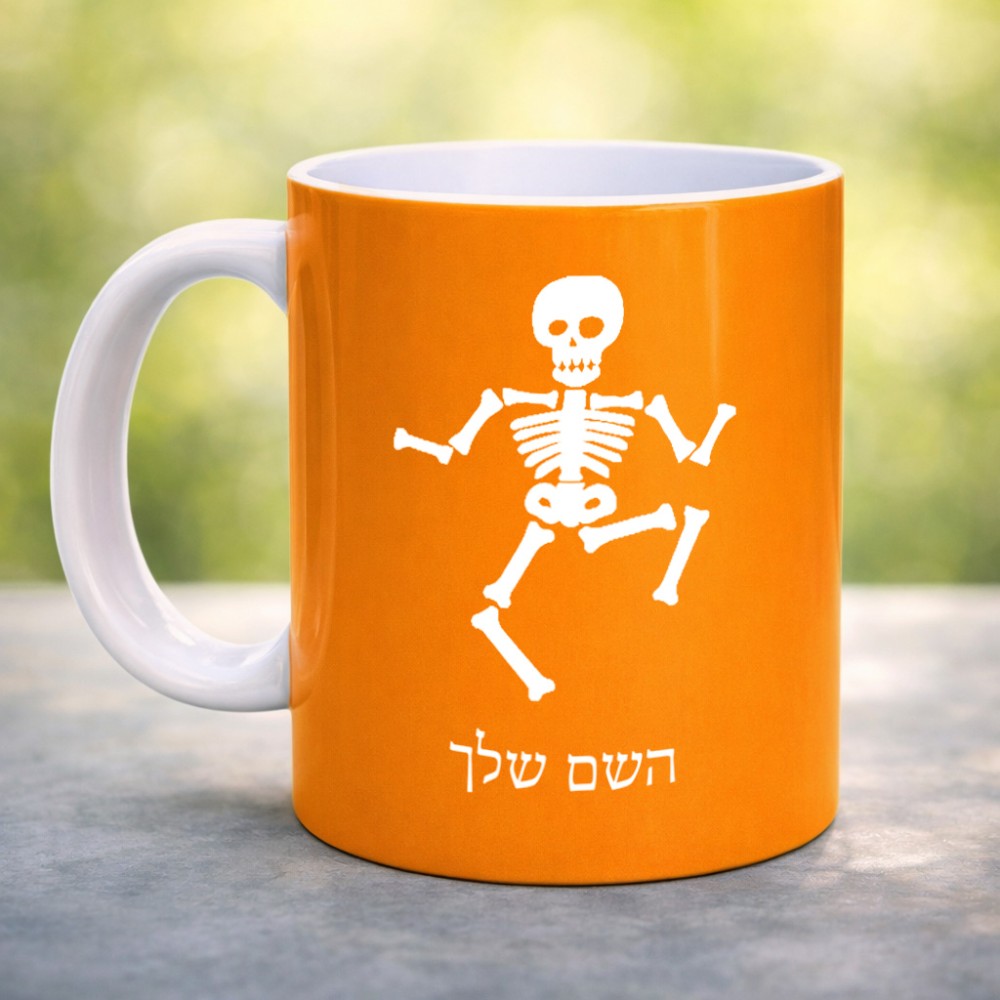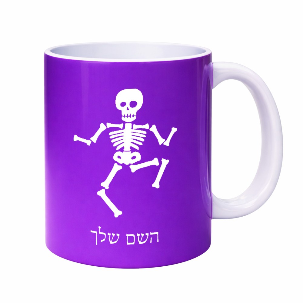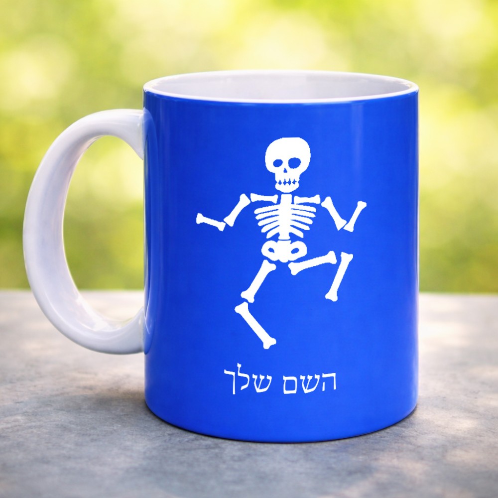 ספל תה \ קפה בעיצוב אישי עם השם שלך בעיצוב סקלטון גדול הספל 325 מ"ל, הספל בעלת ידית לאחיזה יציבה. את השם המבוקש ניתן לציין בהזמנה, אם לא צויין אנחנו ניצור קשר לבירור.