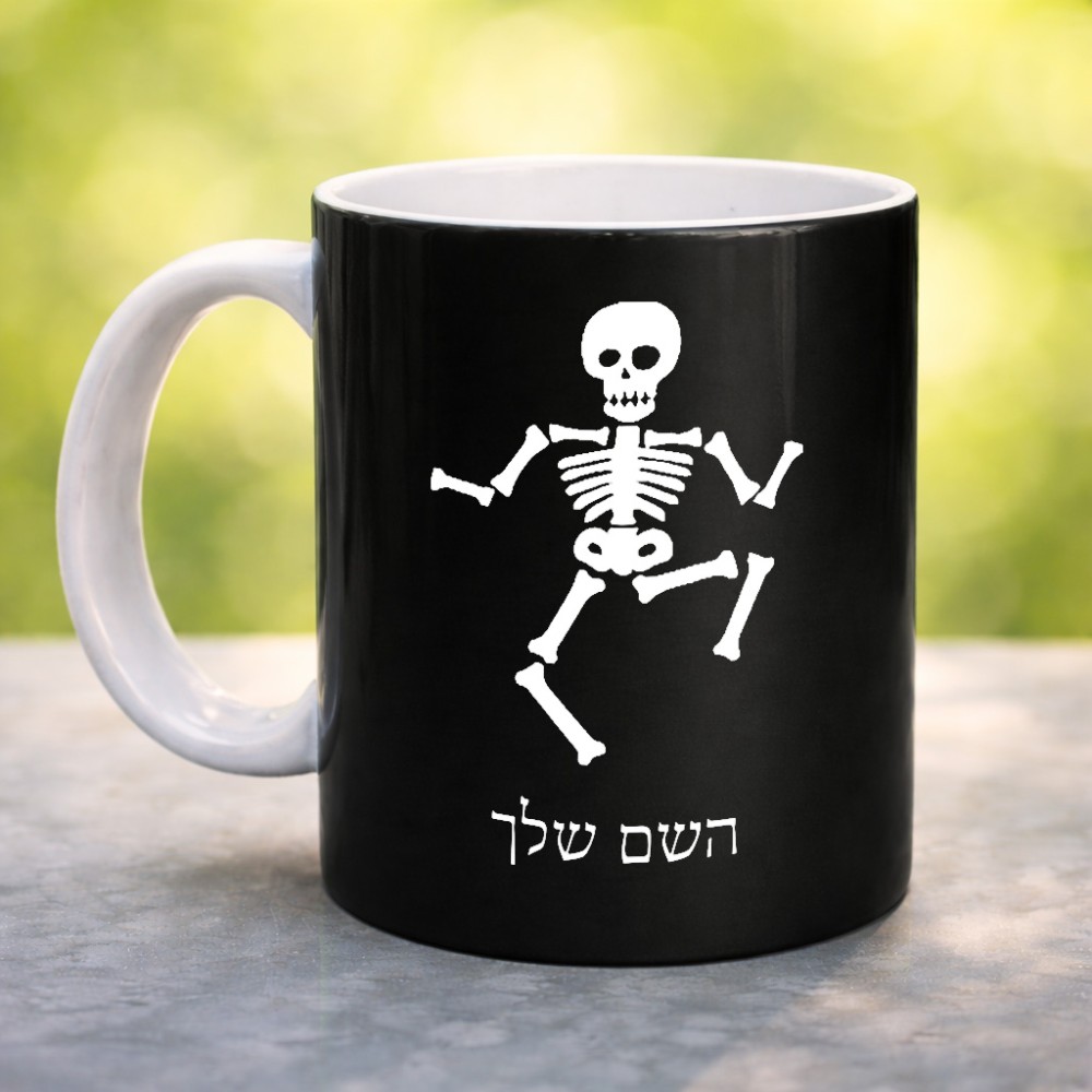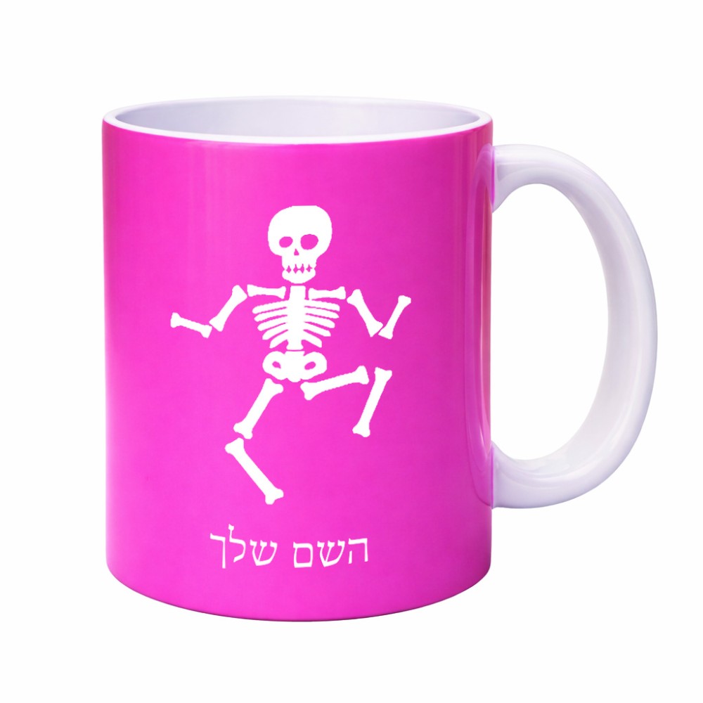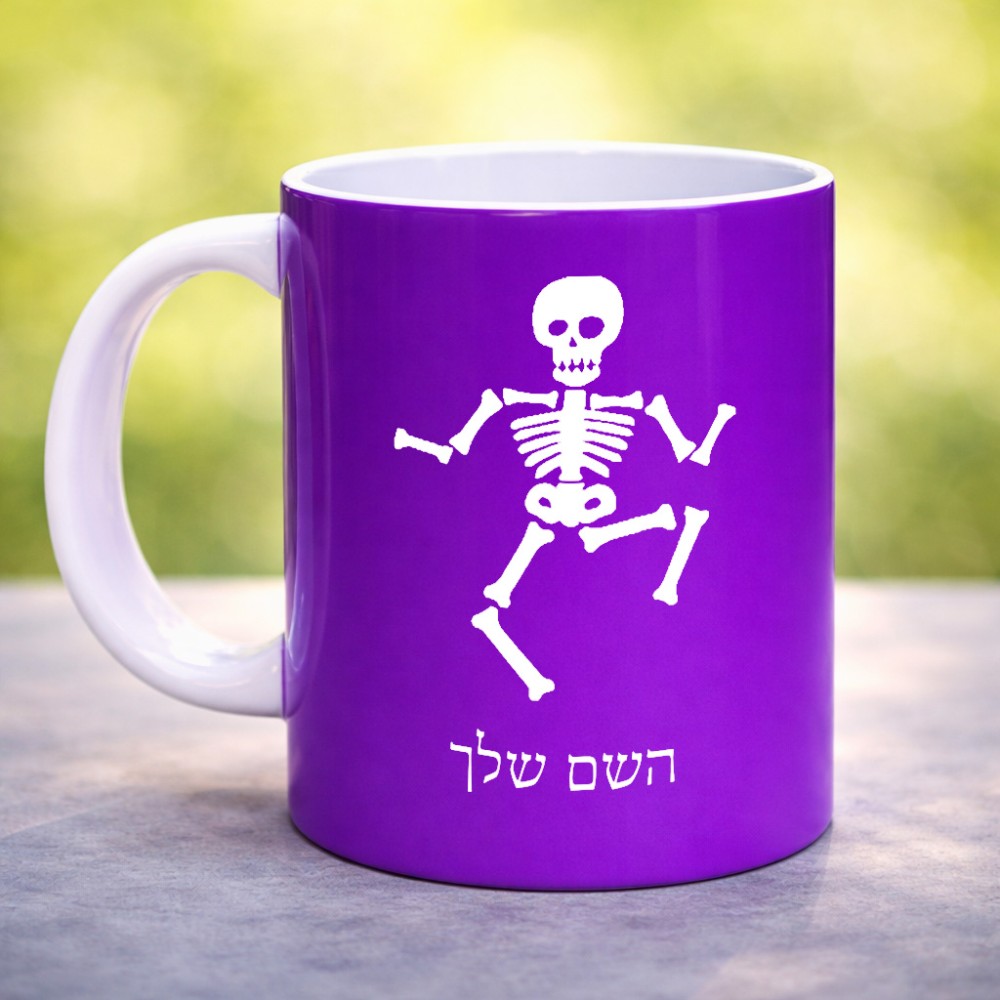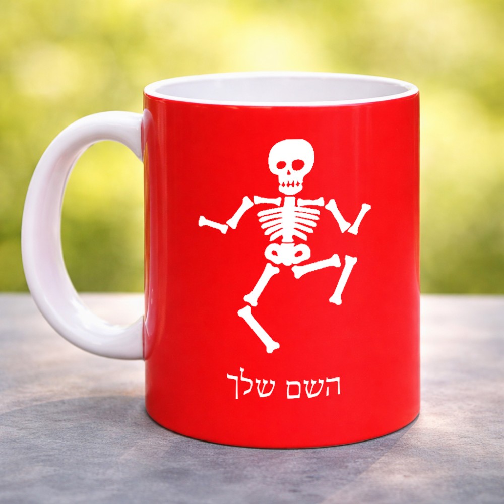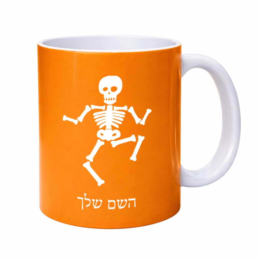 ספל תה \ קפה בעיצוב אישי עם השם שלך בעיצוב סקלטון גדול הספל 325 מ"ל, הספל בעלת ידית לאחיזה יציבה. את השם המבוקש ניתן לציין בהזמנה, אם לא צויין אנחנו ניצור קשר לבירור.